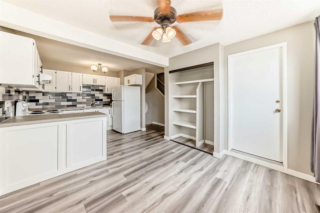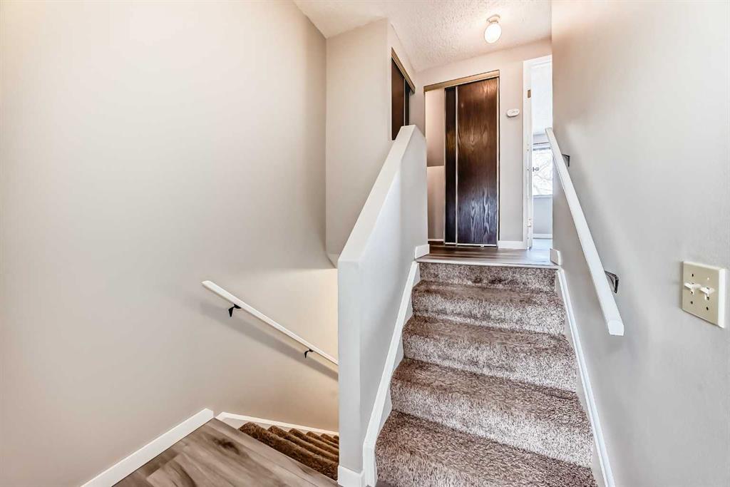 Incredible opportunity to own this lovely updated contemporary 3 bedroom + 1.5 bathroom 5-level split townhome with NO CONDO FEES. Offers a blend of both space and function. Private, fenced back yard and a FANTASTIC LOCATION with a greenbelt, greenspace with playground tucked just in behind. Perfect for a young family. Spacious living room is filled with natural light from the large windows and sliding doors that flow effortlessly onto a large deck that overlooks a fenced backyard — perfect for relaxation or entertaining family & friends. The functional kitchen is both bright and airy features ample cabinet storage and counter space and is open to the dining area with a large pantry and access to a private balcony. A powder room completes this level. On the upper 2 levels you will find a 4-piece bathroom and 3 generously sized bedrooms including a large primary suite, ample storage + a full bathroom. Oversized single attached garage with additional driveway parking. The unfinished basement has the laundry area, lots of storage and WALK UP / OUT access to the back yard. Tranquil location offering easy access to both Dalhousie & Crowfoot LRT Stations, amenities, restaurants, grocery stores, major routes and walking distance to schools. This home checks all the boxes!