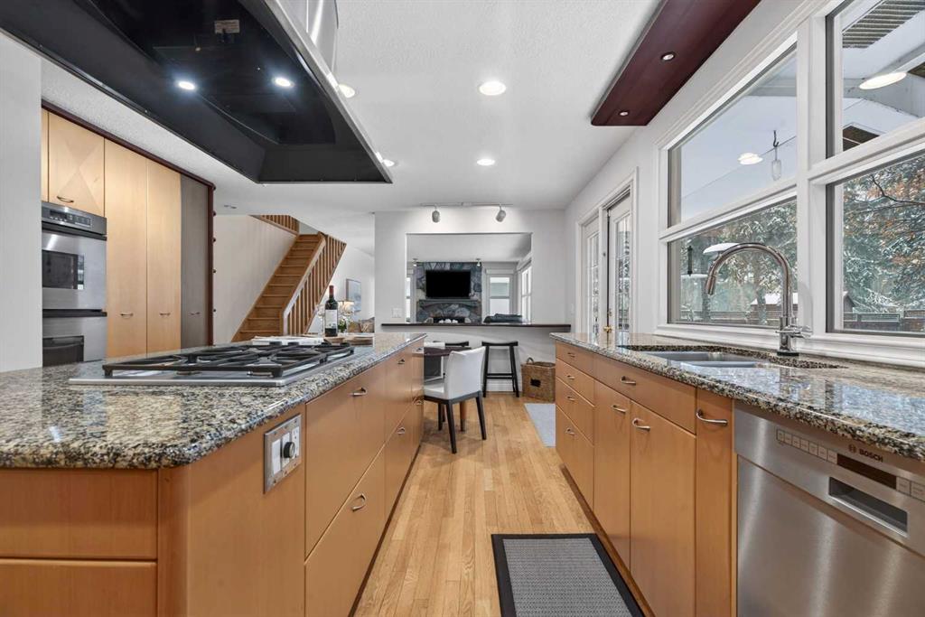 **Open House Saturday Feb 21 and Sunday Feb 22 @ 12:00-3:00** Spacious two storey, set on an 11,000+ square foot pie lot in the highly sought after neighbourhood of Lakeview Village. Thoughtfully expanded and extensively updated, this home reflects timeless updates and clear pride of ownership. Large windows, oak hardwood floors, and two fireplaces anchor the main living areas, while custom built ins provide exceptional storage and functionality. The renovated kitchen features a large island, granite countertops, oversized sink, gas cooktop, double wall ovens, and updated appliances. Adjacent living and dining spaces open to a private wrap around deck with natural gas hookups. The upper level includes four bedrooms, highlighted by a spacious primary suite with sitting area, walk in closet with organizers, private deck, and a full ensuite with double sinks, air tub, steam shower, and skylight. One bedroom is currently configured as a dedicated office with built ins for two workstations. The finished basement adds two additional bedrooms, a media room, games area, and generous storage. Exterior highlights include a double garage plus carport, triple wide driveway, underground sprinklers, mature landscaping, and multiple storage sheds. Located near North Glenmore Park, Earl Grey Golf Course, excellent schools, and offering quick access to downtown and the mountains. A substantial, well maintained family home on a private lot in one of Calgary’s most established and sought after communities.