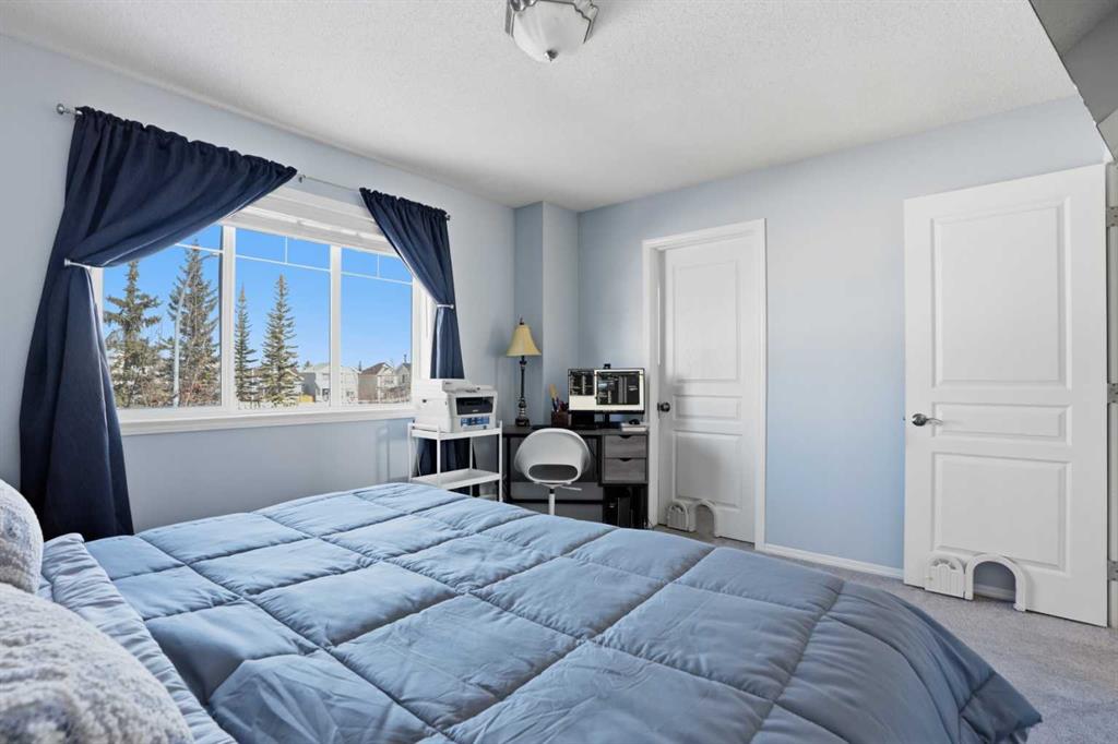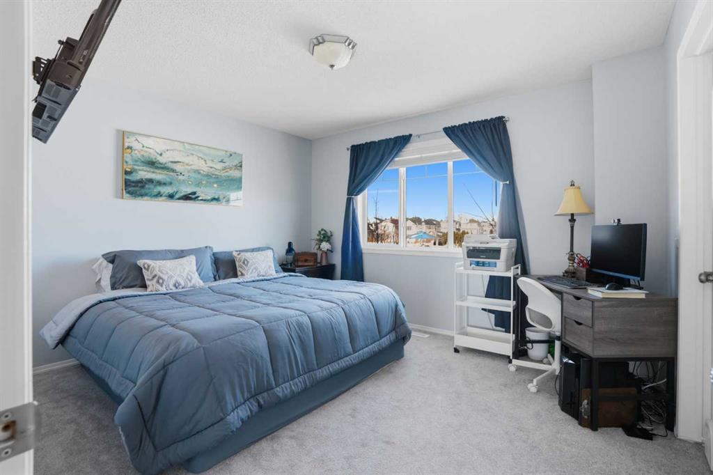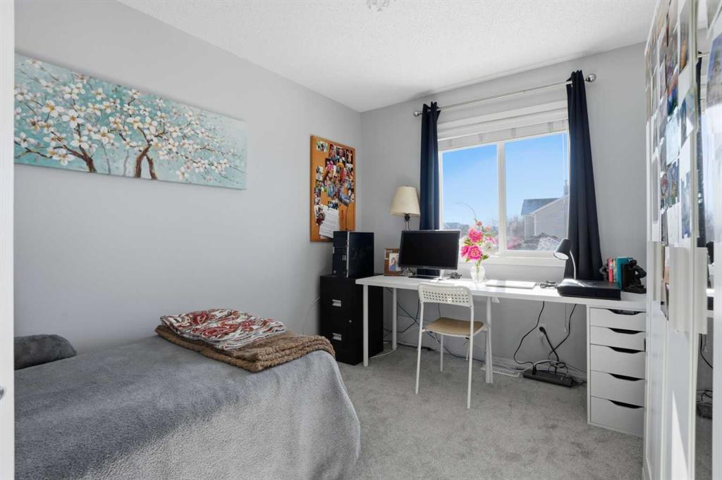 Fantastic Bridlewood attached home that checks all the boxes for a First Time Homebuyer or Savvy Investor, with absolutely NO CONDO or HOA FEES! This well cared for Bridlewood Beauty features a BRIGHT SOUTH-FACING KITCHEN & BACKYARD with a serene PARK directly across the street, offering peaceful views & a great sense of Community! Inside you will find over 1700 sq ft of Developed living space. The main level is warm & inviting, newer LVP FLOORING, NEW CARPET both upstairs & in fully finished basement. Front Living room, and a Bright Kitchen complete with Maple Cabinets, ample Counter Space & Stainless Steel Appliances. In-Suite Washer & Dryer pl aus AIR CONDITIONING add everyday Convenience. Upstairs, there are 3 Bedrooms & a RENOVATED bathroom. The Fully Finished Basement adds incredible value featuring a Spacious 4th bedroom, a full 4 pc Bath, a Large Family or Recreation room, and plenty of storage, making it perfect for Guests, Teens, or a Home Office setup. Then step outside to enjoy the SUNNY South Facing Patio, featuring a Spacious covered Deck with curtains that can be closed on hot days, a a Vegetable Garden, and lots of room to Relax and Entertain. PARKING is a major bonus with a Single Detached Garage, an adjacent PARKING PAD for an RV trailer and plenty of additional parking on street. Located in a quiet, friendly area known for its kind and helpful neighbors, this home is a short 10 minute walk to Bridlewood Elementary School or JJ O’Brien Catholic School, 15 minutes walk to the Glenmore Christian Academy, 4 minutes drive to Sobey’s, an 8 minute drive to the Somerset LRT and the abundant Shawnessy Shopping District. Other local Community Shops, Restaurants, Medical Clinics & more, easy access to Stoney Trail Ring Road & other major Highways & public transit, make daily life easy and well connected!