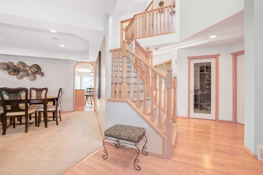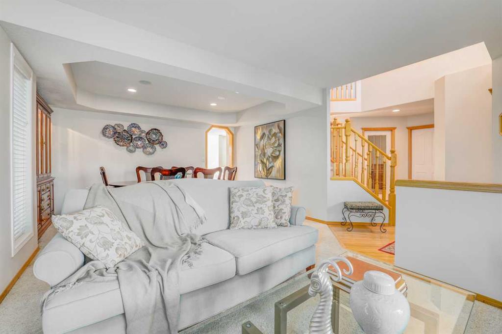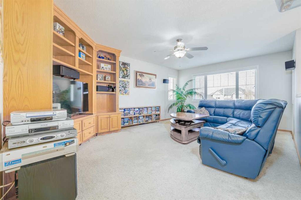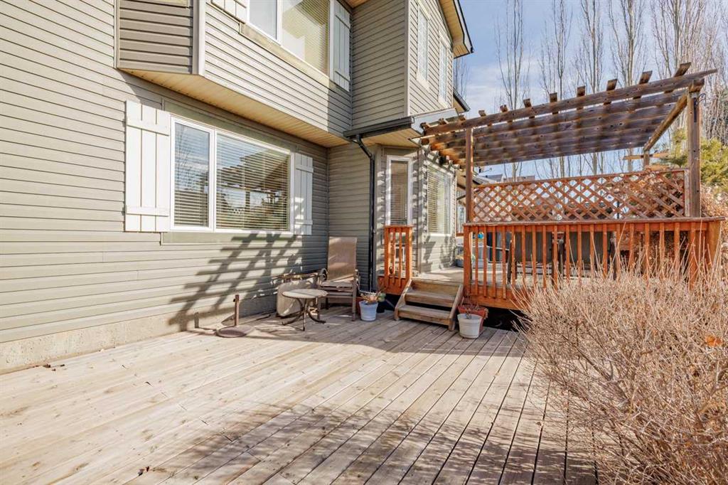 Exclusive Lake Access – South backyard and Semi Private Beach & Dock. This property includes designated Lake Access with shared use of a private beach and dock, available only to a limited number of neighbouring homes. A gated pathway (locked at the road) ensures access is restricted to residents only — no public entry.The perfect blend of privacy, community, and lake living. Perfectly positioned on a exclusive quiet cul-de-sac in Chaparral with lake privileges, this fully finished 5 Bedroom 2-storey offers over 3,700 sq ft of developed space. A welcoming front porch sets the tone, creating a peaceful place for morning coffee while warmly greeting guests. Inside, a bayed living room flows effortlessly into the formal dining room, creating an elegant setting for hosting and everyday connection. Built-in speakers add ambiance throughout the main level, enhancing both quiet evenings and lively gatherings. Hardwood floors lead into a spacious kitchen designed for both function and conversation, where a gas stove allows precise cooking, stone countertops provide lasting durability, a walk-in pantry keeps essentials organized and a large centre island naturally becomes the heart of the home. Surrounded by windows, the breakfast nook captures backyard views and opens directly to the deck, encouraging an easy indoor-outdoor lifestyle. Anchored by a gas fireplace flanked with built-ins, the family room invites relaxation at the end of the day. An enclosed den offers a tucked-away space for work, study or hobbies, while a convenient powder room completes the main level. Upstairs, a generous bonus room with a built-in media centre creates flexibility for movie nights and games. The primary bedroom serves as a true retreat with a spacious layout, walk-in closet and a well-appointed ensuite featuring dual sinks and a jetted soaker tub designed for relaxation. Two additional bedrooms and a 4-piece bathroom complete the upper level. Downstairs, the fully finished basement expands living space with a large rec room for gathering and unwinding, along with 2 additional bedrooms and a 3-piece bathroom that adds versatility for guests or growing families. Outside, the south-facing backyard is privately fenced and filled with sunshine throughout the day. A massive 2-tiered deck creates multiple zones for entertaining, and the pergola above the upper level offers welcome shade on warm afternoons. Backing onto a walking path that connects to a nearby park enhances both privacy and lifestyle. An oversized double attached garage provides ample space for vehicles and storage. Living here means enjoying year-round activities at Chaparral Lake, convenient shopping and dining at the Gates of Walden, and quick access to Fish Creek Park and Sikome Lake for endless outdoor recreation. Steps to parks, green spaces and serene pathways ensure everyday life feels both active and connected to nature.