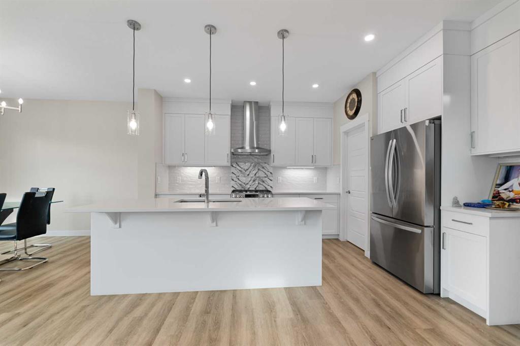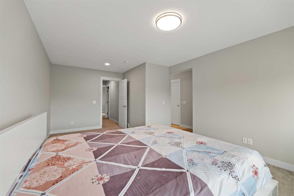 CONVENIENT SIDE ENTRY | MAIN FLOOR BEDROOM & FULL BATH | CORNER LOT. Welcome to this exquisite Anthem BUILT Signature Home in the highly sought-after and fast-growing community of Cornerstone, where modern living meets natural surroundings. This beautifully designed 2-storey home offers over 2,200 sq.ft. of exceptional craftsmanship and thoughtful detail — perfect for large or multi-generational families. Step inside to discover a bright and open floor plan featuring luxurious vinyl plank flooring, high ceilings, and a gourmet kitchen equipped with quartz countertops, sleek stainless steel appliances, including an gas stove, French door refrigerator, and built-in microwave. A walk-through pantry and spacious center island make this kitchen both stylish and functional. The main floor bedroom with a full bath provides the ideal space for guests or extended family, while large windows fill the living and dining areas with natural light, enhancing the corner lot’s open feel. Upstairs, you’ll find four generous bedrooms, including a stunning primary suite with a spa-inspired ensuite featuring dual vanities, a soaker tub, stand-alone shower, and a walk-in closet. A central family room separates the primary suite from the additional bedrooms, ensuring privacy and comfort. The upper level also includes a large laundry room, plus a main bath with dual vanities. Additional highlights include an expanded dining area, side entrance, and corner lot location. Perfectly situated close to the Calgary International Airport, with easy access to Deerfoot Trail and Stoney Trail, and surrounded by ever-growing amenities, this brand-new home delivers both luxury and practicality, ready for your family to move in and enjoy!