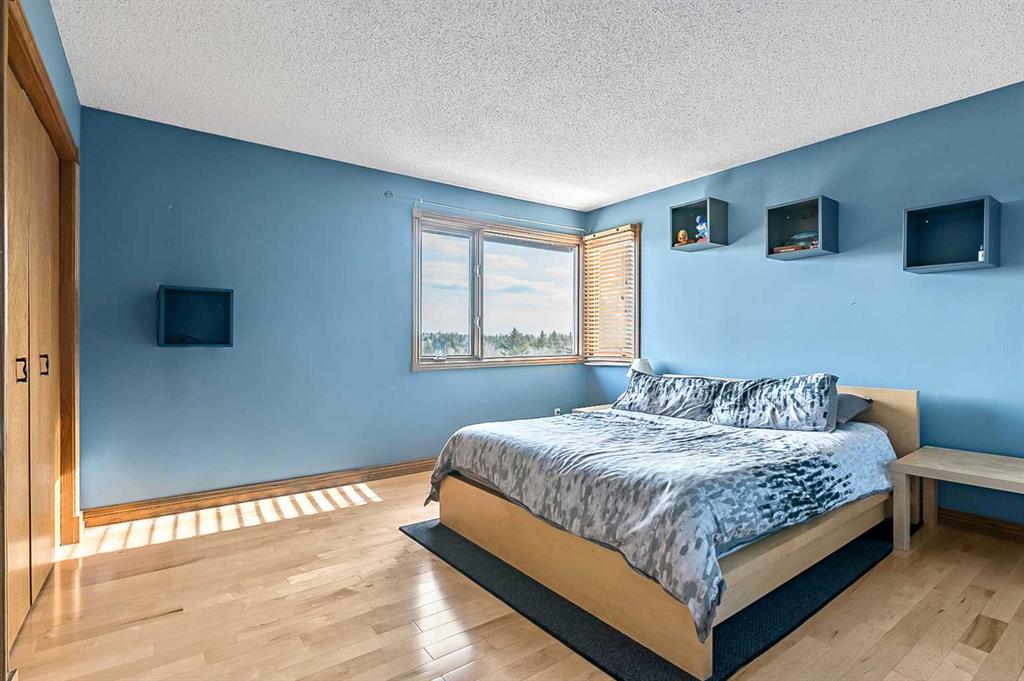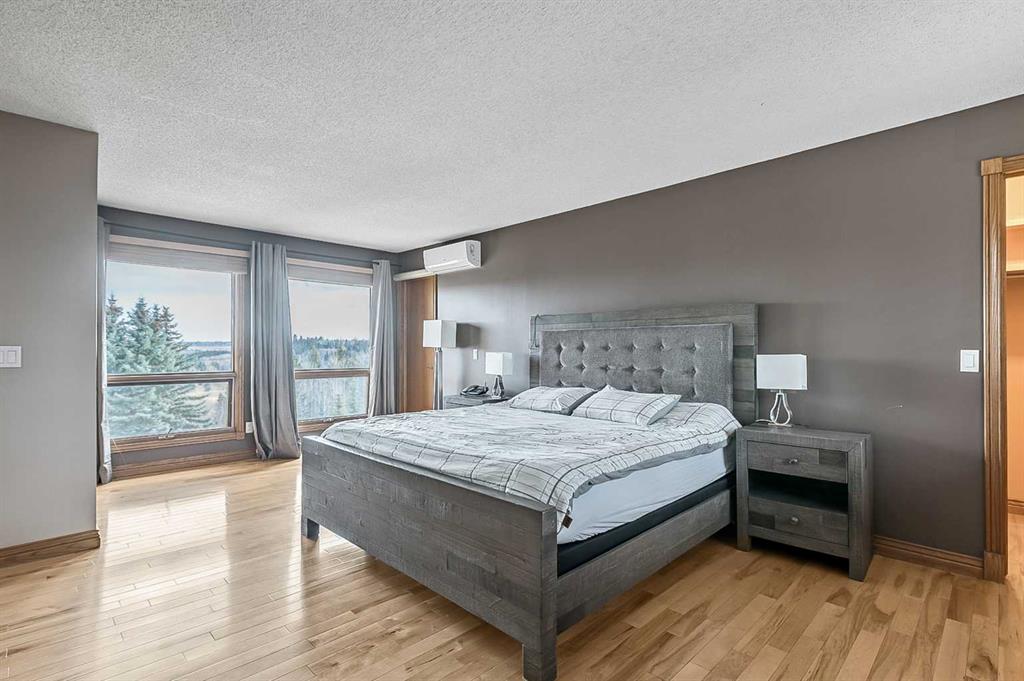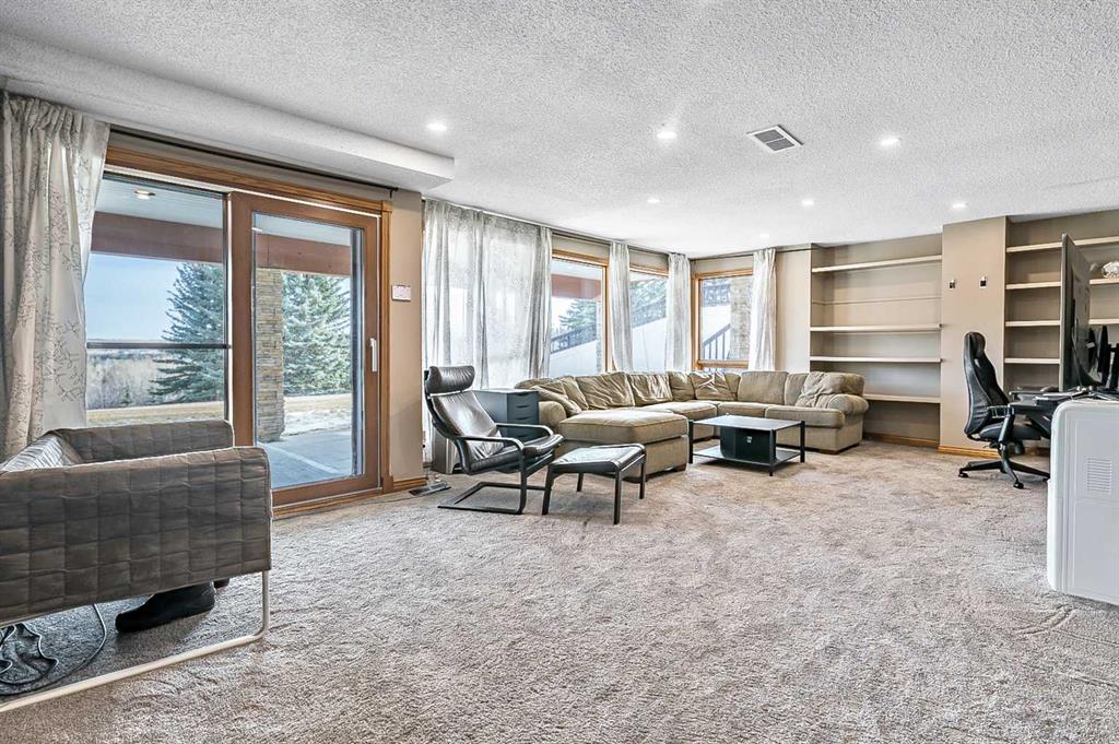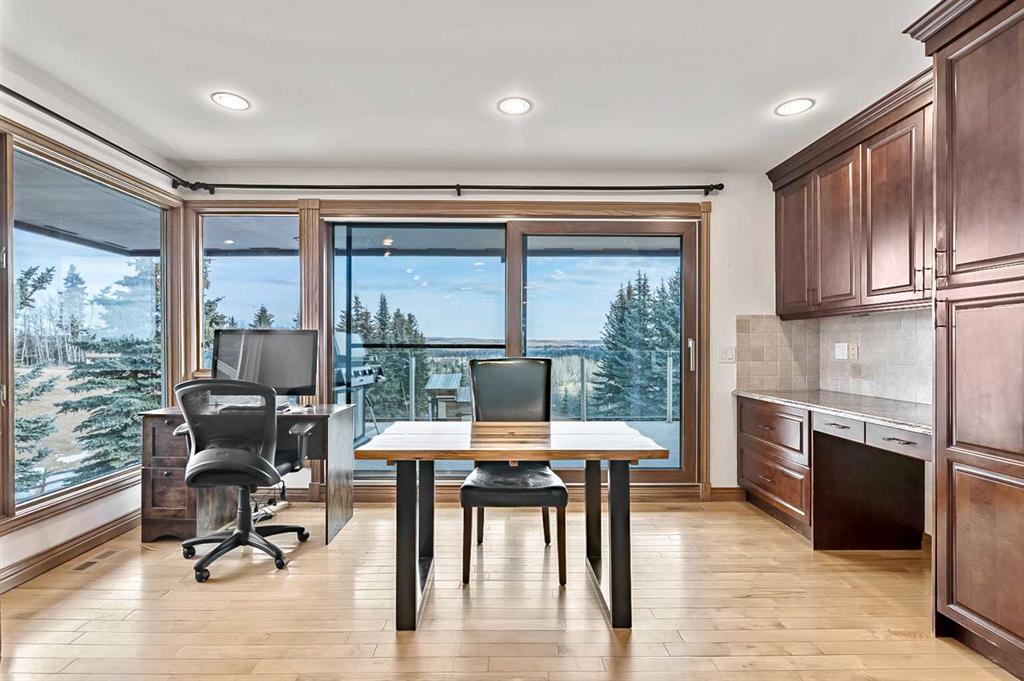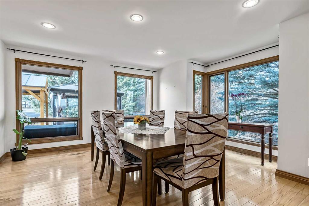 VIEWS VIEWS VIEWS! Welcome to this exceptional seven-bedroom, three-and-a-half-bathroom estate home in the prestigious Elbow River Estates community. Offering over 3,700 square feet of thoughtfully designed living space, this impressive two-storey residence is perfectly positioned on a premium lot capturing fantastic mountain views from the front and sweeping, unobstructed panoramas over the Glencoe Golf Course from the rear. A grand two-storey foyer with a graceful, curved staircase sets an elegant tone upon arrival. The main level is designed to highlight the scenery, featuring a warm and inviting living room with a wood-burning fireplace and large windows that frame the picturesque surroundings. The formal dining room, highlighted by a charming bump-out, provides an ideal setting for hosting. The beautifully updated kitchen is appointed with granite countertops, oak cabinetry, stainless steel appliances, and a built-in desk, all while enjoying serene backyard views. The adjoining family room, centered around a cozy gas fireplace, opens through sliding doors to a spacious deck—an outstanding vantage point to take in the spectacular golf course vistas and unforgettable sunsets. Upstairs, the primary suite offers a luxurious private retreat enhanced by beautiful views and a two-sided gas fireplace that separates the sleeping area from a tranquil sitting space. Four additional generously sized bedrooms and a full bathroom complete the upper level, offering comfort and flexibility for family or guests. The fully developed walkout lower level continues to impress with stunning, uninterrupted views of the golf course, along with an additional bedroom, recreation room, den, wine room, and abundant storage and utility areas. Step outside to enjoy the peaceful setting and expansive open landscape beyond. A triple attached garage and a well-designed mudroom with laundry and built-in storage add everyday convenience. Residents of Elbow River Estates enjoy access to exceptional community amenities including a playground, tennis and basketball courts, a seasonal outdoor rink, and a community horse arena—all just minutes from Calgary. Nearby Clearwater Park and Calgary Academy further enhance this highly desirable location. This is a rare opportunity to own a remarkable home defined by space and truly fantastic views in one of the area’s most sought-after communities!