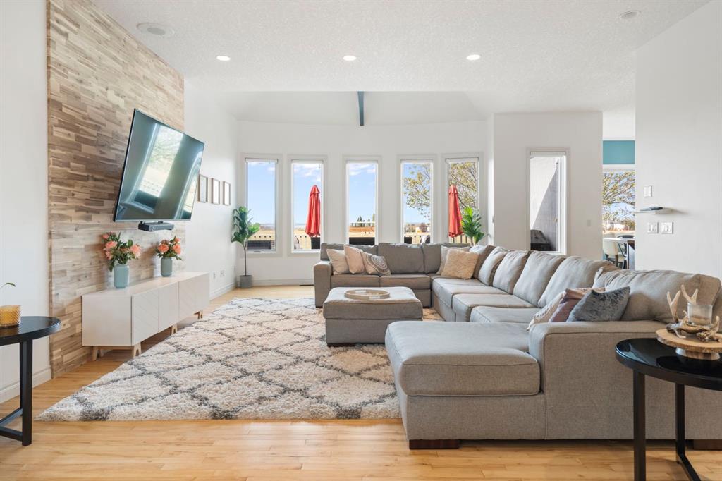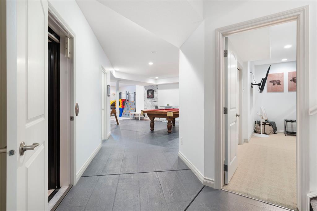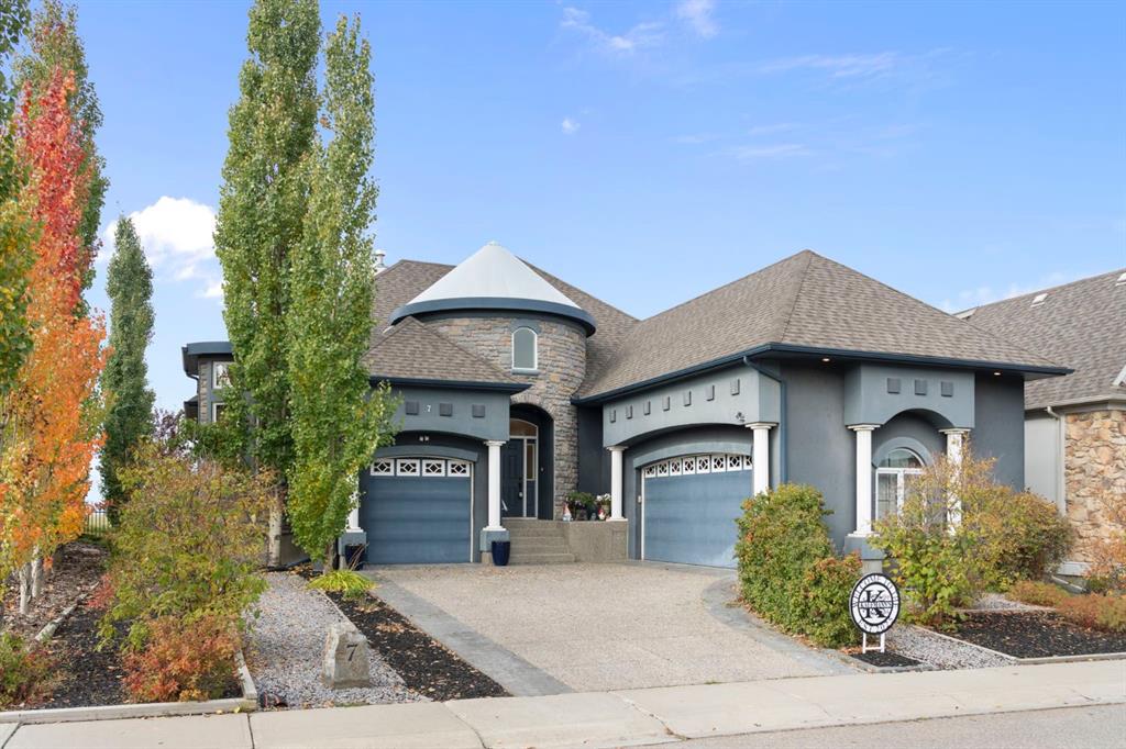 **Click to view our CINEMATIC VIRTUAL TOUR!** Welcome to 7 Rockcliff Landing—a stunning French Country-style bungalow in prestigious Rocky Ridge, offering over 4,200 sq ft of fully finished luxury. A grand main entrance, a bright open-concept main floor, and uninterrupted Rocky Mountain views create an impressive yet inviting atmosphere from the moment you walk in. The main living space flows effortlessly into a private west-facing backyard, backing onto walking trails and green space. Designed for both family life and personal retreat, this home features: Two heated garages. Optional his-and-hers home offices. Luxurious primary suite with dual walk-in closets and private ensuites. This home has another 4 bedrooms, including a walkout basement with separate entrance. Private elevator for full accessibility. The fully finished lower level is a family’s dream, complete with a rec room, wet bar, steam shower, cold room, and safe room (3’x4′)—all warmed with in-floor heating. Extras include a custom mudroom with dog wash, flexible office/guest spaces, and abundant storage throughout. Upgrades: $40K into backyard landscaping including a putting green, full central air (2022), water softener (2023), new steam shower unit (2023), new IBC tankless hot water (2023), New carpet on main (2021). Minutes to Royal Oak Centre, walking distance to Co-op, and quick access to major routes—this home offers luxury, comfort, and convenience in one perfect package. Book your private tour today—this gem won’t last!