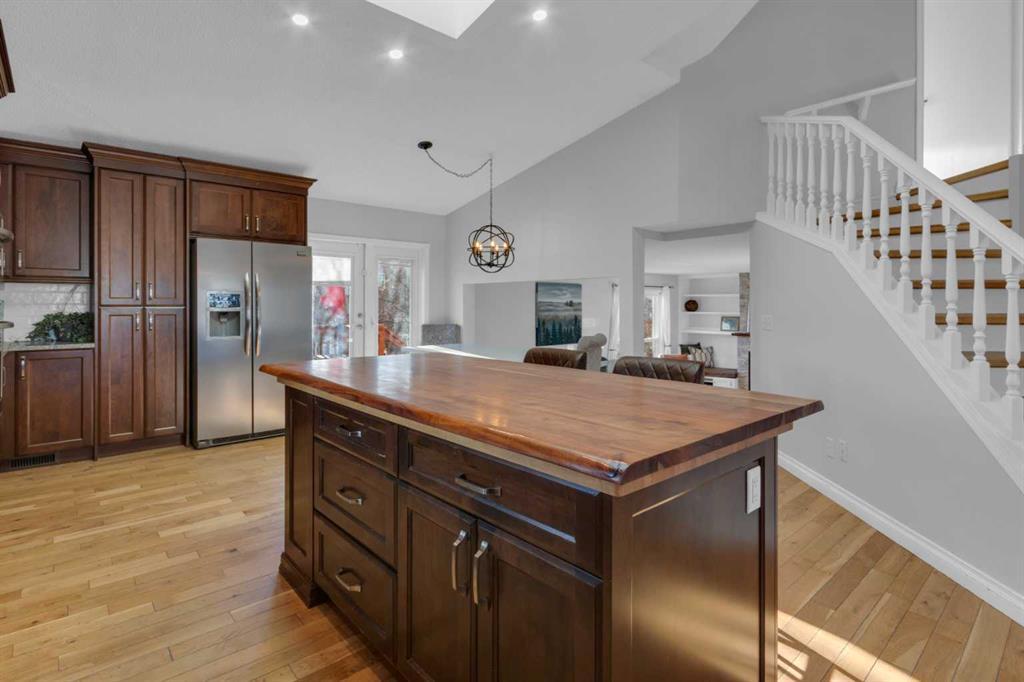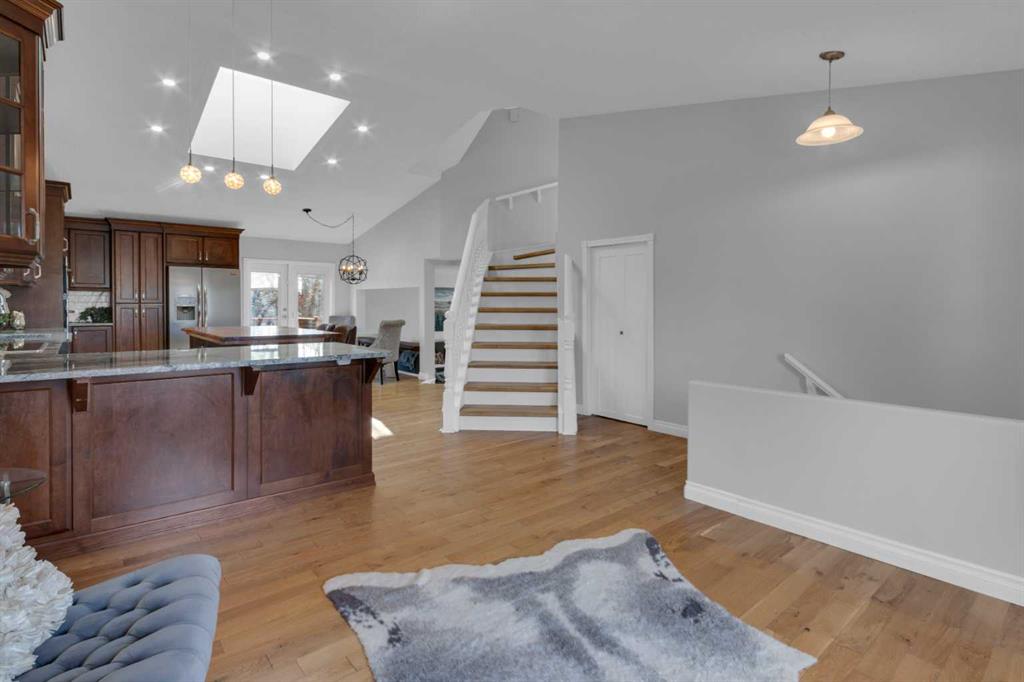 Step inside to a spacious and thoughtfully updated four-level split designed to comfortably accommodate family life. The main floor makes an immediate impression with a stunning custom kitchen by Layne Kitchens and Design. No expense was spared, with granite counters, built-in ovens, an induction cooktop, a massive island, and elegant cabinetry with convenient sliding storage features. A bright front living area with SOARING CEILINGS and a generous dining space complete this level.