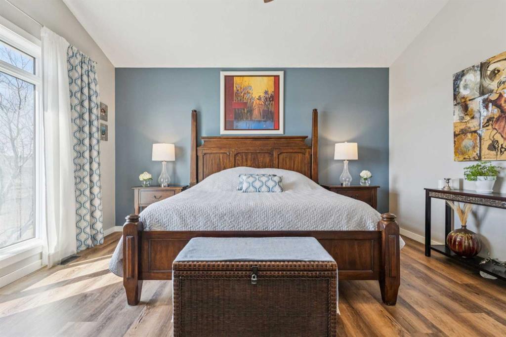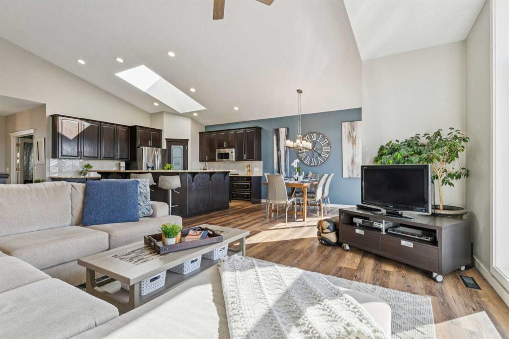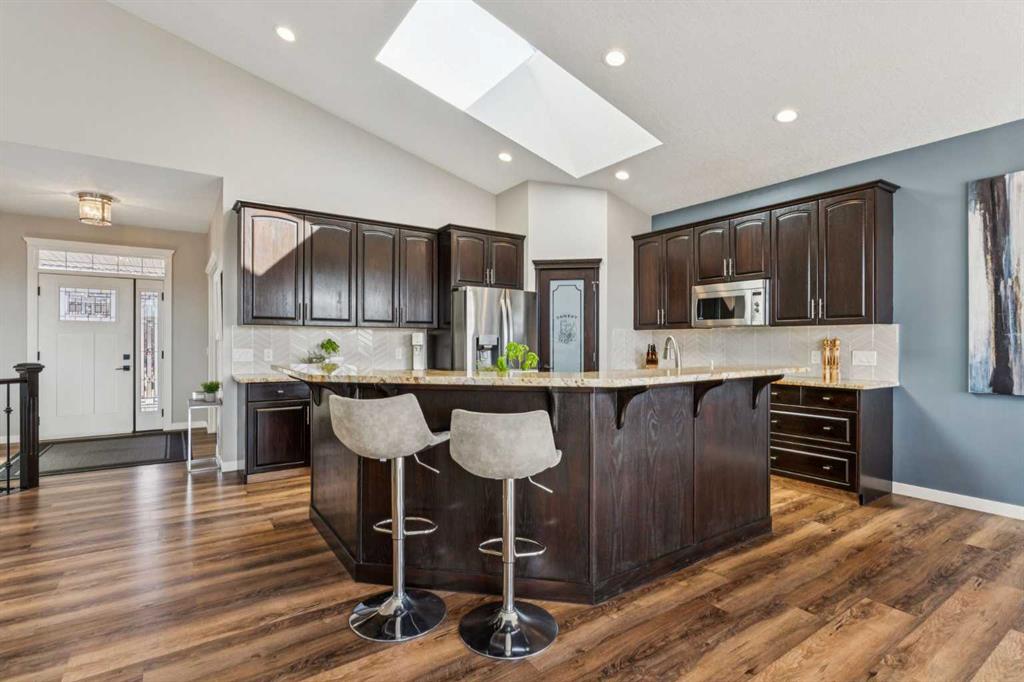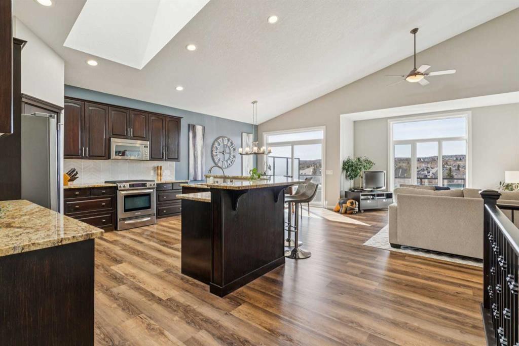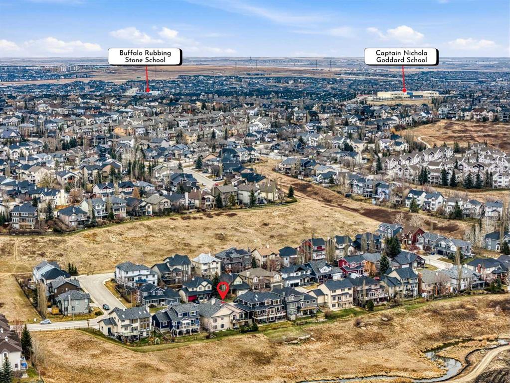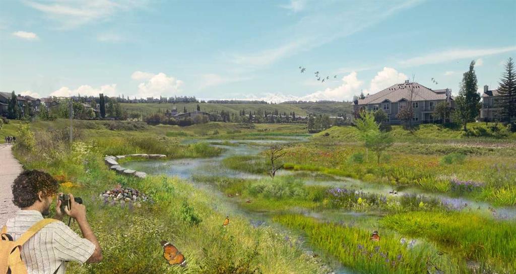 **OPEN HOUSE SAT Apr 18 2PM to 5PM** Set on a quiet street and backing directly onto the Nose Creek Reserve, this bright south-facing walkout bungalow has 2900 sqft of fully-developed lcing space and offers the feeling of a private nature retreat while keeping the city close. Enjoy peaceful wetland views, wildlife sightings, and both colourful sunrises and lingering summer sunsets from your outdoor living spaces, all with a manageable yard that still leaves room to play and relax. Inside, the main level is open, airy, and filled with natural light thanks to large new windows, cathedral ceilings, and skylights. A den with French doors provides a perfect flex space for a home office or formal dining. The chef’s kitchen features granite countertops, chevron tile backsplash, premium stainless appliances (New Fridge 2025), an oversized amount of cabinetry, and a seamless connection to the dining and living areas for everyday living and easy hosting. The main floor is completed by a spacious primary retreat with walk-in closet and ensuite with skylight, plus convenient main floor laundry and a 2pc powder room. The walkout lower level expands your options with a large family room anchored by a corner gas fireplace and comfortable in-floor heating. Two generous bedrooms offer excellent separation, including one with its own 4pc ensuite and walk-in closet, plus an additional 3-pc bath and direct access to the covered patio for summer evenings outside. Easily add a hot tub with power avaialable. The attached over-sized triple garage is drywalled and heated with in-floor heat, ideal for the hobbyist, the gear-heavy household, or simply staying warm year-round. Major updates include a high-efficiency furnace and boiler (2022), Lux windows (2022), Class 4 shingle roof (2025), new eavestroughs and downspouts (2025), and skylights replaced (2026). With quick access to Stoney Trail, Country Hills Blvd, 14th Street NW, and Deerfoot, plus nearby Creekside amenities and schools, this is a rare combination of comfort, views, and convenience.