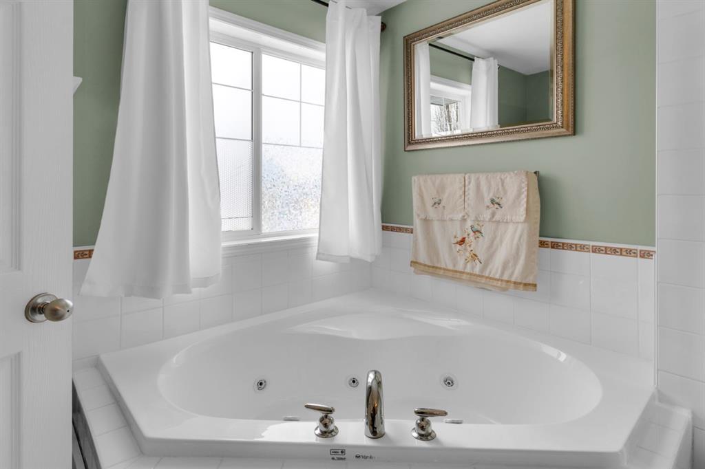 Welcome to this inviting 1.5 story home in the highly desirable community of West Springs! This beautiful family home offers three spacious bedrooms, two full bathrooms and a double attached garage. The main floor showcases new luxury vinyl plank flooring , a fresh coat of paint and a bright open layout filled with natural light from oversized windows, a skylight and vaulted ceilings. The spacious kitchen has a new dishwasher, abundant cabinetry, a corner pantry and generous prep space with both a centre island and peninsula, making it perfect for cooking and entertaining. The dining area and inviting living room with a cozy gas fireplace overlooks the backyard, ideal in a family home for keeping an eye on little ones. Step outside to a low maintenance yard featuring an upper rear deck with bbq gas line, a lower stone patio and a rock garden in the front. Two large bedrooms, a 4pc bathroom and convenient main floor laundry with a new dryer complete this level. The primary bedroom occupies the entire upper level creating a private retreat with south facing windows flooding the space with light, along with a walk in closet and 4pc ensuite that offers comfort and privacy. The unfinished lower level is awaiting your personal touch and features large windows, tall ceilings and a rough-in for a future bathroom plus it has a new furnace. Located just 20 minutes from downtown, West Springs offers excellent schools, top restaurants, cafes, fitness facilities and boutique shopping all within walking distance from your front door.