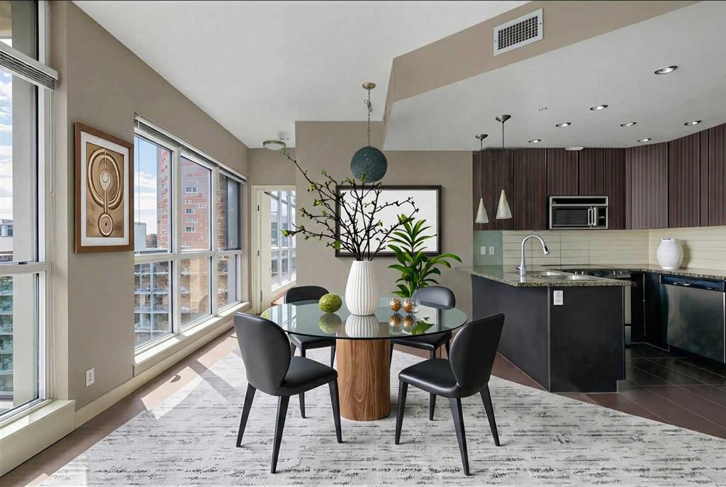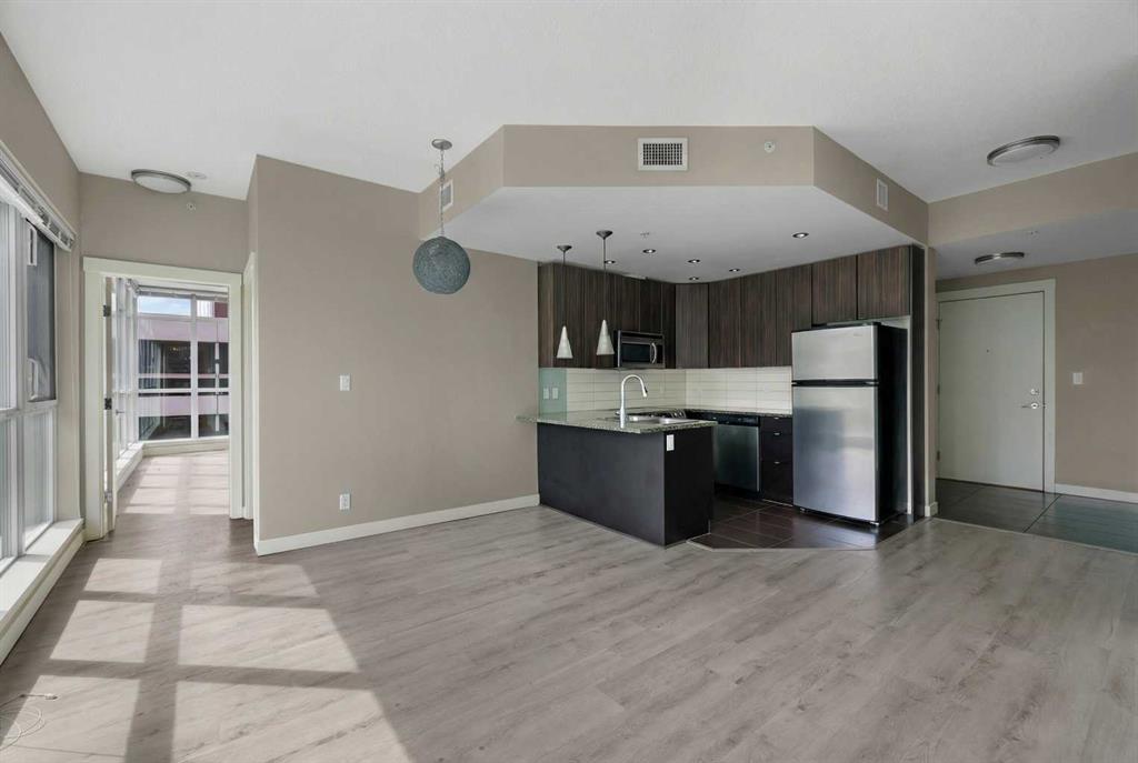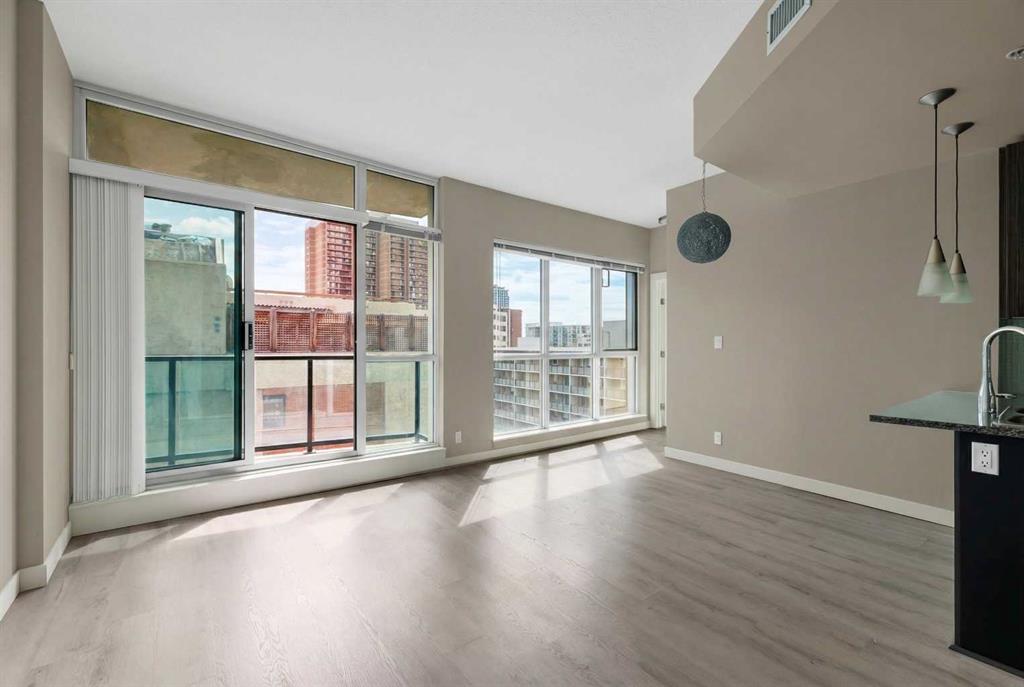 Welcome to the Xenex on 12th! Amazing location, close to shopping, dining, entertainment, as well as the trendy shops &restaurants of 17th Avenue. This contemporary floor plan is warm & inviting. It is tastefully decorated in modern colours and fixtures. This apartment features 9ft ceilings, granite countertops, stainless steel appliances, luxury vinyl plank hardwood flooring, tile flooring, floor-to-ceiling windows, and air conditioning! There is a good-sized bedroom, an open kitchen, a formal dining area, a spacious bright living room with patio doors leading to the covered balcony, a 4-piece bathroom, in-suite laundry with ample storage space, and an underground heated parking stall. This home exhibits sweeping views of downtown!! This concrete building is well maintained and secure with concierge service. There is also underground parking for your visitors and a car wash bay! A truly exceptional home! Move-In ready! Don’t miss this opportunity to own this beautiful home!