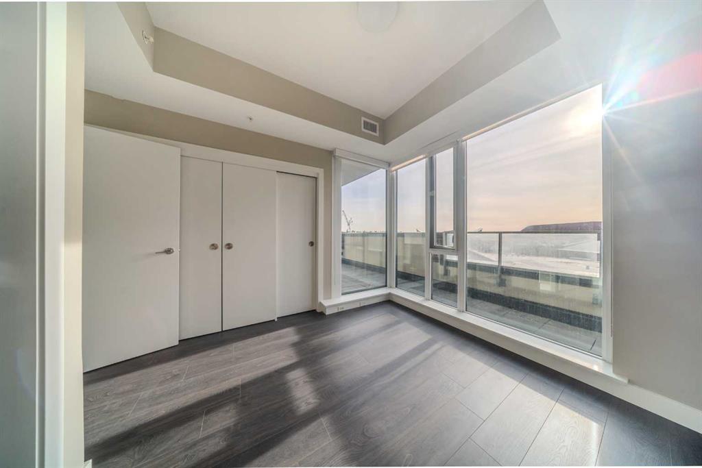NEWLY RENOVATED, the home features modern high-end upgrades throughout, including brand-new flooring, premium kitchen cabinetry, contemporary tile backsplashes, quartz countertops, and sleek integrated appliances. The 9.5’ extra-tall ceilings exclusive to the terrace level create an airy sense of space, while the well-proportioned open-concept living area showcases two walls of floor-to-ceiling windows framing sunsets over the mountains, city skyline twinkles, and even front-row views of Stampede fireworks.