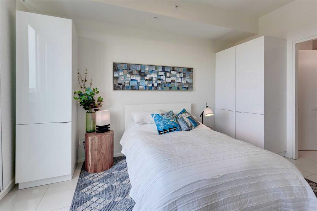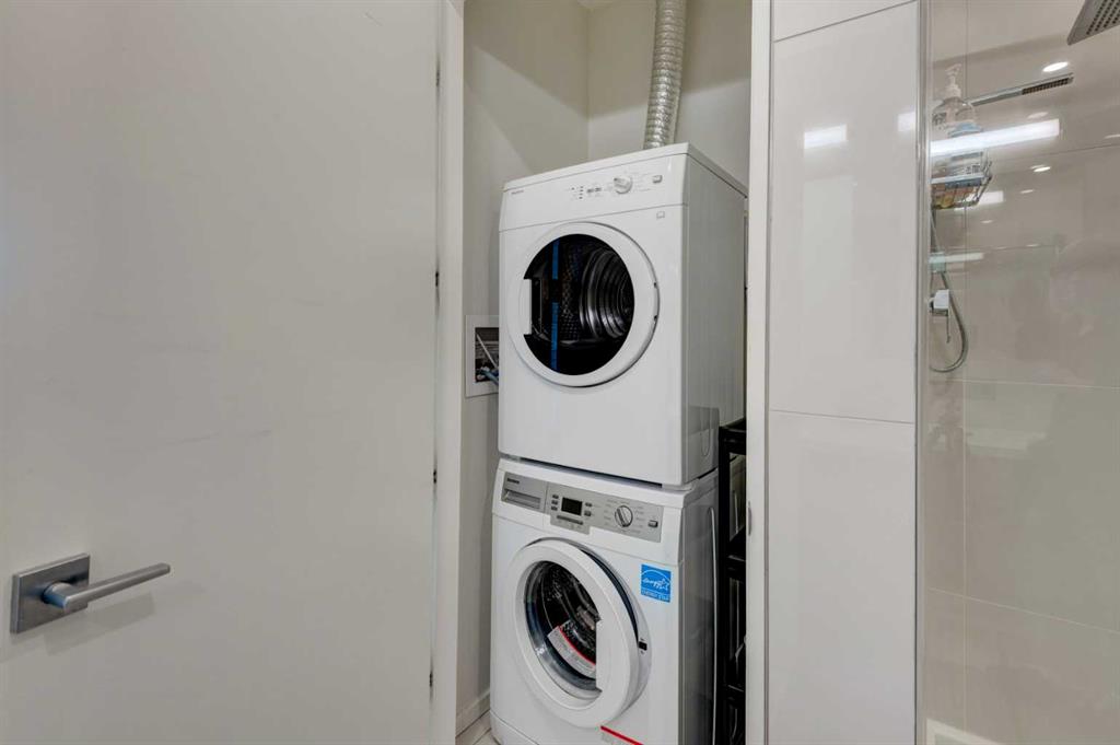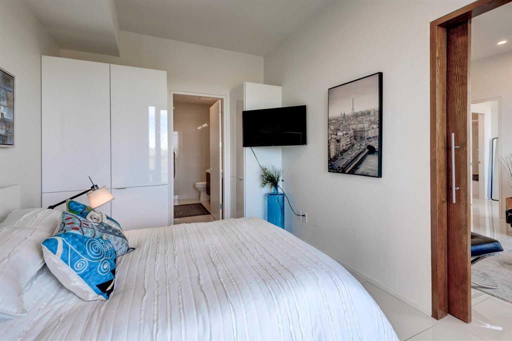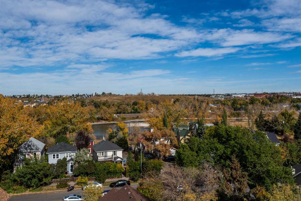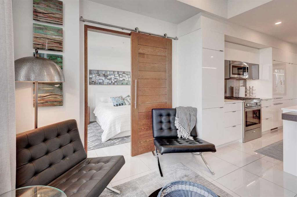 Welcome to unit 704 in The Avli in Inglewood a great unit in a pet friendly building. This TOP FLOOR unit with beautiful north views of the Calgary Zoo, Bow river and Bridgeland features 2 bedrooms – 2 bathrooms, titled underground parking and an additional storage locker. This is a great balance of modern style and functionality with sleek flooring, solid barn style sliding doors and modern lighting. The kitchen features a large quartz island with an extended wood eating counter, tons of cabinetry and European style integrated appliances. Primary bedroom has direct slider access to the large north facing balcony, built in wardrobes and a 4 piece ensuite with dual floating vanity and glass door shower. Second bedroom and bathroom are on the opposite side on the unit, perfect for guests. The flex space is ideal for a home office or additional storage. Building amenities include heated visitor parking, guest suite, car wash bay, bike locker and a large 3rd floor outdoor social space for larger gatherings. The Avli is a modern sleek stylish building in the heart of Inglewood that is well taken care of, very well managed and steps away from great restaurants, shopping, downtown, The Saddledome, Bow River and the Calgary Zoo.