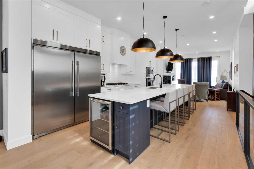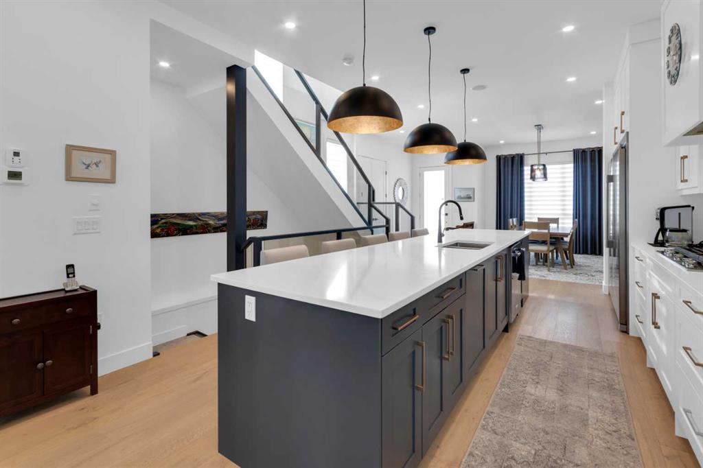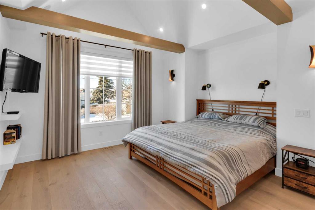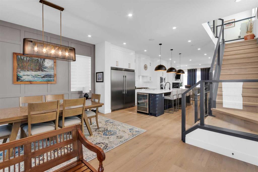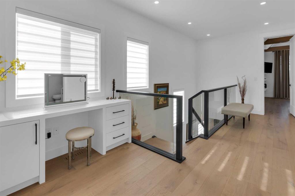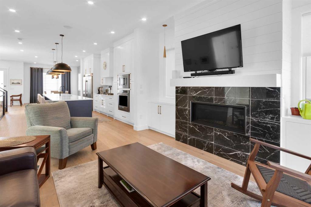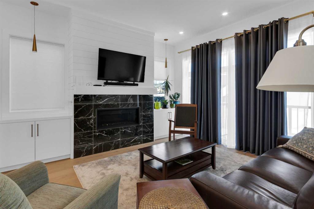 Welcome to this beautifully appointed two-storey home with a fully finished basement, in-floor heating, and air conditioning, ideally located in the highly sought-after community of Spruce Cliff close to schools, shopping, the LRT, Westbrook Mall, Calgary Public Library, Edworthy Park, and Shaganappi Golf Course offering golf and cross-country skiing, as well as an extensive pathway system connecting to Glenmore Park, Bowness Park, and downtown; this home is rich in upgrades and features a chef’s kitchen with a massive island and high-end appliance package, cozy fireplace, spacious dining room with a stylish feature wall, and an incredible primary retreat complete with a spa-like 5-piece ensuite offering a steam shower, heated floors, and walk-in closet, along with wide-plank hardwood and marble flooring, built-ins in every closet, custom window coverings, a functional mudroom, and abundant storage throughout, while the upper level offers an open bonus space ideal for a TV area, office, or study and the lower level includes a glass-walled soundproof room perfect for a music studio or home gym; the professionally landscaped and fully fenced exterior boasts mature trees, a private backyard with aggregate patio and rear landing/deck, security bars on lower windows, and a double detached garage that is drywalled and insulated, completing this exceptional home—call today for your private viewing.