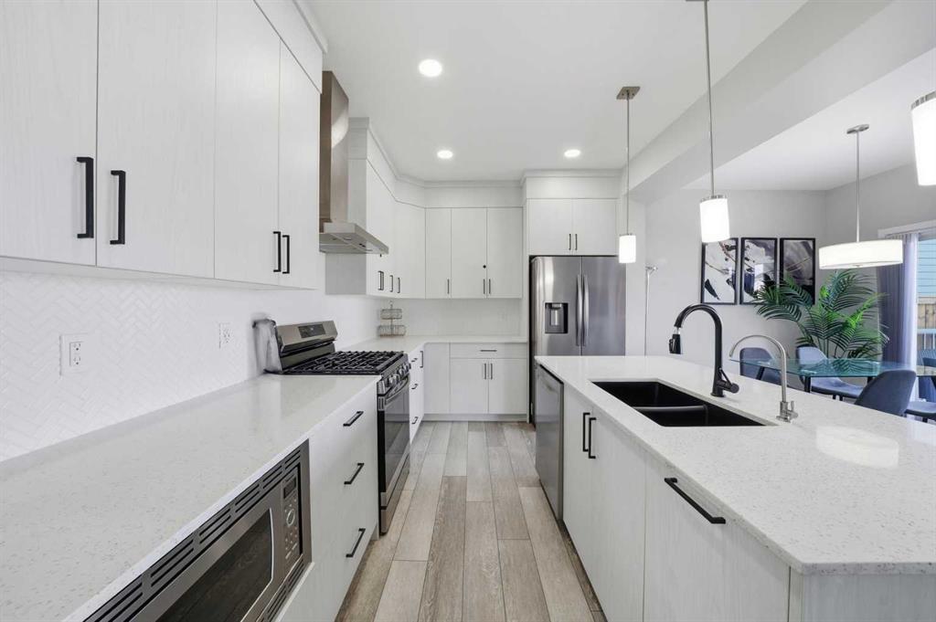 Welcome to this exceptional 2023 built Excel Homes located in Pine Creek SW, one of South Calgary’s most exciting and up-and-coming communities offering nearly 1,900 sq. ft. of thoughtfully well-designed living space, this beautifully maintained home is move-in ready and loaded with upgrades. The bright, open-concept main floor showcases high ceilings, expansive windows, and a seamless layout ideal for both everyday living and entertaining. The main floor features an open layout with bright windows, quartz countertops, modern cabinetry, and a spacious living and dining area finished with LVP and carpet flooring. Upstairs, you will find three well-appointed bedrooms, a spacious bonus room, and the added convenience of upper-floor laundry, brilliantly designed for today’s busy households. The primary bedroom retreat offers a walk-in closet and a private 5-piece ensuite, while the additional bedrooms are serviced by a well-appointed 4-piece main bath. Included are Smart home essentials package including Ring Video Doorbell, all-in-one thermostat, Wi-Fi garage door opener, additional USB/USB-C ports and CAT6 location. Enjoy a fully fenced backyard with a completed deck, ideal for outdoor living. A separate side entrance leads to a fully developed 1-bedroom legal basement suite, providing private space for extended family or guests. This home also comes equipped with air conditioning for added year-round comfort. Additional highlights include a two-car attached garage, quality craftsmanship, and a desirable lot featuring no rear neighbors. Situated in the growing community of Pine Creek, residents enjoy a peaceful suburban setting with convenient access to schools, parks, shopping, and major commuter routes including Deerfoot Trail, Stoney Trail, and Macleod Trail. An excellent opportunity to own a newer construction home with a finished basement in one of South Calgary’s most sought-after locations! and located in a growing SW community close to parks, pathways, and amenities, this home offers comfort, functionality, and long-term value.