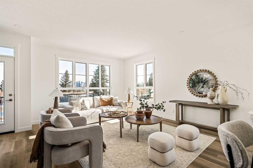 **OPEN HOUSE – SATURDAY, FEBRUARY 28TH, 1:00 PM- 3:00 PM** Welcome to the Torrey at Crown Park – an exceptional opportunity offering a brand new move-in ready townhouse that features 3 bedrooms, 2.5 bathrooms and a private double attached garage. Featuring nearly 1,700 ft2 of living space, this end-unit townhome is perfectly situated with optimal southwest exposure providing a bright living space that is flooded with natural light. The bright and open main living area features a stunning kitchen with endless upgrades including built-in appliances, a quartz island and timeless cabinetry. The kitchen has been designed for entertaining, located directly off of the expansive main living area. Walls of windows surround the entire main level, providing you with a naturally lit living space all year long. The ~17’x16′ great room has ample space for virtually any furniture configuration and opens to the large dining area – creating a seamless flow between spaces. The main level is complete with a 2 pc powder room and direct access to the sprawling 26′ balcony that spans the width of the home. The outdoor living space is equipped with a BBQ gas line and hose bib, adding to everyday convenience. The upper level has been thoughtfully designed with the primary suite spanning the width of the home and the secondary rooms and bathroom on the opposite end. The ~12’x12′ primary bedroom has ample space for a king bedroom suite and includes a walk-in closet and a private 4 pc ensuite with dual sinks and a walk-in tiled shower. The upper level is finished by two additional bedrooms, a full bathroom and laundry – ensuring everyday convenience. The flexibility of three bedrooms makes this the perfect family home or guest bedroom with a home office space – providing exceptional long term value. The entry level of the home provides access to the private double attached garage, which has additional space for storage, as well as a large storage room – keeping all of your valuables safe and secure all year round. Located in one of Calgary’s last inner-city developments, just minutes to downtown Calgary with endless transportation routes at your fingertips, this brand new home offers exceptional value and is perfect for first time buyers, investors, or those wanting a lock-and-leave lifestyle with maintenance-free living. Backed by a comprehensive builder warranty + Alberta New Home Warranty, this brand new home allows you to purchase with peace of mind!