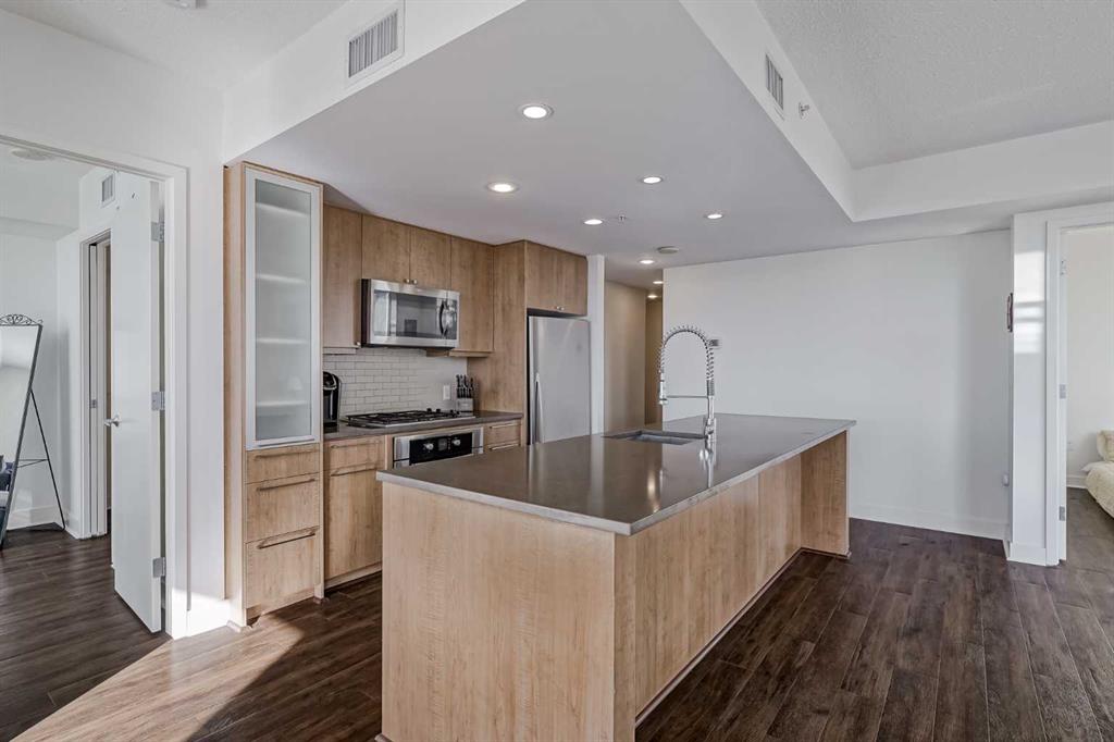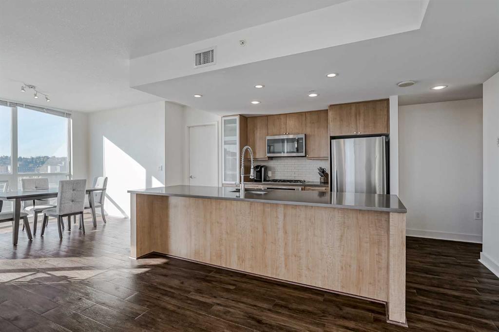 This stylish and contemporary condo features an open-concept design accentuated by extensive, floor-to-ceiling windows that flood the space with natural light and offer outstanding expansive city and mountain views. Enjoy your morning coffee or wind down in the evening on the large, southeast-facing corner balcony.