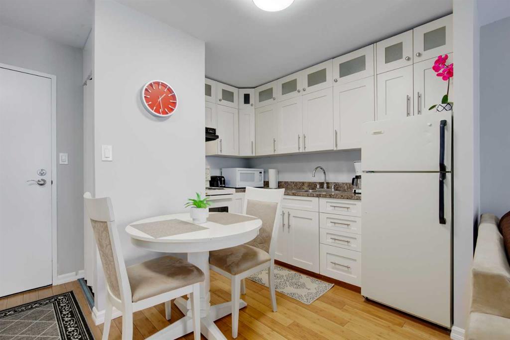 Located in the heart of Calgary’s Beltline, this charming 7th-floor condo is just steps away from 17th Avenue, Memorial Park, Stampede Grounds, Bow River, and downtown. The concrete building is pet-friendly, making it a true haven for pet owners. Residents benefit from top-tier amenities including two secure elevators, an on-site building operator, a full-time cleaner, a fitness center, an indoor pool, a sauna, and 24/7 video security. Step inside to discover a bright, open layout highlighted by a modern white kitchen. Bamboo flooring flows seamlessly throughout the living area that opens onto a private balcony. The bedroom boasts a full wall of premium closet space complemented by custom built-in drawers. The unit also includes an assigned parking stall and is move-in ready—no renovations needed. All utilities are included in the condo fees: heat, water, electricity, appliances, parking, exterior maintenance, and snow removal. This stylish condo is an exceptional opportunity for first-time buyers, professionals, downsizers, or investors. Book your showing today and experience vibrant Beltline living at its finest!