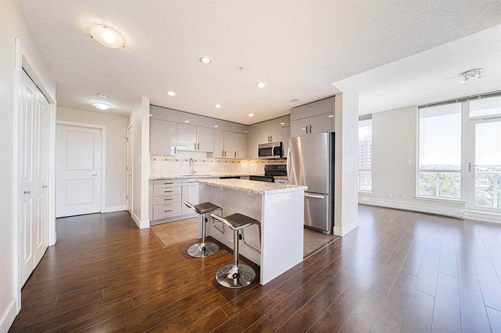 Experience elevated urban living in this beautifully updated 2-bedroom, 2-bath corner unit in the sought-after Spruce Grove building, just steps from Shaganappi Point Golf Course. With over 1,024 sq. ft. of bright, functional space, this 7th-floor condo offers breathtaking downtown and river valley views from nearly every room—plus two private balconies for morning coffee or relaxing evenings with a view.