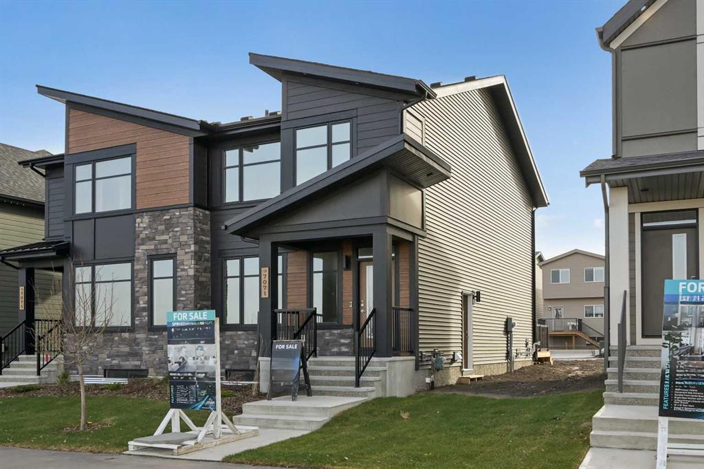 Jayman BUILT | Located in Southeast Calgary, Heartwood blends modern living with natural beauty and thoughtful planning. Get ready to be a part of a vibrant, growing community built for today and tomorrow. It will include 1 future school site, 3 planned parks and green spaces, 1 wetland and pond area and 4 acres of planned commercial retail. Parks, paths and natural areas are designed to enhance everyday living-whether it’s morning walks, weekend picnics or evening strolls. Just imagine yourself living in Jayman BUILT’S brand-new floorplan, aptly named the SPRUCE. Featuring a professionally designed wood colour palette, you are invited to explore over 1300+sqft of nature-inspired design. Stepping into the home, you are greeted with a wonderful visual from front to back, with an expansive sight line that maximizes every inch. Okanagan Desert Canyon Luxury Vinyl Plank flooring graces the main floor, offering a seamless transition from space to space. The Urban Timber elevation complements the interior selections as you tour from the designated dining room to the bright rear kitchen, with a central island. Sleek stainless steel appliances elevate the space, including a Whirlpool refrigerator with icemaker and internal water, an electric slide-in smooth-top range, a Panasonic microwave with trim kit, and a Broan power pack built-in cabinet hood fan. Stunning quartz counter tops, Blanco silgranite undermount sink, soft-close hinges with 48″ uppers and 2 1/2 inch sub moulding reflect nicely with the selected EXTRA Fit & Finish. A functional pantry and powder room complete this level, with a quaint mud room near the back of the home that opens up to your 10×10 deck. Explore the upper level, which features three sizeable bedrooms, including the Primary, with a generous private 3pc en suite with a sliding glass door shower and a spacious walk-in closet. You will also discover a convenient 2nd-floor laundry and full bath for family and guests on this level. The lower level boasts a raised 9ft basement ceiling height and a 3-pc rough-in for plumbing. At the same time, the exterior of this home features a durable Front Hardie Board exterior and BTRboard Exterior Wall System. Jayman’s standard inclusions feature Core Performance with 10 Solar Panels, BuiltGreen Canada standard, an EnerGuide Rating, UV-C Ultraviolet Light Purification System, High-Efficiency Furnace with MERV 13 Filters & HRV unit, Navien Tankless Hot Water Heater, Triple-Pane Windows, and Smart Home Technology Solutions!
