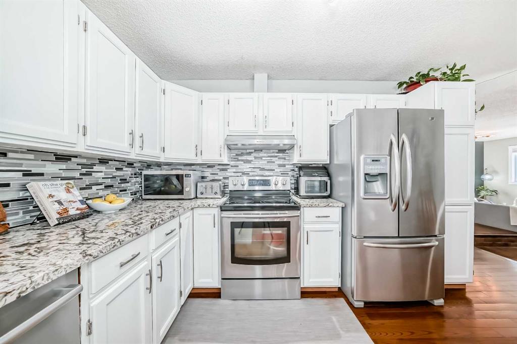Welcome to this beautifully renovated bi-level home nestled in the heart of MacEwan, just steps from scenic pathways and Nose Hill Park. This well-maintained property offers the perfect blend of comfort, style, and location. The main floor features stunning hardwood flooring and a bright, functional layout ideal for everyday living and entertaining. The spacious dining room flows into the living room area -generous enough to accommodate a grand piano – creating an inviting and elegant atmosphere. The kitchen is equipped with white cabinetry and sleek stainless steel appliances and ample workspace. On the main level, you’ll find two large bedrooms, including a primary retreat with a private ensuite, plus an additional full bathroom. The fully finished lower level offers a massive family room, a third bedroom, and another full bathroom—perfect for guests or extended family. The basement also provides direct access to the garage for added convenience. Step outside to an oversized, fully fenced backyard with mature, beautifully maintained landscaping—ideal for relaxing or entertaining. Additional features include central air conditioning, central vacuum, a new hot water tank (2024), and a new water softener (2025), plus an outdoor lighting system that was installed last year. Pride of ownership is evident throughout. Once you step inside, you won’t want to leave. Conveniently located near parks, schools, shopping, and all essential amenities. This property truly has it all. Book your private showing today before it’s too late. Don’t forget to check out the Virtual 3D tour to fully appreciate everything this exceptional home has to offer.