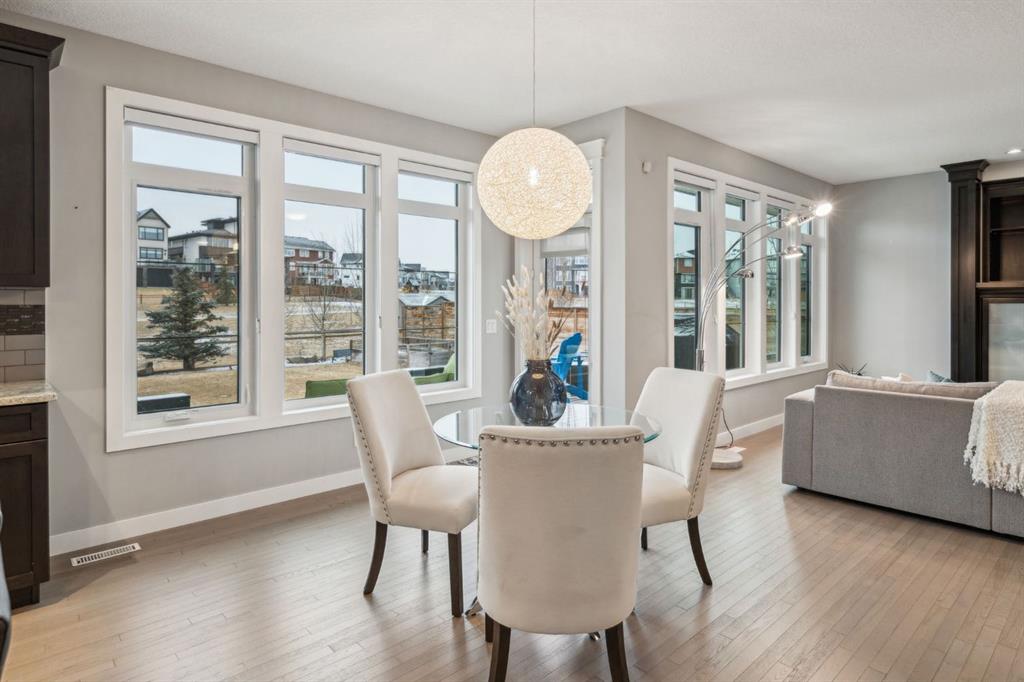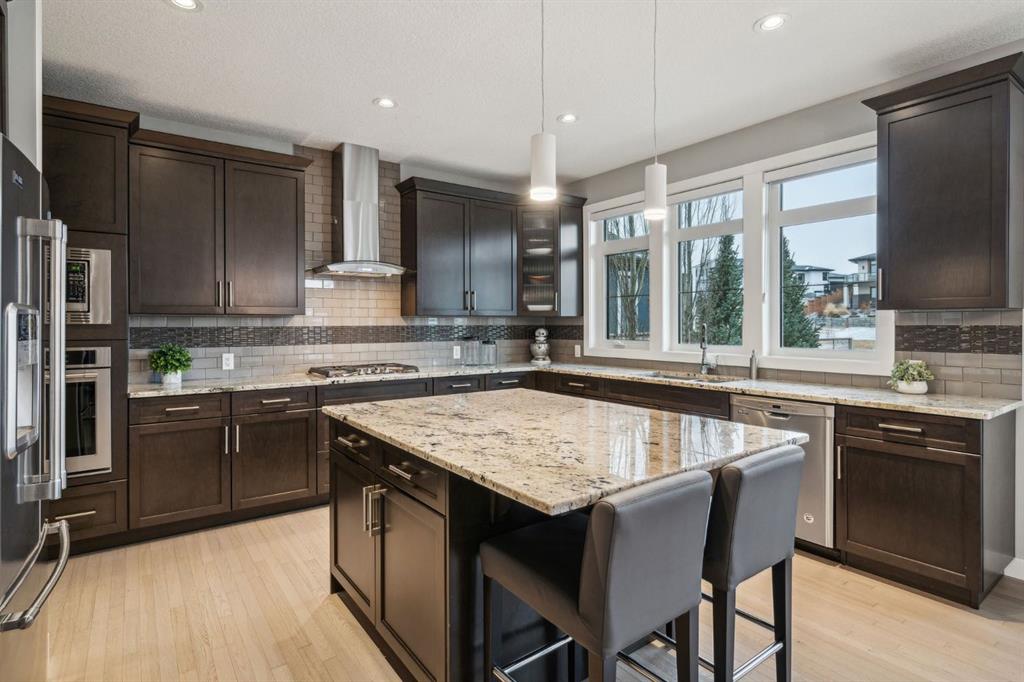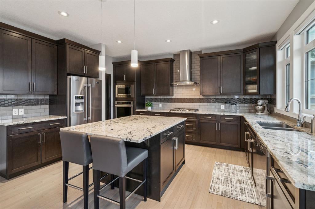 Welcome to your GORGEOUS family home located in the very sought after community of Harmony where life and play are aligned! Featuring the best layout for a growing family, a huge lot backing onto GREEN SPACE, walking path- with a well-appointed 5 bedrooms, office, BONUS ROOM and MASSIVE YARD! From the moment you enter you notice the gleaming custom hardwood floors with spacious, grand foyer. Off the front is a very expansive office for a functional work space. The well designed, open- concept main floor has full windows on the back of the house and a SOUTH BACK yard exposure – giving you natural light all day! The living room has a gas fireplace with custom surround and opens to the dining area and back door. From there you can head outside to your DREAM YARD and never ending outdoor space that is every homeowner’s fantasy! Including an expansive outdoor entertaining area and colossal sprawling yard which can house a hockey rink or playtime for your whole family! This incredible back green space also opens up to continued panoramic green space that this street is known for and west unobstructed views of the Rocky Mountains which is why this street is so sought-after and one of the best places to live here. Back inside you have a huge CHEFS KITCHEN with granite countertops, shaker style cabinetry, a large island, stainless-steel appliances including a wall oven and tons of storage. The pass-through pantry makes grocery drop off easy from the garage and good mudroom with lockers for all of your family’s busy days! A 2 pc powder room completes the level. Upstairs, the thoughtful design continues with an oversized stunning primary suite – a tranquil space to relax with big windows and tons of natural light. Your spa-like en-suite has a standalone soaker tub, generous shower and dual vanity and a walk-in closet with built ins. 2 more large bedrooms on this level that have a 4pc bath in between them to share. You will also be able to enjoy movie nights or lazy days in your perfect bonus room and upper laundry. Downstairs, your basement is fully finished with 2 bedrooms and 3 pc bath and rec space for ping-pong nights or a future bar area if you so chose! Additionally, is has a living room area and gym space set up for your at home workouts. This home has a FRONT ATTACHED, double-oversized garage with tons of storage, epoxy flooring and an extended driveway. Close to Edge school and all of the amenities that Harmony has to offer for all stages of life—beaches, lake and beach club, playgrounds, Mickelson National Golf Club, LaunchPad, the Adventure Park, trails, and more. Just west outside of Calgary 5 mins, and the city-center a short 25 min commute to downtown. This is easily the best kept (well almost) secret making it easy to escape to Canmore or the mountains and offering the charm and comfort of small-town living without sacrificing urban accessibility. To be a part of Harmony is to be part of something more than just a neighborhood; a it’s a feeling of belonging.