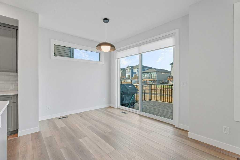 Nestled in the peaceful Northeast corner of Okotoks, Ranchers’ Rise offers an unparalleled living experience. This charming community strikes the perfect balance of tranquil family living, expansive open spaces, character-filled homes, and breathtaking natural beauty. This modern, 2024-built 2-storey detached home provides 2,600 sq. ft. of carefully designed living space, ideal for growing families. Featuring 3 spacious bedrooms, 2.5 baths, and a large bonus room, it blends practical design with luxurious finishes. The full, unfinished basement with a side entrance is a blank canvas, waiting for your personal touch—whether you envision a home gym, entertainment space, or additional living areas, the possibilities are endless. The house is equipped with a Reverse Osmosis system for pristine drinking water, a Softener installed in the basement for added convenience, and a Radon fan for peace of mind. The heart of this home is the chef’s kitchen, outfitted with high-end stainless-steel appliances, a large island, quartz countertops, sleek grey cabinetry, a built-in microwave, chimney hood fan, and abundant storage, including a walk-in pantry. The tiled backsplash and breakfast bar with deep under-counter mounted double sinks provide both functionality and style—perfect for cooking and entertaining. The open-concept main floor features soaring 9-foot ceilings and warm vinyl flooring throughout. Expansive windows flood the living space with natural light, creating a bright and welcoming atmosphere. The living room, complete with a cozy electric fireplace, offers a perfect spot to unwind. The dining area seamlessly opens to the deck and a very large backyard—roughly twice the size of the average backyard in Okotoks—offering plenty of space for outdoor enjoyment. The backyard also backs onto a walking path that connects to Okotoks’ path system and is just minutes away from a newly developed plaza and playground, providing even more convenience and recreational opportunities. Upstairs, the primary bedroom is a tranquil retreat, complete with a luxurious 5-piece walk-through ensuite, featuring dual sinks, a deep soaker tub, a walk-in shower with tiled walls, and a spacious walk-in closet. Two additional generously sized bedrooms, each with its own walk-in closet, share a stylish 4-piece bath. The upper-level laundry room adds extra convenience, making household chores a breeze. This home is more than just a space—it’s a lifestyle, thoughtfully crafted to suit your needs and enhance your daily life.