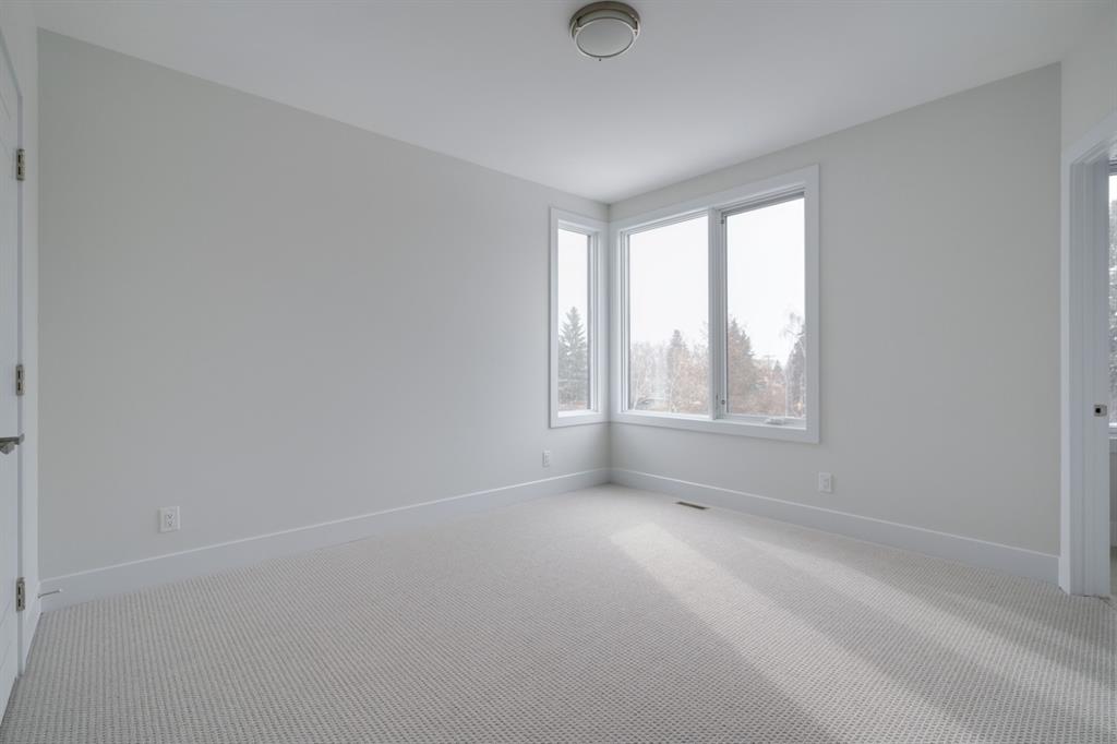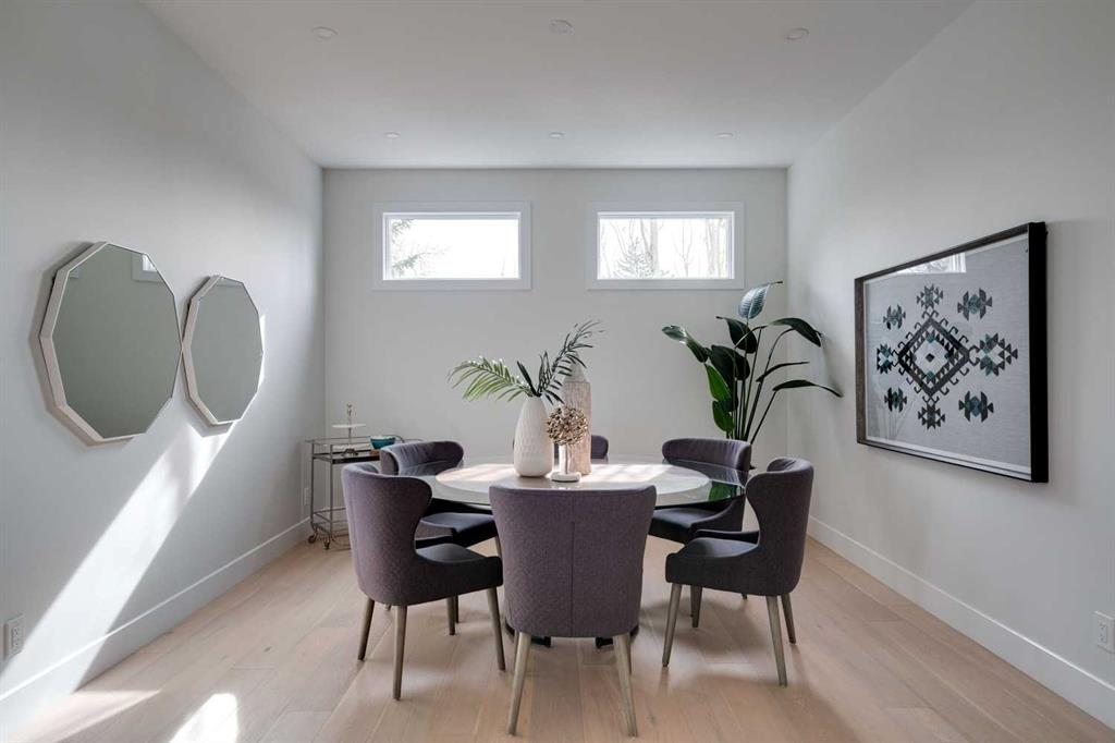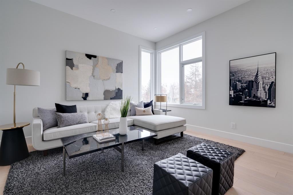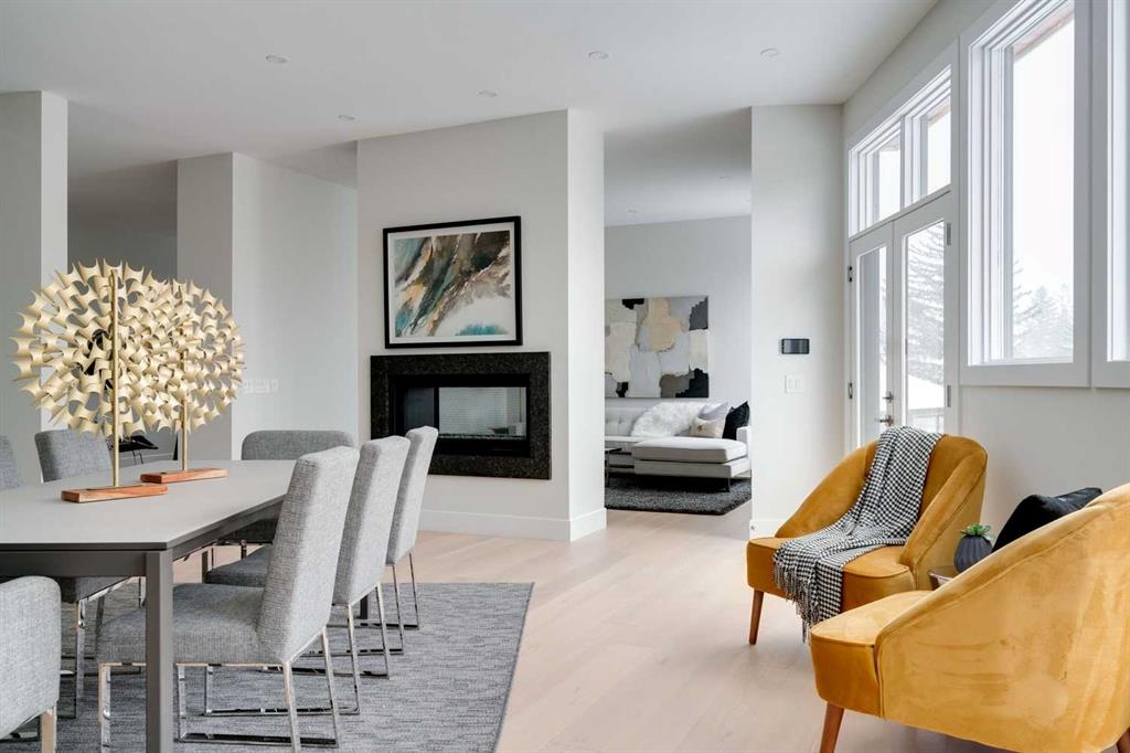 Built in 2020, this striking contemporary home offers 4,567 sq. ft. of thoughtfully designed living space, blending refined minimalist architecture with sophisticated modern finishes. Inspired by a relaxed, Californian sensibility, the home seamlessly balances everyday family living with stylish entertaining. Upon entry, a dramatic floating glass staircase makes an immediate architectural statement. The formal living room is both spacious and inviting, easily accommodating a grand piano while maintaining an intimate feel. The adjacent dining room is ideal for hosting large family gatherings or elegant dinner parties. At the rear of the home, a stunning wall of windows spans the family room, casual dining area, and sleek kitchen, flooding the space with natural light and creating a seamless sense of openness. A double-sided fireplace subtly defines the living zones while preserving a connected flow. The kitchen features a striking mix of high-gloss and warm wood cabinetry, a generous island designed for gathering, and a well-planned pantry offering excellent storage. Step directly from the kitchen onto a tiered deck and into the sunny, south-facing backyard, a private outdoor space ready for your personal vision. A versatile flex room off the kitchen is perfect for a home office, playroom, or cozy lounge. Upstairs, the expansive primary suite is a true retreat, complete with a luxurious ensuite, an impressive walk-in closet, and a that connects to an office or a room you can develop into a second closet. Three additional bedrooms, each with its own ensuite, provide exceptional comfort and privacy. The lower level includes a bright recreation room, a fifth bedroom, and a functional mudroom ideal for busy family life. Additional highlights include air conditioning, a heated driveway and an exceptional four-car garage. With generous proportions, contemporary design, and outstanding potential to personalize, this modern luxury home is ideally located in one of the city’s most sought-after neighbourhoods.