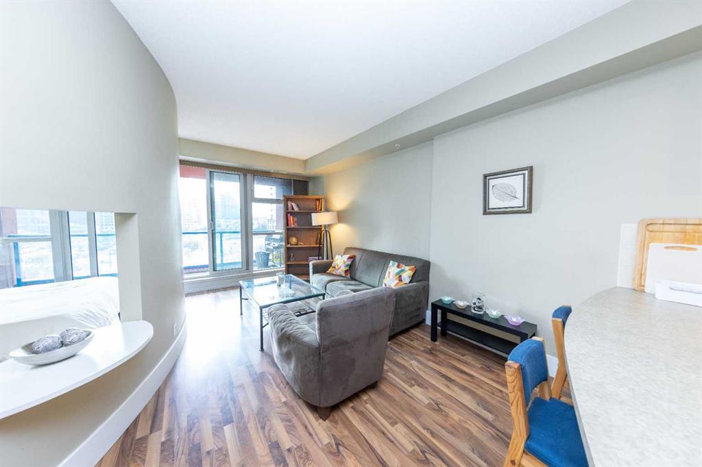 Turn-Key Downtown Living for $259,900. Looking for a bright, welcoming place right in the middle of it all? This sunny, west-facing one-bedroom condo in Eau Claire checks every box. With over 600 square feet of open-concept living, it feels larger than it is thanks to an abundance of natural light and a smart, functional layout. Enjoy a large west-facing balcony perfect for soaking up the evening sun, a versatile eating nook/den that can double as an office or reading space, and a kitchen with an eat-up bar that makes entertaining easy. You’ll also appreciate in-suite laundry, 9′ ceilings, air conditioning, titled underground parking, and unique architectural touches that give the home extra character. Step outside and you’re on the Bow River pathway system, steps from Prince’s Island Park and surrounded by downtown Calgary’s restaurants, shops, and amenities. All of this for $259,900—and if you’re thinking investment, this is perfect for executive rentals. Close to the larger companies downtown, plus furniture and household items are negotiable, making it a true walk-in, turn-key opportunity.