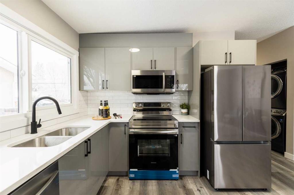 Located in Huntington Hills, this side-by-side full duplex at 710 & 712 72 Avenue NW with newly renovated legal basement suites. Located 15 minutes from downtown with quick access to Deerfoot Trail, airport, local shops, schools, restaurants & major transit station. Both main floors bosting 1032.32 sq ft with 3 bedrooms and 1.5 bathrooms, an expansive open concept floor plan with all NEW windows, recessed lighting and modern finishes. The kitchen is outfitted with full-height gloss-finished cabinets, quartz countertops and stainless-steel appliances with OTR microwave & stacked washer/dryer. The living room has large bay windows. Legal Basements: Comes with separate entry with kitchen, living and dining space. Kitchen has gloss finished cabinets, quartz countertop with stainless-steel appliances. 2 bedrooms shares 4 pc bath. Independent laundry. Renovated with soundproof ceiling. 4 furnaces 1 for each unit with independent thermostat.