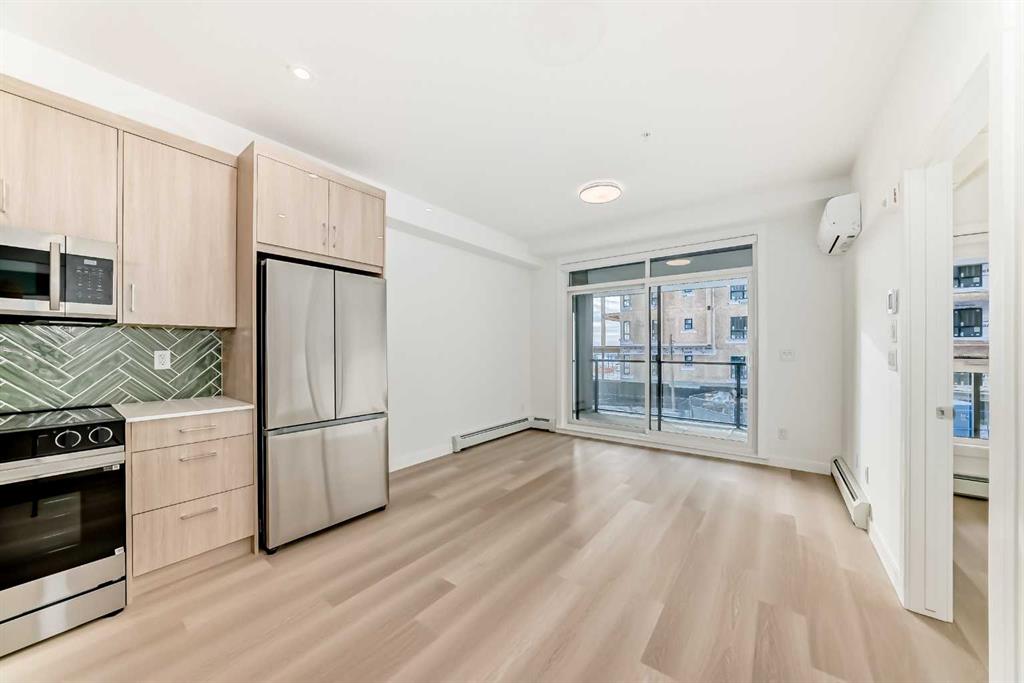 Welcome to the Curnoe 2 by Logel Homes—a well-designed unit featuring full-height cabinet fronts, quartz countertops, luxury vinyl plank flooring throughout, and tile in the bathroom. The upgraded kitchen includes a modern backsplash, a premium sink and faucet, and comes with stainless steel appliances. Enjoy year-round comfort with air conditioning, plus the convenience of an in-suite washer and dryer. Nine-foot ceilings and large windows provide plenty of natural light. This home includes a titled underground parking stall and is backed by the Alberta New Home Warranty. Located close to shopping, public transit, and major routes like Deerfoot and Stoney Trail, it offers easy access across the city. With affordable condominium fees, this is a great opportunity to own a well-appointed home in a convenient location.