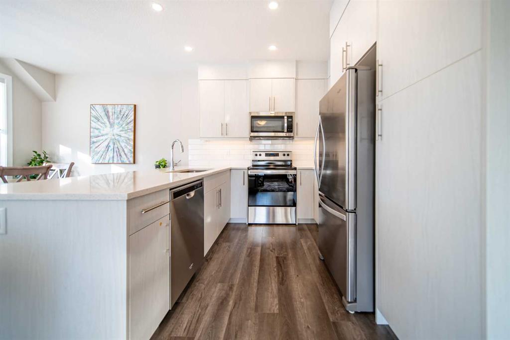 Discover this stunning 3-storey corner townhome in Calgary’s desirable Crestmont community, offering exceptional space, modern comforts, and family-friendly living right beside a kids’ park. Step into a welcoming foyer with generous storage solutions leading to the oversized double garage, perfect for vehicles, gear, and family storage. This corner position maximizes natural light through extra windows, enhancing the airy feel throughout. Upstairs, unwind in the cozy living room that flows seamlessly into a versatile office space that could also be used as a guest bedroom. Elegant dining area, and chef-inspired kitchen with a center island for quick meals on the go featuring under-cabinet lighting, ceiling height cabinets and plenty of counter space. Step out to the convenient deck space featuring a gas BBQ line and incredible views, perfect for outdoor entertaining The top floor delivers three generously sized bedrooms, highlighted by a luxurious primary suite featuring a walk-in closet and spacious 4-piece ensuite bath. The additional two bedrooms share a well-appointed full bathroom, complemented by a dedicated laundry room for ultimate family convenience. Added upgrades include air conditioning, an efficient tankless hot water system, hard-wired networking connectivity throughout the home, and soaring 9-foot ceilings on every level for an elevated, modern feel. Nestled in upscale Crestmont, enjoy proximity to the Calgary Farmers’ Market, numerous child care options, walking paths, and everyday amenities like shopping at West 85th and Trinity Hills. A short commute via Highway 1 puts downtown Calgary 20 minutes away and the Rocky Mountains under an hour, perfect for active families.