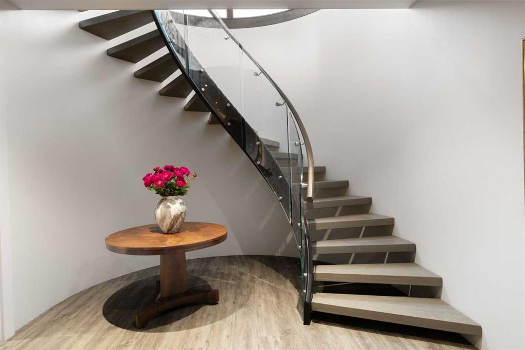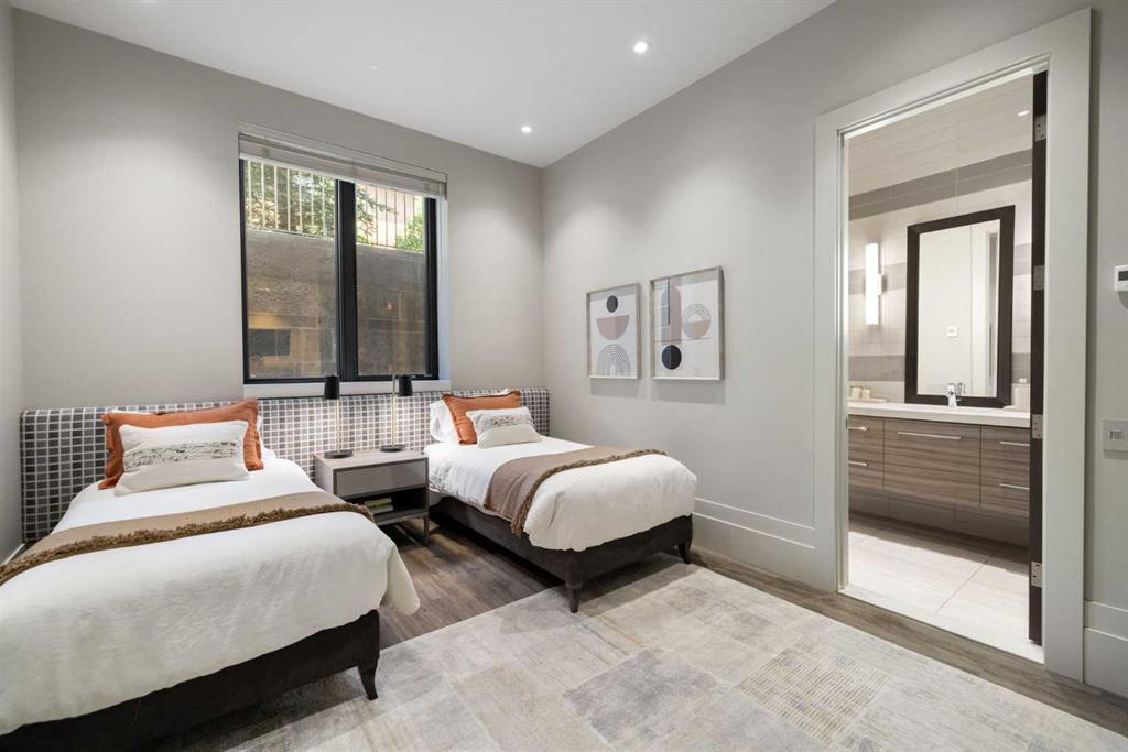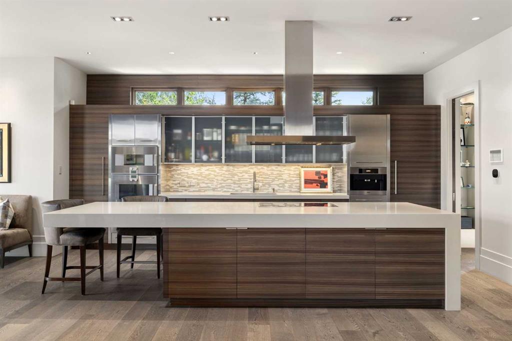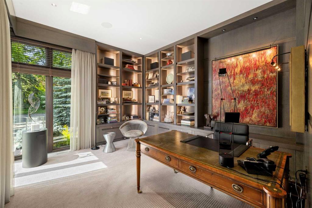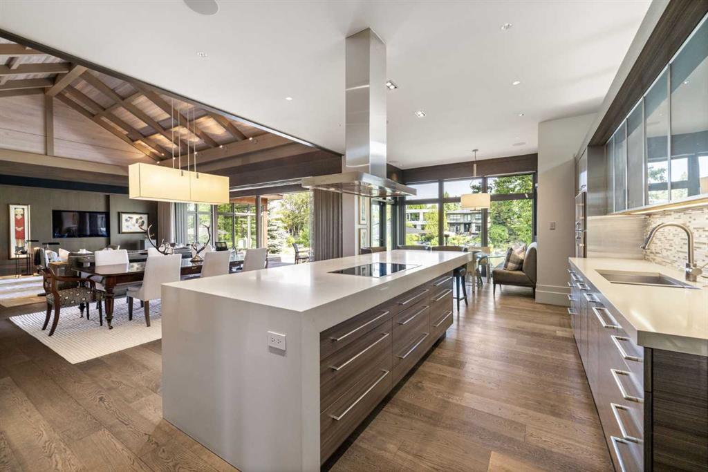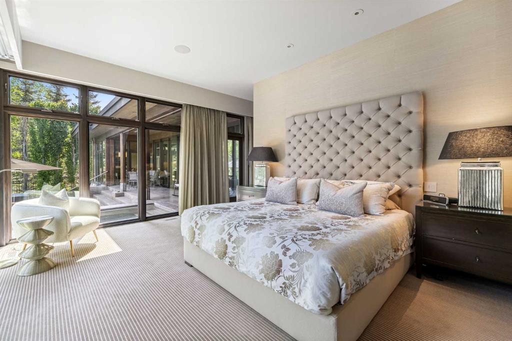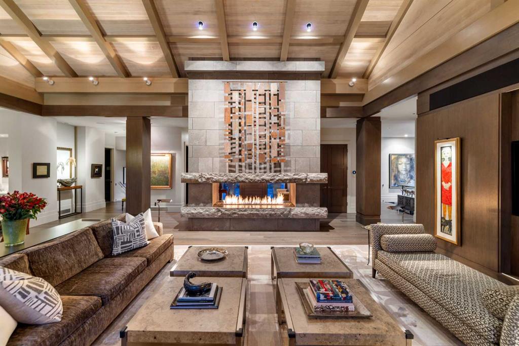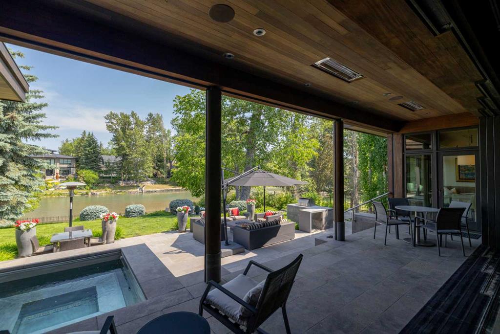 A rare offering where modern architecture & meticulous execution meet on one of Elbow Park’s most prized riverfront lots. Situated on a coveted tree-lined street steps from river pathways, parks, top schools, vibrant restaurants & the downtown core, this is a once-in-a-lifetime opportunity to own one of Calgary’s most architecturally significant homes—a perfect harmony of design, craftsmanship, & location.Thoughtfully designed by award winning architect Mark Burkart and custom built by Mission Custom Homes, this extraordinary residence offers over 6,600 sq ft of refined living space. The design is quietly sophisticated, blending natural materials & light-filled spaces to create a home of remarkable beauty & comfort. The exterior, clad in warm silver-to-charcoal Saint Marc limestone, copper roofing, and Meranti hardwood soffits lends a sense of permanence and quiet strength evoking the spirit of a small modern museum. A front courtyard with a tranquil reflecting pool invites you into the home, while the rear terrace creates a serene outdoor retreat overlooking the Elbow River. Inside, elegant proportions and rich finishes create an atmosphere of understated luxury. Soaring 19′ ceilings define the great room, where a monumental limestone fireplace serves as a stunning focal point. A 30′ retractable glass wall opens entirely to a heated limestone terrace with phantom screens, infrared heaters, & built-in speakers, perfect for year-round enjoyment and effortless indoor-outdoor living. The chef’s kitchen is both functional & striking, featuring custom tigerwood cabinetry, a cantilevered 13’ Caesarstone island, and top-of-the-line Gaggenau and Miele appliances. A walk-in pantry, wet bar, & seamless flow to the dining area make the space ideal for entertaining or everyday living. The primary suite is a private riverside sanctuary with floor-to-ceiling windows, silk wall coverings, & heated marble floors. Its spa-caliber ensuite offers Bianca Carrera marble, a steam shower, a freestanding tub & a walk-in closet with custom cabinetry. Two exceptional home offices, a beautifully appointed laundry room, & an exquisite powder room complete the main floor. The lower level continues the home’s thoughtful design with a floating oak staircase, spacious family/rec room anchored by a stunning four-sided limestone fireplace, three bedrooms each with a full ensuite, a professional-grade gym, a custom wine room & a 12-foot wet bar. Radiant in-floor heating & elevator access ensure comfort & convenience on every level. Advanced mechanical and smart home systems provide comfort & security, Crestron AV, Lutron lighting, triple-pane Lowen windows, a heated driveway, Viessmann boilers, a water filtration system, & backup generator. Professionally landscaped, the outdoor living spaces include three distinct patio areas: a limestone-encased hot tub, a rundle stone firepit patio surrounded by lush perennial gardens & built-in BBQ area. More than a home, this residence is about a lifestyle.