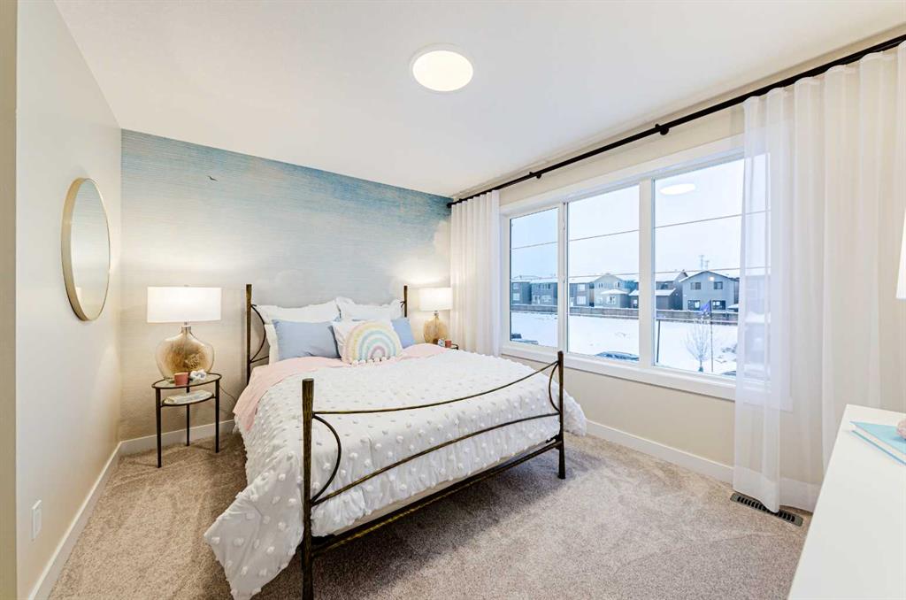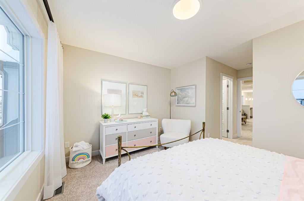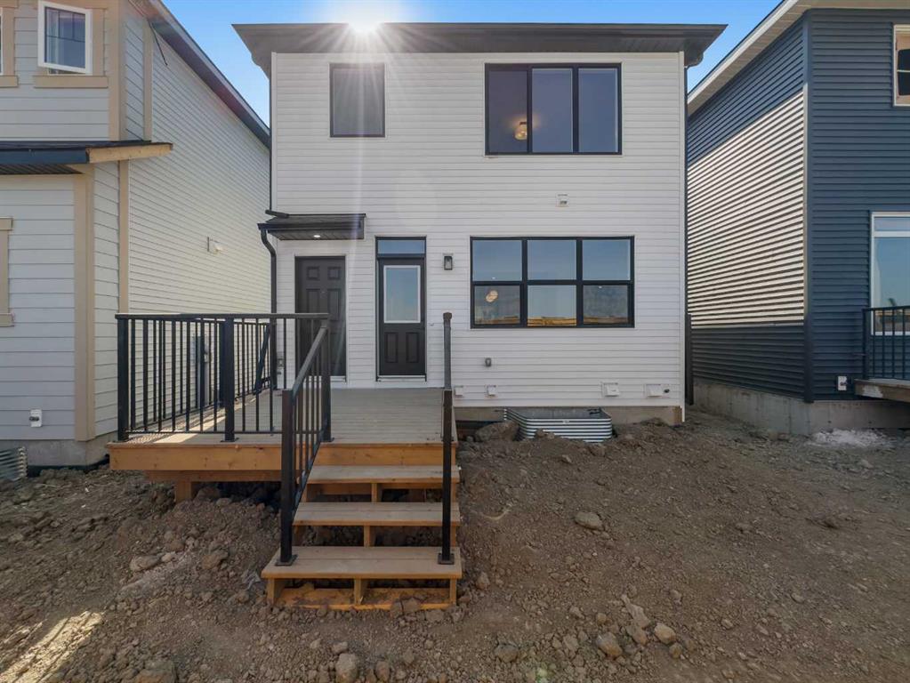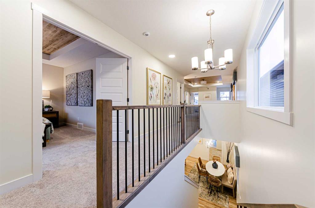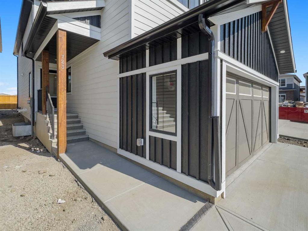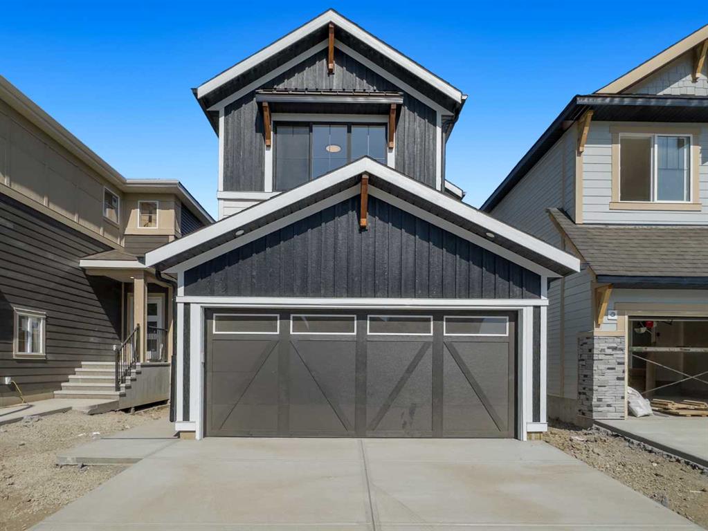 Welcome to The Delilah, an exquisite home designed and built by Genesis Homes. This stunning property offers a perfect blend of modern elegance and functional design, making it an ideal choice for families seeking comfort and style. This home boasts 2,194 SqFt throughout the main and upper levels with an unfinished basement with 9Ft ceilings and a separate entry. The main level has an abundance of living space! Starting with the multi-use flex room, great for a home office, day seating or even overnight guests. The open floor plan kitchen and great room make this an entertainer’s dream. The sparkling kitchen is outfitted with quartz countertops, ample cabinet storage, and a builder package of stainless steel appliances. The barstool seating at the kitchen island is the perfect place to enjoy small meals while the formal dining room is waiting for a large dinner table. The kitchen is paired with a walk-in pantry great for dry goods storage. The great room is exactly that; with a 50″ electric fireplace and TV ready wall above. The great room overlooks the backyard with large windows. The door off the great room leads to the back deck making indoor/outdoor living easy. The main level is complete with a 2pc bath. The interior is complemented by metal spindle railings, adding a touch of sophistication and durability to the stairways. Upstairs has plush carpet flooring throughout the 3 bedrooms and bonus room. The primary bedroom is a private oasis that opens with french doors to an expansive bedroom. The primary is paired with a walk-in closet and expanded 5pc ensuite bath. The ensuite has a deep soaking tub, walk-in shower, double vanity and private washing closet. Bedrooms 2 & 3 are sizeable and share the 4pc bath with a tub/shower combo. The upper level bonus room is a plush and comfortable space to unwind in the evenings. The upper level hall laundry area is conveniently placed near all bedrooms making this task easy. The basement of this home includes rough-ins ready for a legal secondary suite subject to approval and permitting by the city/municipality with a separate entrance, & 9Ft ceilings. Ready for August-September of 2025, its time to pack your bags! Hurry and book a showing at this gorgeous Genesis home today! **Photos are representative of the Delilah show home in Homestead. Finishes may differ**