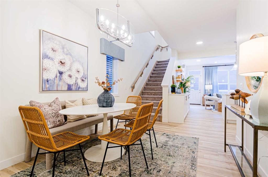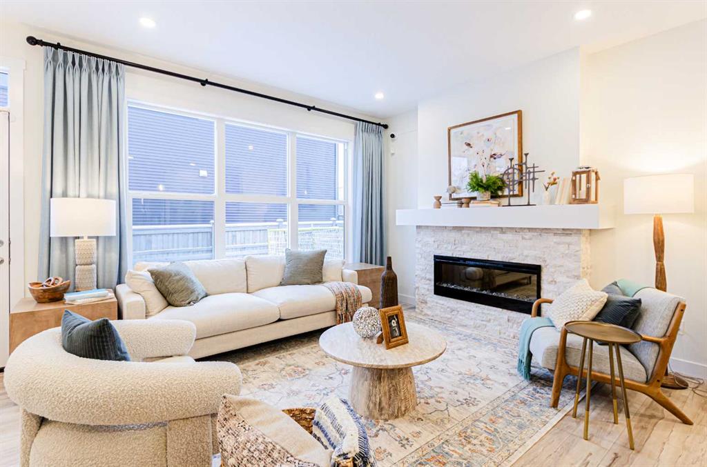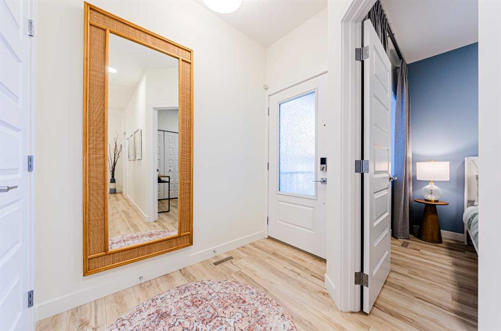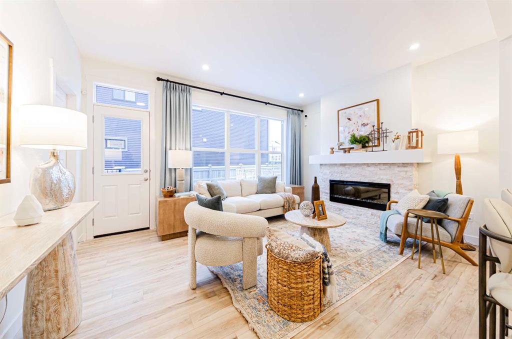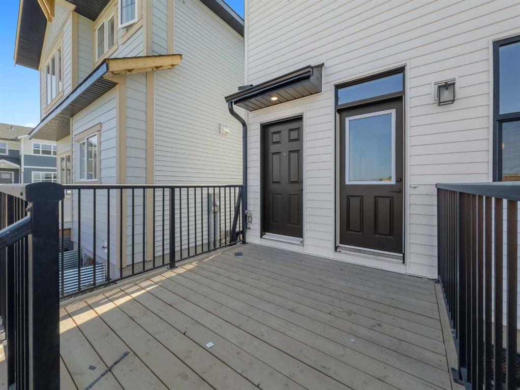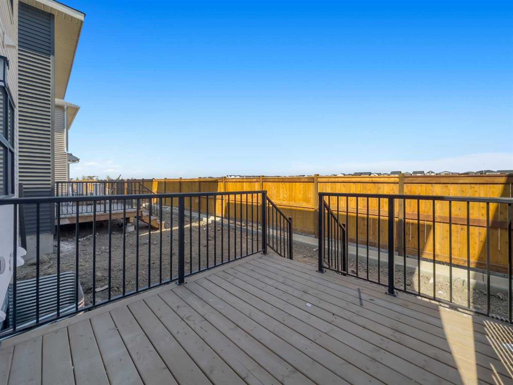 Welcome to The Delilah, an exquisite home designed and built by Genesis Homes. This stunning property offers a perfect blend of modern elegance and functional design, making it an ideal choice for families seeking comfort and style. This home boasts 2,194 SqFt throughout the main and upper levels with an unfinished basement with 9Ft ceilings and a separate entry. The main level has an abundance of living space! Starting with the multi-use flex room, great for a home office, day seating or even overnight guests. The open floor plan kitchen and great room make this an entertainer’s dream. The sparkling kitchen is outfitted with quartz countertops, ample cabinet storage, and a builder package of stainless steel appliances. The barstool seating at the kitchen island is the perfect place to enjoy small meals while the formal dining room is waiting for a large dinner table. The kitchen is paired with a walk-in pantry great for dry goods storage. The great room is exactly that; with a 50″ electric fireplace and TV ready wall above. The great room overlooks the backyard with large windows. The door off the great room leads to the back deck making indoor/outdoor living easy. The main level is complete with a 2pc bath. The interior is complemented by metal spindle railings, adding a touch of sophistication and durability to the stairways. Upstairs has plush carpet flooring throughout the 3 bedrooms and bonus room. The primary bedroom is a private oasis that opens with french doors to an expansive bedroom. The primary is paired with a walk-in closet and expanded 5pc ensuite bath. The ensuite has a deep soaking tub, walk-in shower, double vanity and private washing closet. Bedrooms 2 & 3 are sizeable and share the 4pc bath with a tub/shower combo. The upper level bonus room is a plush and comfortable space to unwind in the evenings. The upper level hall laundry area is conveniently placed near all bedrooms making this task easy. The basement of this home includes rough-ins ready for a legal secondary suite subject to approval and permitting by the city/municipality with a separate entrance, & 9Ft ceilings. Ready for August-September of 2025, its time to pack your bags! Hurry and book a showing at this gorgeous Genesis home today! **Photos are representative of the Delilah show home in Homestead. Finishes may differ**