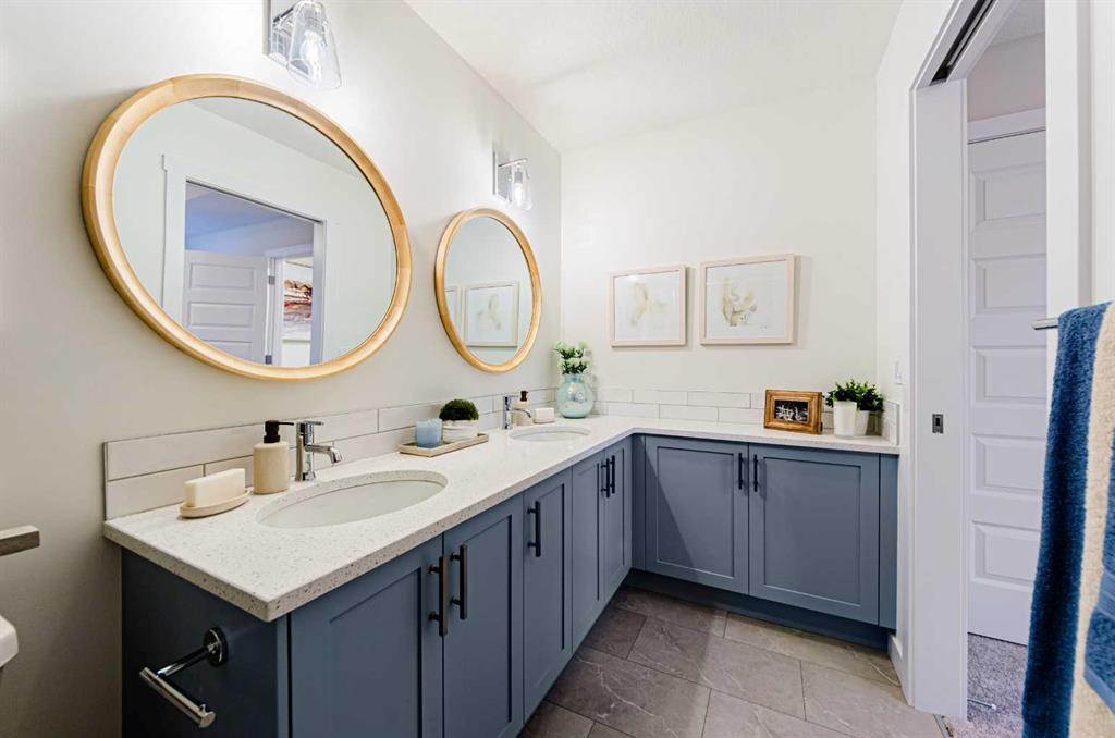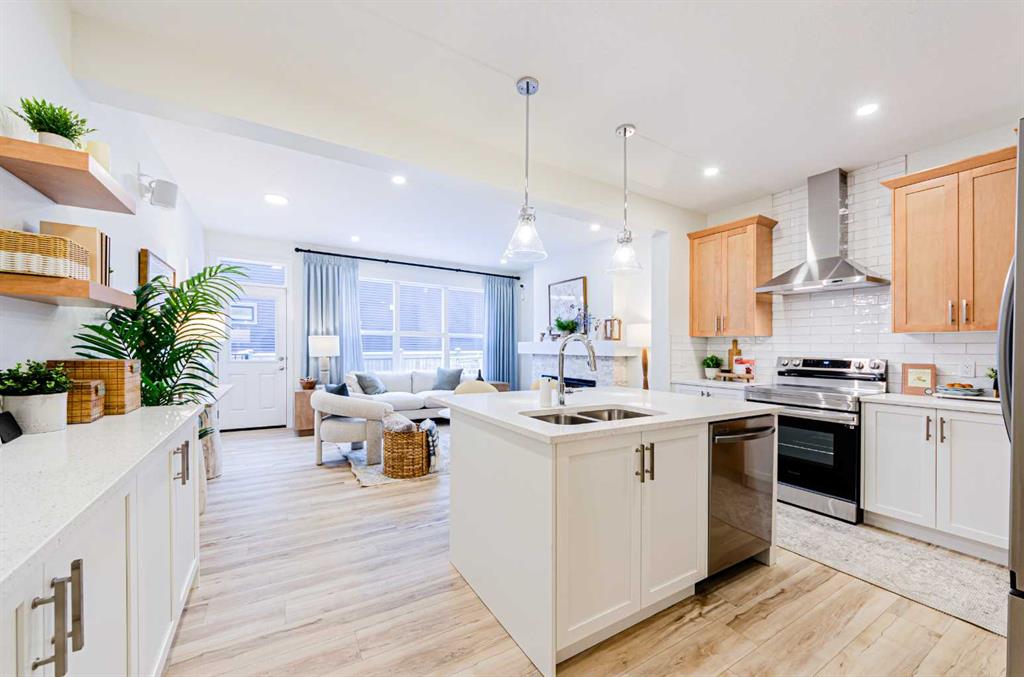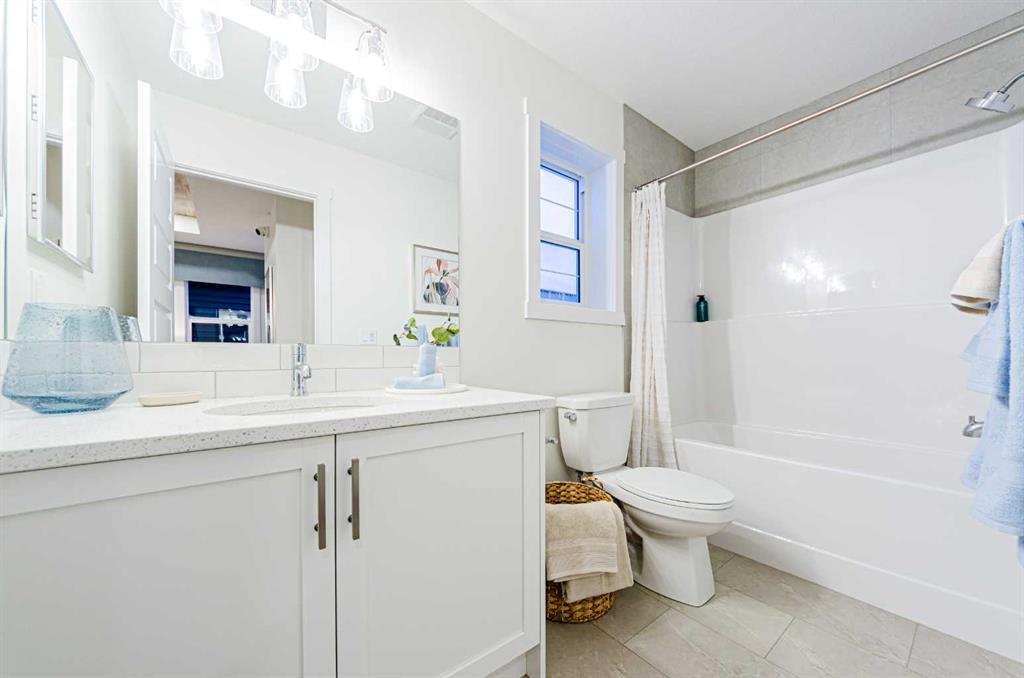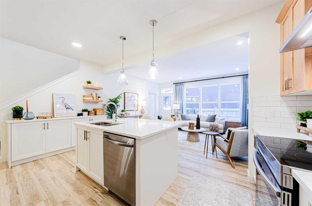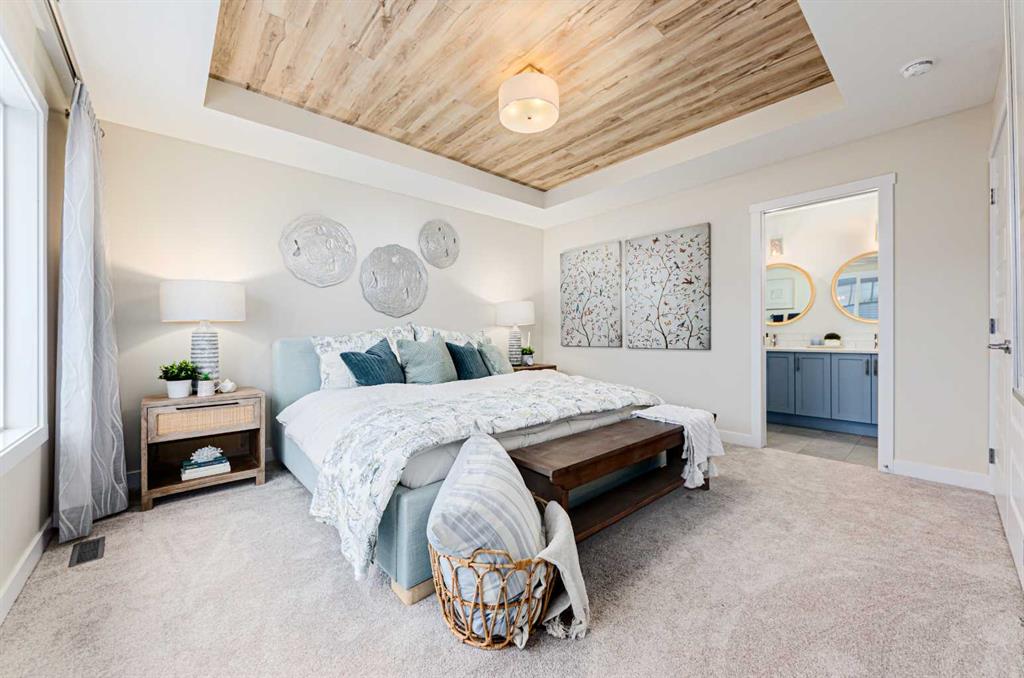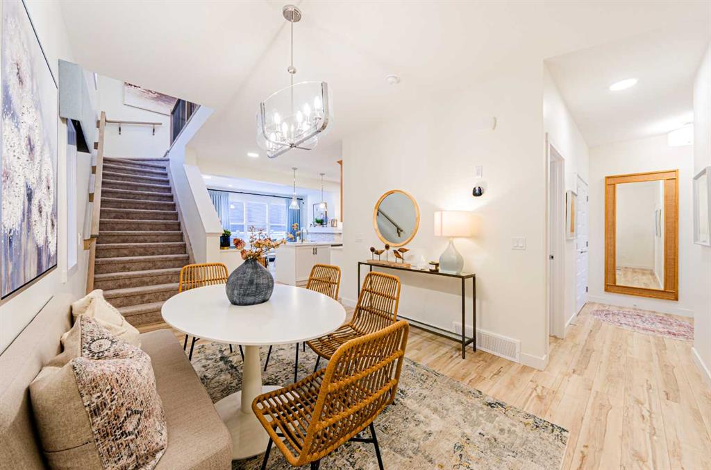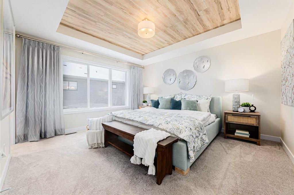 Welcome to The Delilah, an exquisite home designed and built by Genesis Homes. This stunning property offers a perfect blend of modern elegance and functional design, making it an ideal choice for families seeking comfort and style. This home boasts 2,194 SqFt throughout the main and upper levels with an unfinished basement with 9Ft ceilings and a separate entry. The main level has an abundance of living space! Starting with the multi-use flex room, great for a home office, day seating or even overnight guests. The open floor plan kitchen and great room make this an entertainer’s dream. The sparkling kitchen is outfitted with quartz countertops, ample cabinet storage, and a builder package of stainless steel appliances. The barstool seating at the kitchen island is the perfect place to enjoy small meals while the formal dining room is waiting for a large dinner table. The kitchen is paired with a walk-in pantry great for dry goods storage. The great room is exactly that; with a 50″ electric fireplace and TV ready wall above. The great room overlooks the backyard with large windows. The door off the great room leads to the back deck making indoor/outdoor living easy. The main level is complete with a 2pc bath. The interior is complemented by metal spindle railings, adding a touch of sophistication and durability to the stairways. Upstairs has plush carpet flooring throughout the 3 bedrooms and bonus room. The primary bedroom is a private oasis that opens with french doors to an expansive bedroom. The primary is paired with a walk-in closet and expanded 5pc ensuite bath. The ensuite has a deep soaking tub, walk-in shower, double vanity and private washing closet. Bedrooms 2 & 3 are sizeable and share the 4pc bath with a tub/shower combo. The upper level bonus room is a plush and comfortable space to unwind in the evenings. The upper level hall laundry area is conveniently placed near all bedrooms making this task easy. The basement of this home includes rough-ins ready for a legal secondary suite subject to approval and permitting by the city/municipality with a separate entrance, & 9Ft ceilings. Ready for August-September of 2025, its time to pack your bags! Hurry and book a showing at this gorgeous Genesis home today! **Photos are representative of the Delilah show home in Homestead. Finishes may differ**