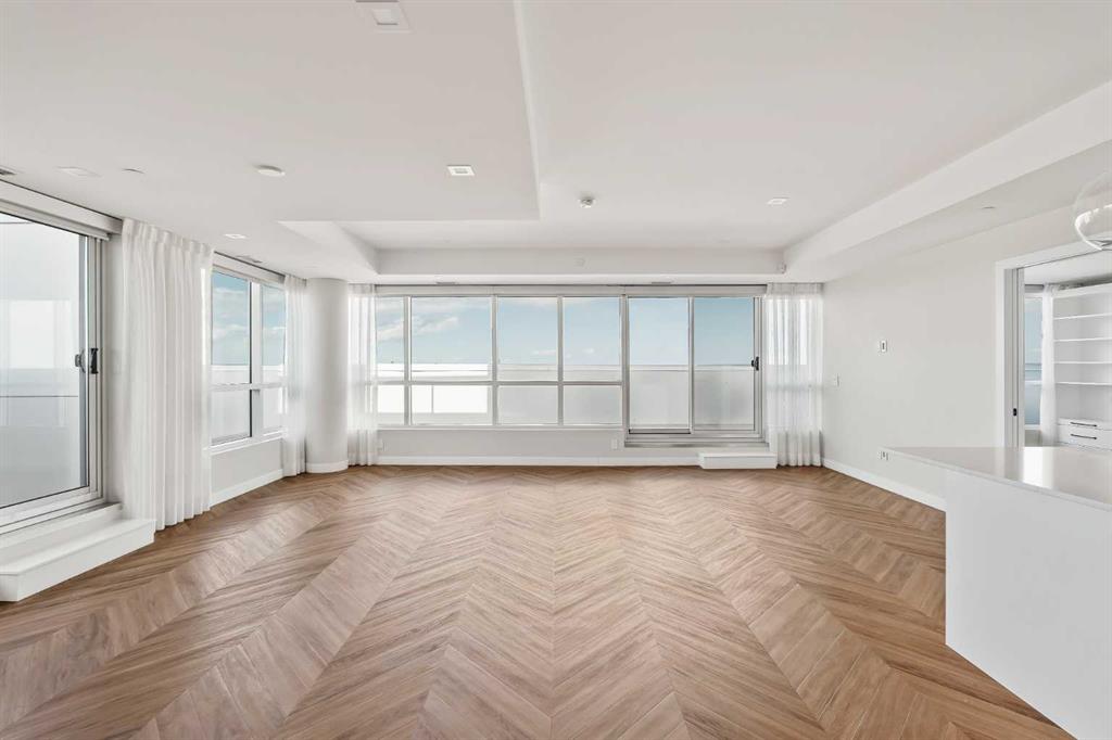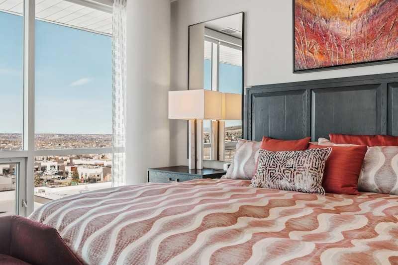 Proudly presenting Suite 717, the most coveted West facing corner penthouse in the prestigious Gateway buildings. This extraordinary home offers stunning panoramic mountain views, evening sunsets, impeccable custom upgrades, and a lifestyle of sophistication and comfort. Thoughtfully designed, the home features electric blackout blinds on all windows, a high-end security system with burglar-proof locks, and a versatile main floor with a custom Murphy bed, built-in office, two separate office spaces, refined window treatments, a customized laundry room, and comfort-raised toilets. The gourmet kitchen is a true showpiece, boasting a single bowl sink, garburator, oversized globe pendant lights, dimmable lighting, and upgraded pull out waste bins. Additional luxuries include two premium parking stalls directly outside of the elevator, two storage lockers, accessibility features throughout, and a bonus spacious in suite storage area under the stairs. This penthouse also comes with air conditioning, chevron flooring, quartz countertops, LED square pot lights, solid core doors, soft close drawers, and a gas line on the patio. Built in 2019 with concrete construction and exceptional soundproofing, this boutique style building is unlike anything else in the city. Residents enjoy access to a rooftop patio, stylish residents’ lounge, concierge service, visitor parking, EV chargers, and secure bike storage. Located in the Trendy West District this property is steps from Sobeys, Big T’s BBQ, UNA Pizza, Deville Coffee, F45 Gym, Hankki, YYC Cycle, and more, with quick access to Old Banff Coach Road, Stoney Trail, and nearby mountain escapes. The fast growing West District will soon offer over 1 million square feet of retail and commercial space, designed for a walkable lifestyle with 20-ft sidewalks and bike paths. Just 15 minutes from downtown, 5 minutes to Winsport, and 60 minutes to the Rockies, Suite 717 offers unmatched urban convenience with a breathtaking natural backdrop. Book your showing today!
