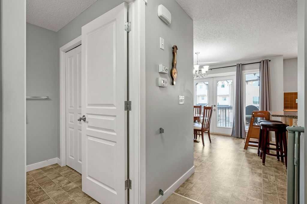 You pull into your double attached garage, the day winding down as you step inside and leave the world at the door. Upstairs, the heart of the home is waiting—sunlight pouring into the south-facing kitchen, warming the space and making it feel instantly welcoming. There’s room to spread out here, whether you’re prepping dinner with ease thanks to generous counter and cabinet space, or gathering around the central island. Just off the kitchen, the balcony calls for an easy summer BBQ, doors open to let the evening air drift in.