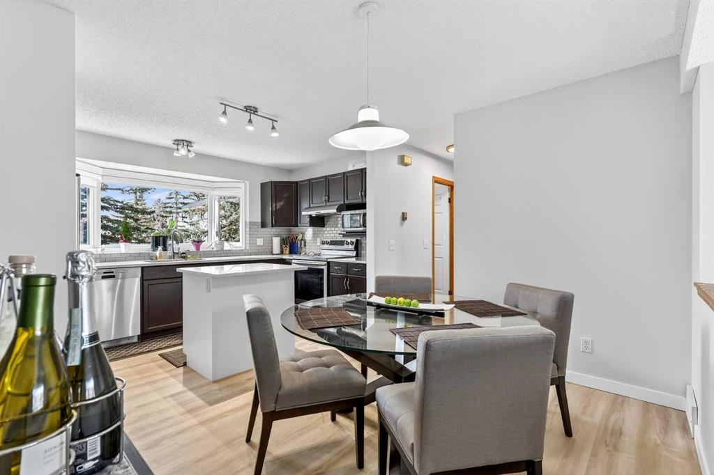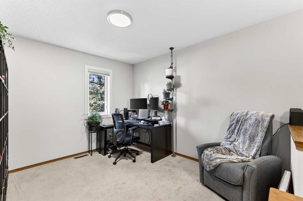 This townhome is perfectly situated just steps from St. Gregory School and Optimist Athletic Park, and only minutes from Signal Hill Centre, offering an exceptional and convenient location. The lower living area features new luxury vinyl plank flooring, high ceilings, and abundant natural light, creating a bright and welcoming atmosphere. The adjoining deck provides an inviting outdoor retreat, ideal for relaxing or entertaining. The window in the lower living area is equipped with remote-controlled window coverings for added convenience. The kitchen continues with the same new vinyl plank flooring and offers quartz countertops, stainless steel appliances, ample counter and cabinet space, and a large west-facing bay window, also fitted with remote-controlled coverings. A conveniently located powder room completes the main level.Upstairs, the home features a spacious primary bedroom with a walk-in closet, a second bedroom, a full 4-piece bathroom, and a versatile loft or flex space perfect for a home office, reading nook, workout area, or additional living space. The basement adds even more functionality with an additional room that includes a washer and dryer and is ideal for a private office, hobby space, or extra flex area. Recent updates include the removal of Poly-B plumbing, fresh paint in 2023, new triple-pane windows in 2025, a 40-gallon hot water tank replaced in 2018 with a 10-year warranty, and a roof replacement in 2012. An attached garage provides secure parking and added convenience. Ideally located close to schools, parks, shopping, transit, and major routes, this Glenbrook townhome offers outstanding value for first-time buyers, professionals, or anyone looking to downsize without sacrificing space or location.