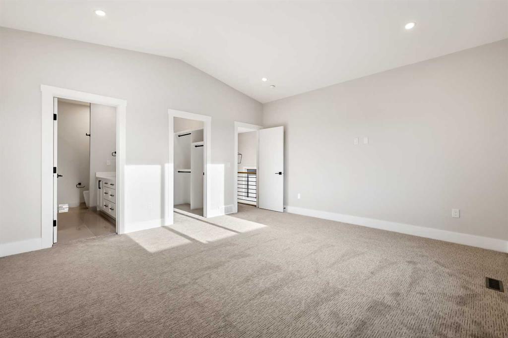 Perched on a ridge with mountain views and backing onto a serene Environmental Reserve, this walkout home defines luxury living. Located in the sought-after community of West hawk, this 3-bedroom, 2.5-bathroom residence offers over 2,300 sq. ft. of thoughtfully designed living space. The main floor boasts an open-concept layout with soaring open-to-above ceilings in the living room, a cozy Gas fireplace with a unique design, and a dedicated home office. The chef’s kitchen has custom soft-close cabinetry with hidden cabinet doors behind the island, quartz countertops, Samsung stainless steel appliances, a walkthrough pantry, and under-cabinet lighting. A mudroom adds extra convenience for busy households. Upstairs, the master retreat offers breathtaking mountain views, an elegant walk-in closet, and a spa-like ensuite with dual sinks, a 10mm glass shower door, a luxurious soaker tub, upgraded mirrors, and imported tiles. The bonus room provides additional space for entertainment or relaxation, while a laundry room adds everyday ease. Additional highlights include: 8 ft doors on the main floor, Custom built-in closets, Durable engineered hardwood flooring, 9 ft ceilings on the main & second floor, upgraded carpets, lighting, and plumbing fixtures, Double-car garage. The walkout basement is ready for your personal touch, offering endless possibilities for customization. Living in West hawk means easy access to parks, Future Dog park, bike paths, shopping, and a quick drive to the mountains. Plus, this home comes with a Certified New Home Warranty for peace of mind. Don’t miss this rare opportunity—schedule your private viewing today!