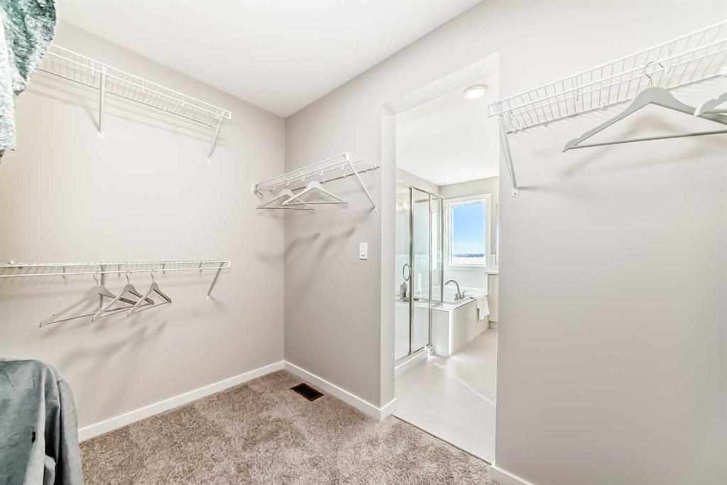 Upstairs, the square footage is spent where it matters. The bonus room is large enough to absorb noise and activity, not just decorate a floorplan. FRENCH DOORS lead into the primary bedroom, where the ensuite is properly scaled: DUAL SINKS, TILED SHOWER, AND SOAKER TUB arranged with intention. Both secondary bedrooms include walk-in closets, and the upper laundry—with folding counter—keeps daily routines contained to one level.