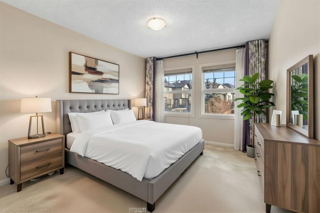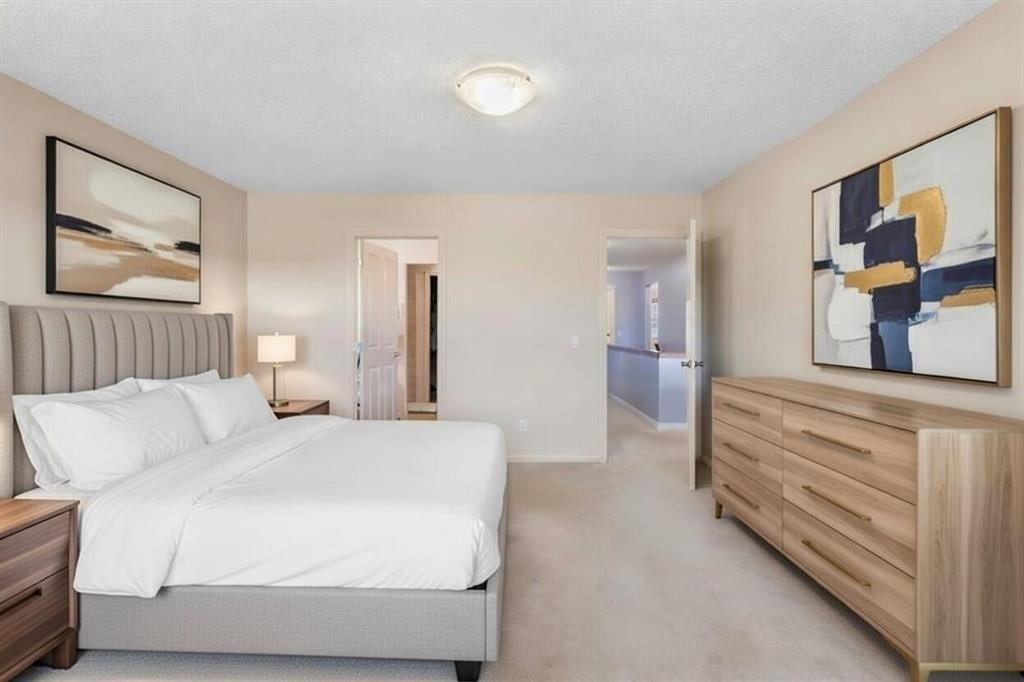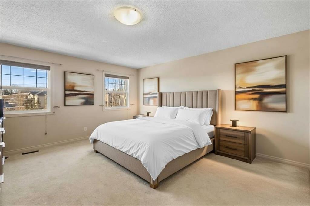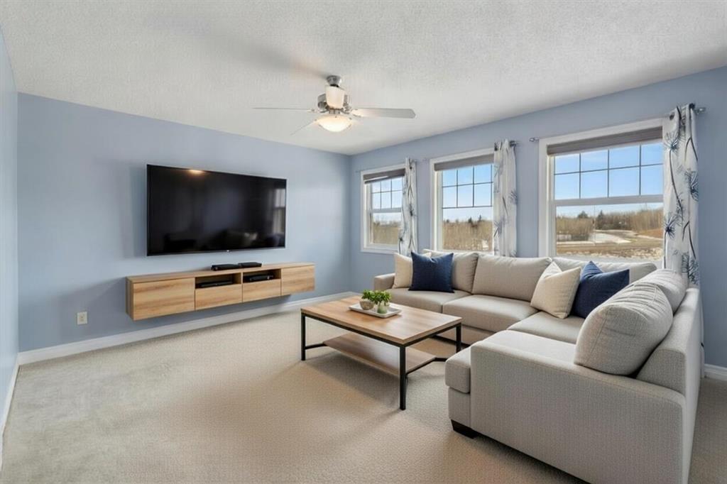 Impressive two-storey walkout home offering 2,484 sq ft, backing west onto natural green space with stunning mountain views. The upper level features four spacious bedrooms, including a generous primary retreat with walk-in closet and a large ensuite complete with double sinks, a jetted soaker tub, and a separate shower, along with a bright bonus room ideal for family living.