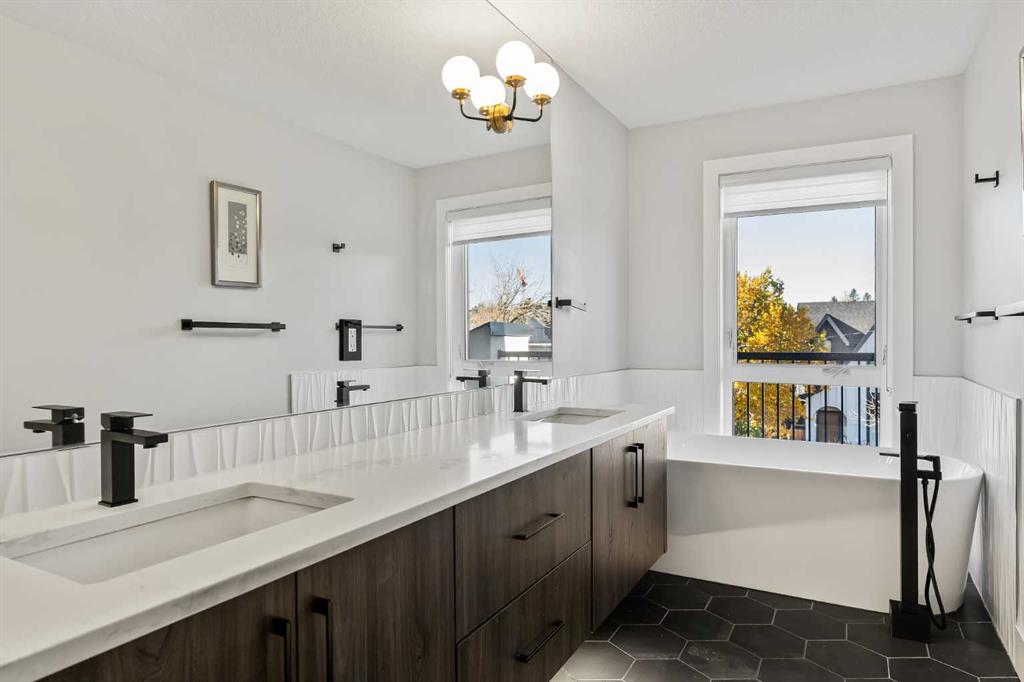 Proudly presenting 720 -15 St. NW. Wonderfully situated in the coveted community of Hillhurst, this 3,800 plus SF custom home presents like new while delivering an impressive list of upscale features including 5 bedrooms (2 primary bedrooms with ensuites), 5 bathrooms (2 steam showers), 2 laundry rooms, 2 fireplaces, a stunning open staircase & ELEVATOR! The bright main floor boasts a designer kitchen with extended cabinetry & pull-out pantry, stainless steel appliances with induction cooktop, beverage fridge, quartz countertops & a vast island with seating for 4. An oversized dining area easily accommodates large gatherings while the stylish living room with fireplace and glass doors opens seamlessly to the backyard. A chic powder room & practical mudroom with built-in storage complete this level. Upstairs, the striking open-riser staircase with glass panels leads to two full floors of hardwood-accented luxury living. The 2nd level is ideal for families offering two spacious secondary bedrooms with closet organizers & a beautifully upgraded 4-piece bath with heated floors. The 1st primary suite shares this level & is an excellent option for parents with young children. Featuring oversized windows, a custom walk-in closet & a spa-inspired ensuite with dual sink quartz vanity, freestanding tub, steam shower, & heated floors. A well-equipped laundry room with sink, quartz folding counter, & cabinetry adds convenience to this level. The 3rd floor is dedicated to refined living, highlighting a 2nd primary retreat with walk-in closet, lavish ensuite (dual quartz vanity, freestanding tub, steam shower, heated floors) & access to a sun-drenched private balcony overlooking the treetops. A spacious owner’s lounge with wet bar provides the perfect setting to relax, work from home, or enjoy quiet evenings. Completing this floor is a 2nd laundry room. The lower level brings family & friends together in a cozy family room with fireplace & a full wet bar with beverage fridge. A large 5th bedroom & 5th bathroom with heated floors round off this comfortable space. Other notable upgrades in this executive residence include a double insulated & drywalled garage with unique front & back doors allowing for additional parking, air conditioning, in-floor heating in ALL bathrooms, an elevator to age-in-place or accommodate multi-generational living, custom built-ins in ALL closet, a 75-gallon hot water tank, 200-amp electrical panel, built-in ceiling speakers & security system. Nestled just steps to parks, trendy restaurants, & the vibrant Kensington district, this luxury property offers a perfect balance of tranquillity & urban convenience. Its proximity to the Bow River, downtown, University of Calgary, SAIT & Foothills Hospital provides a remarkable location for work & play. With easy access to Memorial Drive & Crowchild Trail, this is a rare opportunity to own a magnificent property in one of Calgary’s most desirable neighbourhoods.