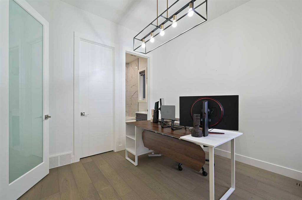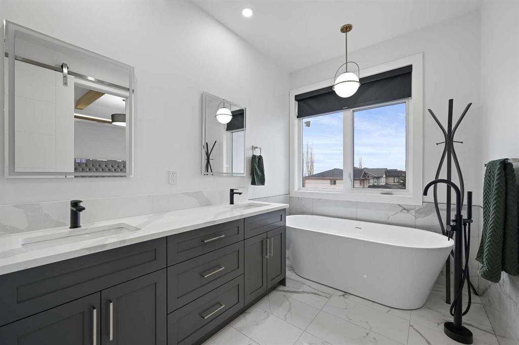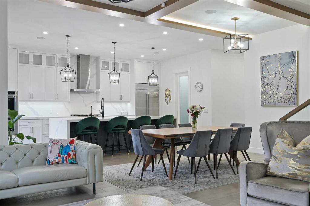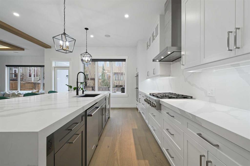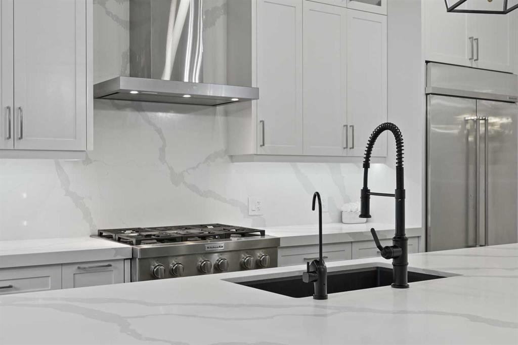 Welcome to 7250 Elkton Drive SW, a stunning estate home offering over 4,500 SQFT of beautifully developed living space in the prestigious community of Springbank Hill. From the moment you step inside, you’ll be captivated by the home’s stature, warmth & elegant design, where a sprawling yet intimate floor plan perfectly balances grand entertaining and cozy family living. The main floor features a bright living room, spacious home office or guest suite. The heart of the home is the magazine-worthy chef’s kitchen, boasting a dramatic oversized quartz apron island, high-end appliances, a generous walk-in pantry, and an open layout that flows seamlessly into the dining and living areas, where guests can gather around the stunning floor-to-ceiling tiled fireplace. Step outside to the expansive rear deck and let the kids play under the shade of a majestic historic tree. Upstairs, the luxurious Primary Suite offers a private retreat with its own sitting area and access to a front patio with city views, plus a spa-like ensuite featuring a standalone glass shower, tear-drop soaker tub, and a fashion-lover’s dream walk-in closet. The second bedroom enjoys its own private ensuite, while the third and fourth bedrooms share a convenient Jack-and-Jill bathroom, with upper laundry completing the level. The fully finished basement extends the living space with a sleek wet bar, custom built-ins, and two additional bedrooms, perfect for extended family or guests. A triple garage with epoxy floors, an EV charger, and private entrances from both the garage and side patio add incredible convenience. With central A/C and situated minutes from top schools, shopping, fine dining, and recreation, this home is the perfect blend of luxury, functionality and timeless charm – your dream oasis awaits!
