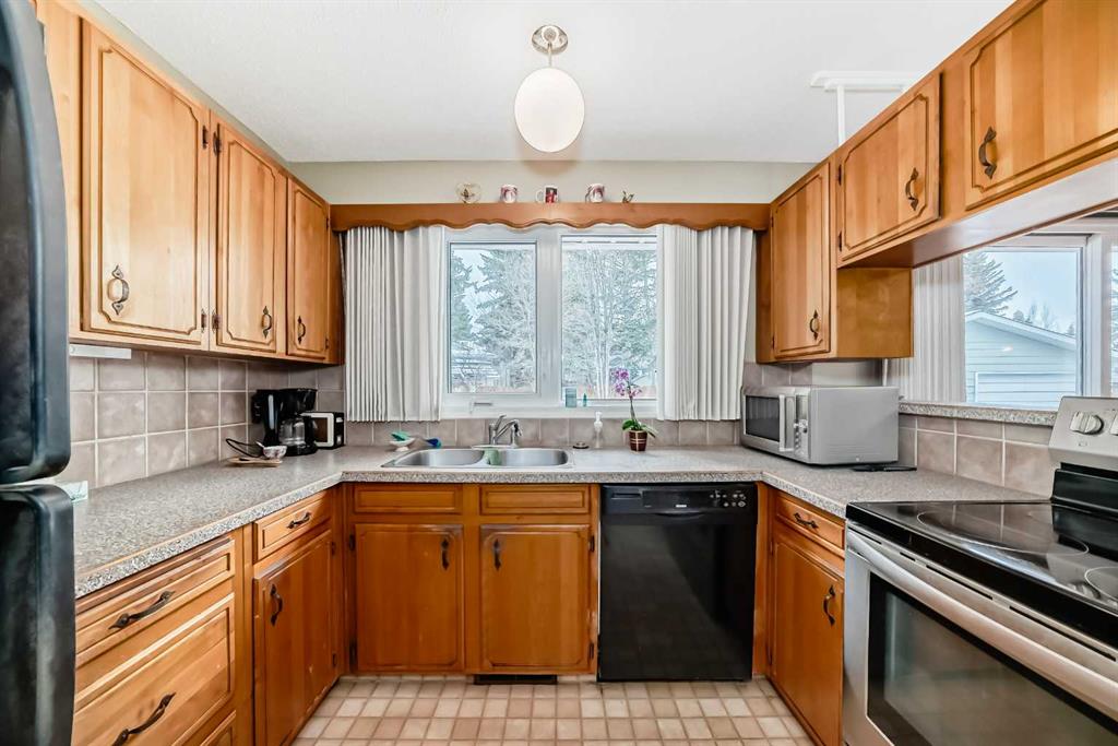 Welcome to 728 Oakhill Place SW, a spacious 1,450 square foot bungalow set on an oversized west facing lot on a quiet cul de sac. This meticulously maintained home has been lovingly owned by the same family for over 54 years. The main floor offers an inviting layout with a generous living room overlooking the picturesque front yard with mature, park like greenery. The living room flows seamlessly into the dining area, ideal for hosting, and features beautiful natural oak hardwood floors. The kitchen provides functional workspace and ample storage, along with an informal dining area. It opens into a distinctive great room complete with a wood burning fireplace with a gas log lighter and direct access to the oversized deck and backyard through sliding doors. All bedrooms are well proportioned, including the primary suite with a convenient two-piece ensuite. A full four-piece bathroom completes the main level. The lower level offers an expansive recreation space with a three-piece bathroom and plenty of room for additional bedrooms, a home gym, hobby area, storage, or future development. The oversized lot easily accommodates a double detached garage with additional driveway parking, while still offering plenty of space for outdoor enjoyment. Ideally located near parks, pathways, and highly regarded schools including Louis Riel, as well as shopping, restaurants, and transit. Quick access to Stoney Trail and the Taza development adds to the overall convenience. This is a special opportunity in a sought-after location. Call your favorite Realtor today to book a private showing.