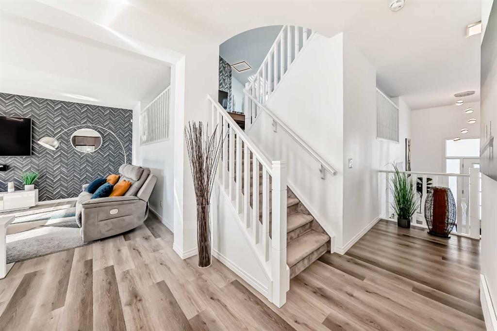 ~ OPEN HOUSE ~ 2:00-4:00pm Saturday March 7 ~ Welcome to 73 Carrington Circle NW, a beautifully designed detached home offering 2,258 square feet of refined living space in the growing northwest community of Carrington. Built in 2019, this four-bedroom, 3.5-bathroom home stands out for its thoughtful layout and attention to privacy. The open-concept main floor centres around a chef’s kitchen with a stunning quartz island, generous prep space, and a dining area ideal for gathering. Strategic positioning ensures the kitchen and living room are not directly visible to neighbouring homes, creating a comfortable sense of separation. Beautiful hardwood flooring runs throughout, while the gas fireplace and modern finishes add warmth and cohesion. A unique bonus room positioned between the main and upper levels serves as a dedicated games and entertainment space, designed to stay visually connected to the main living area while offering its own defined purpose. Upstairs, the bedrooms are bright and well proportioned, with lovely sunrise views through the feature “yellow window.” The conveniently located laundry room sits just steps from the bedrooms, enhancing everyday functionality. The fully finished basement adds further flexibility with a fourth bedroom and additional storage. Outside, the fully landscaped, zero-maintenance backyard is designed for relaxation and ease, featuring concrete and stonework, a hot tub, and an enclosed gazebo for year-round enjoyment. An oversized double garage and modern façade complete the exterior. Residents of Carrington enjoy access to parks, walking paths, nearby schools, and convenient routes to Stoney Trail and Centre Street, offering a balanced lifestyle with both connectivity and a quiet residential atmosphere.