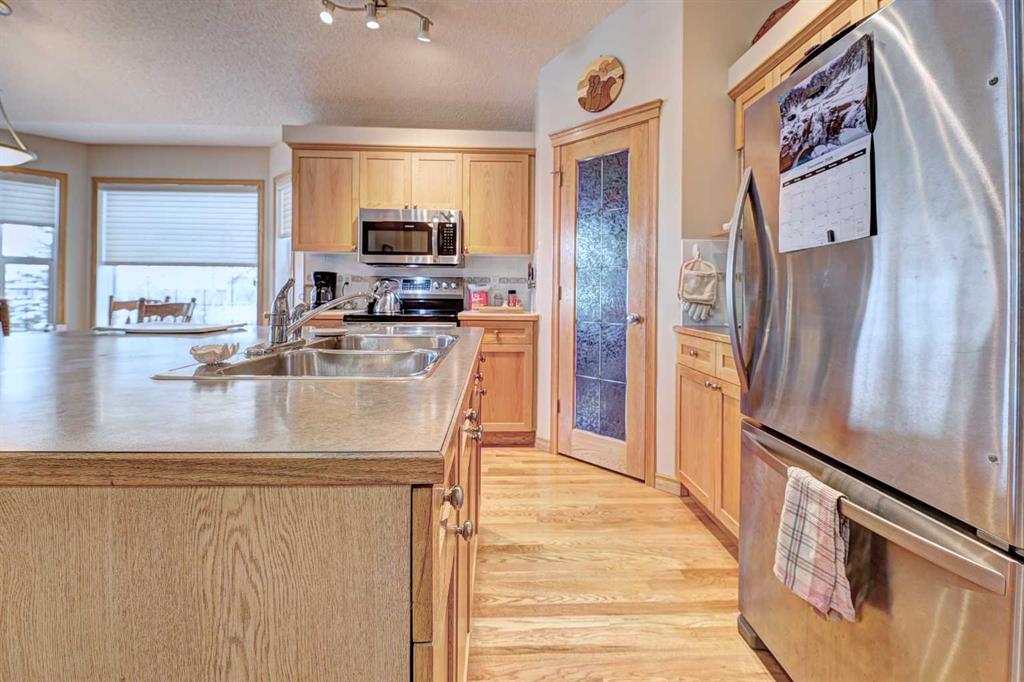 Opportunity comes knocking on your door; welcome to this fabulous three bedroom walk-out bungalow a rare find indeed. Located on a quiet street surrounded by mature landscaping offering privacy and tranquility. The main living space offers an open concept design floorplan with beautiful hardwood flooring. Off the living room; step out onto a raised deck and enjoy a morning breakfast or a nice BBQ in the evening. The large primary bedroom features a large walk-in closet and a three piece ensuite with a convenience of a walk-in shower. The second bedroom on the main floor can be used as an office or as a quiet space for study or reading. AS you enter the walk-out level; you are greeted by a massive recreation room complete with a large wetbar; an ideal room for entertaining. This floor is combined with a large family room with a cozy gas stove for added comfort. The third bedroom is on the lower level; ideal as guest bedroom and there is also a large full bathroom. Garden doors open onto a very private patio for you to enjoy the peaceful surroundings of your garden. Unique to this property is a second driveway that is fully compliant with the City, ideal for just parking another vehicle or even a small RV. For year round comfort; this home also features Central Air Conditioning. The community offers the convenience of abundant walking and cycling pathways, a fabulous community center for you to enjoy, and for golfers there are three great golf courses nearby; minutes away to downtown, and shopping local at the Farmer’s Market. This home is in move-in condition and shows pride of ownership throughout. Don’t miss out on this fabulous opportunity; call for your private viewing today.