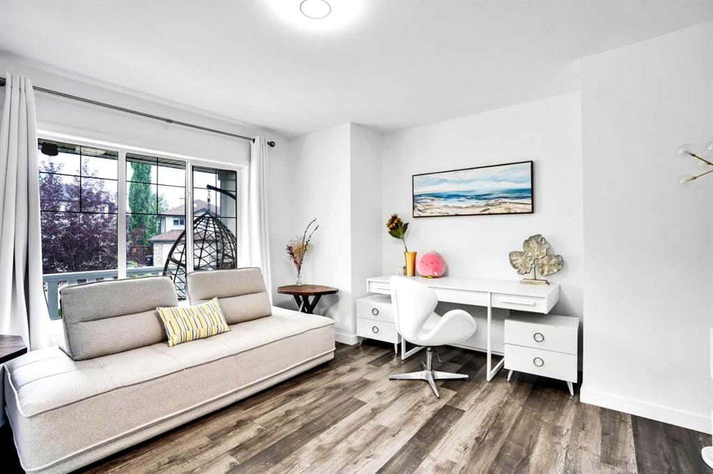 Modern renovation (2022) + walk zone of highly rated schools + 18-feet ceiling + south facing backyard + epoxy garage flooring. Welcome to this modern, smoke-free, and pet-free two-storey home in the highly sought-after SW community of Springbank Hill. Thoughtfully upgraded and meticulously maintained, this residence offers a bright, spacious, and functional floor plan filled with natural light throughout. The main floor greets you with a large foyer and a versatile flex room that can serve as a home office, formal dining area or entertainment room. At the heart of the home is the impressive spacious family room with soaring 18-feet ceilings and a cozy fireplace. The south-facing backyard floods the living space with sunshine, perfect for plant lovers. The beautifully renovated kitchen boasts an extra-large island, modern cabinetry, a convenient walk-through pantry, and upgraded appliances, complemented by a dining area that opens to the fully landscaped backyard. Upstairs, the generous primary suite features a spacious walk-in closet and a beautifully updated ensuite. Two additional well-sized bedrooms, each with unobstructed views, complete the upper level. The open basement provides endless possibilities for your personal touch and future development. Additional highlights include a large lot with ample space for gardening, a newly stained deck, and epoxy-coated garage flooring. New Flat ceilings, tasteful finishes, and recent upgrades create a fresh, modern feel. Conveniently located near 69st LRT station, Aspen Landing and Westside Rec Centre, this home is within the walk zone for the highly rated Griffith Woods (K–9) and Ernest Manning High School (9–12), and close to top schools including Webber Academy, Rundle College, Roberta Bondar, and Menno Simons (walking distance). Outdoor enthusiasts will also enjoy nearby green spaces such as Elmont Park (walking distance), Battalion Park, and Griffith Woods Park. Just 15 minutes from downtown and 45 minutes from the mountains, this home offers the ideal balance of city convenience and quick weekend getaways.