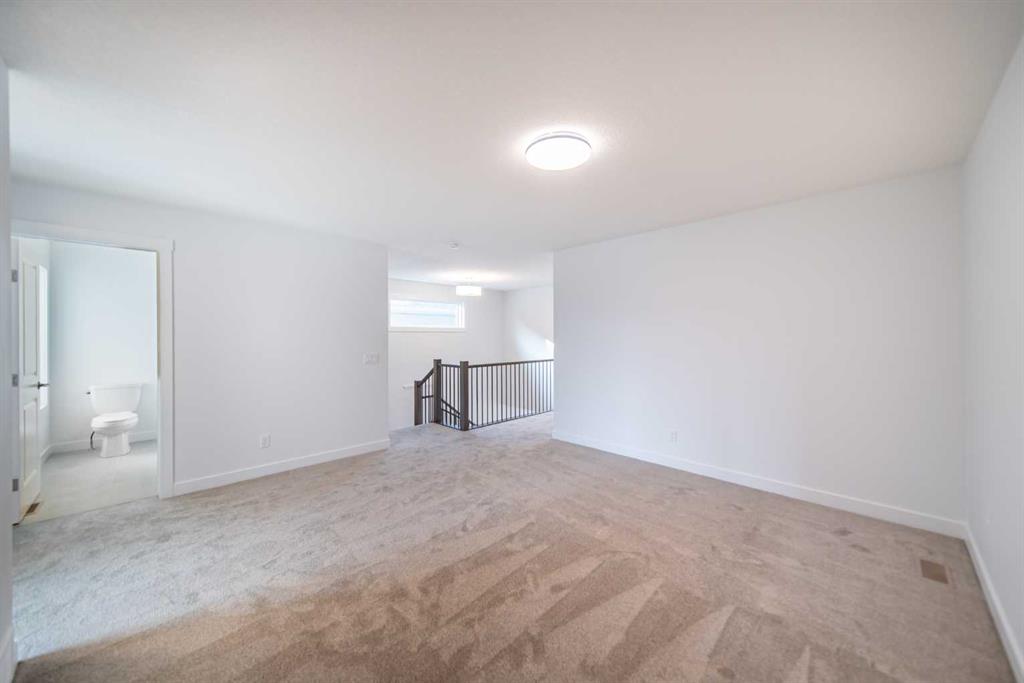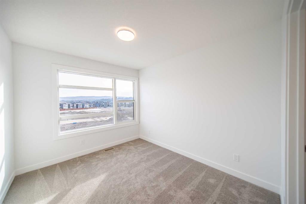 Welcome to the Robson 24 by Brookfield Residential – a stunning, move-in ready home that combines timeless design with modern functionality. Perfectly situated in the heart of Rockland Park, this home sits on a large lot offering additional space and privacy. Boasting nearly 2,300 sq. ft. of beautifully designed living space above grade, this home seamlessly blends open-concept living with thoughtful details throughout. The grand front foyer opens into a bright and airy main level featuring 9-foot ceilings, wide sightlines, and a natural flow between the living, dining, and kitchen areas. The gourmet kitchen is a chef’s dream, complete with a built-in chimney hood fan, built-in microwave, and gas range – all framed by elegant full-height cabinetry, quartz countertops, and a large central island perfect for entertaining. The kitchen overlooks the inviting living room, where a central fireplace anchors the space and creates the perfect setting for cozy evenings. A wall of windows floods the home with natural light, highlighting the spacious dining area that opens to the sunny backyard. A large main-floor office space with a full bathroom provides incredible flexibility for multi-generational living, guests, or a dedicated home office. At the heart of the home, a signature curved staircase creates a striking architectural statement – an elevated design feature rarely seen in today’s market. Natural wood and iron spindle railings lead to the upper level which opens to a central bonus room, intelligently separating the primary suite from the secondary bedrooms for optimal privacy. Vaulted ceilings in the primary bedroom create an open and spacious room that offers a luxurious 5-piece ensuite with a deep soaker tub, dual vanities, private water closet, walk-in shower with 10mm glass and an expansive walk-in closet. Two additional bedrooms, a full bathroom, and a spacious upper-floor laundry room complete the second level. The undeveloped basement features 9′ foundation walls, bathroom rough-ins and a 200 amp panel, making future development that much easier. Outside, the backyard is a sun-filled retreat, providing the perfect space for outdoor entertaining and everyday relaxation. Backed by Brookfield’s comprehensive builder warranty and the Alberta New Home Warranty Program, this brand-new property offers complete peace of mind. With its architectural charm, premium finishes, and unbeatable Rockland Park location, the Robson 24 is the perfect blend of sophistication, comfort, and practicality – ready for you to call home.