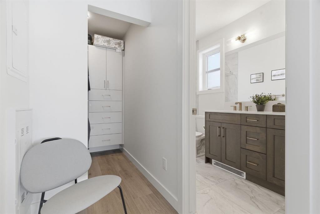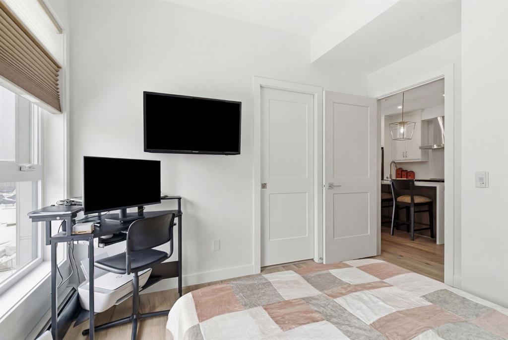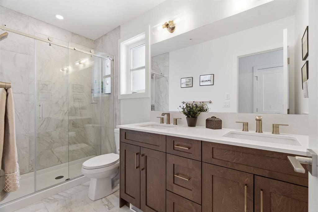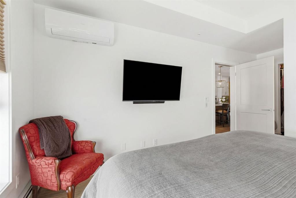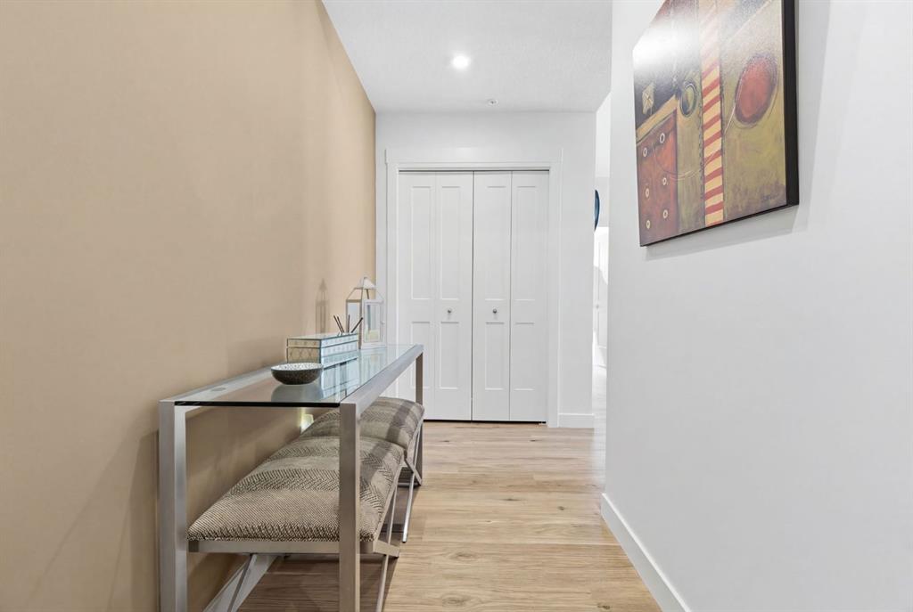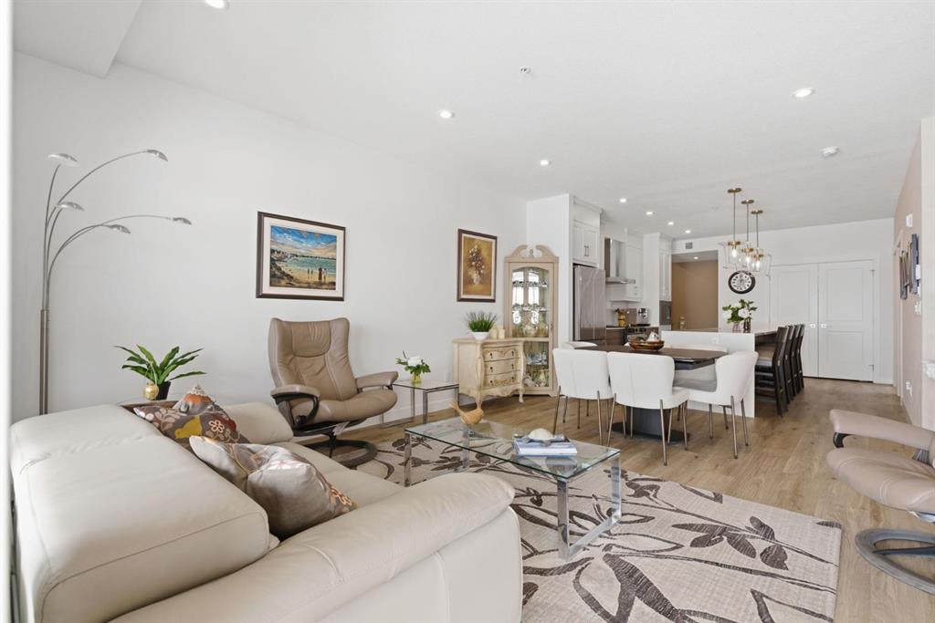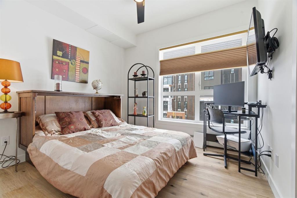 Welcome to this beautifully designed and upgraded, 3rd floor corner unit in the sought-after Waterside in Mahogany. Boasting nearly 1,000 sq ft of thoughtfully crafted living space, exceptional natural light from the south western exposure and large windows, and modern finishes throughout. From the moment you step inside, you’ll appreciate the spacious foyer and the bright and open layout that is enhanced by large dual pane, low-e southwest-facing windows that fill the home with beautiful sunshine all day long. Luxury vinyl plank flooring flows throughout the main living areas, creating a warm and inviting feel. The kitchen is both stylish and functional, hosting sleek quartz countertops, an upgraded stainless steel appliance package, elegant cabinetry with upgraded hardware and custom organization, and a stunning central island with waterfall ends, that provides plenty of space for cooking, dining, and entertaining. The open-concept design seamlessly connects the kitchen to the spacious living and dining areas, anchored by a contemporary electric fireplace for added comfort and ambiance. Step outside onto the oversized private balcony overlooking the courtyard area and is complete with a gas BBQ line, perfect for enjoy beautiful summer evenings on the patio. This well appointed Atwood 3 model suite offers two spacious bedrooms and 2 full baths. The primary bedroom features a generous walk-in closet with custom California Closets providing great storage options and a beautifully upgraded ensuite with a double vanity. Both bathrooms showcase quartz counters and upgraded fixtures, continuing the home’s luxurious, modern style. Additional highlights include in-unit laundry, 2 air conditioning wall units for year-round comfort, stylish upgraded lighting package throughout, and custom California Closets for exceptional organization. The home also includes a titled underground tandem parking stall to accommodate two vehicles and a separate storage locker, offering both convenience and extra space. Located in the award-winning community of Mahogany, residents enjoy exclusive access to Mahogany Lake, Calgary’s largest freshwater lake featuring sandy beaches, swimming, paddleboarding, skating in the winter, and endless pathways and wetlands for walking and biking and all your outdoor lifestyle needs. With numerous nearby shops, great restaurants including Chairmans Steakhouse, great schools, and amazing amenities just minutes away, Mahogany offers a vibrant, resort-style lifestyle in one of Calgary’s most desirable communities. This is condo living at its finest—modern, low maintenance, and surrounded by incredible amenities. Don’t miss your chance to see this one today!