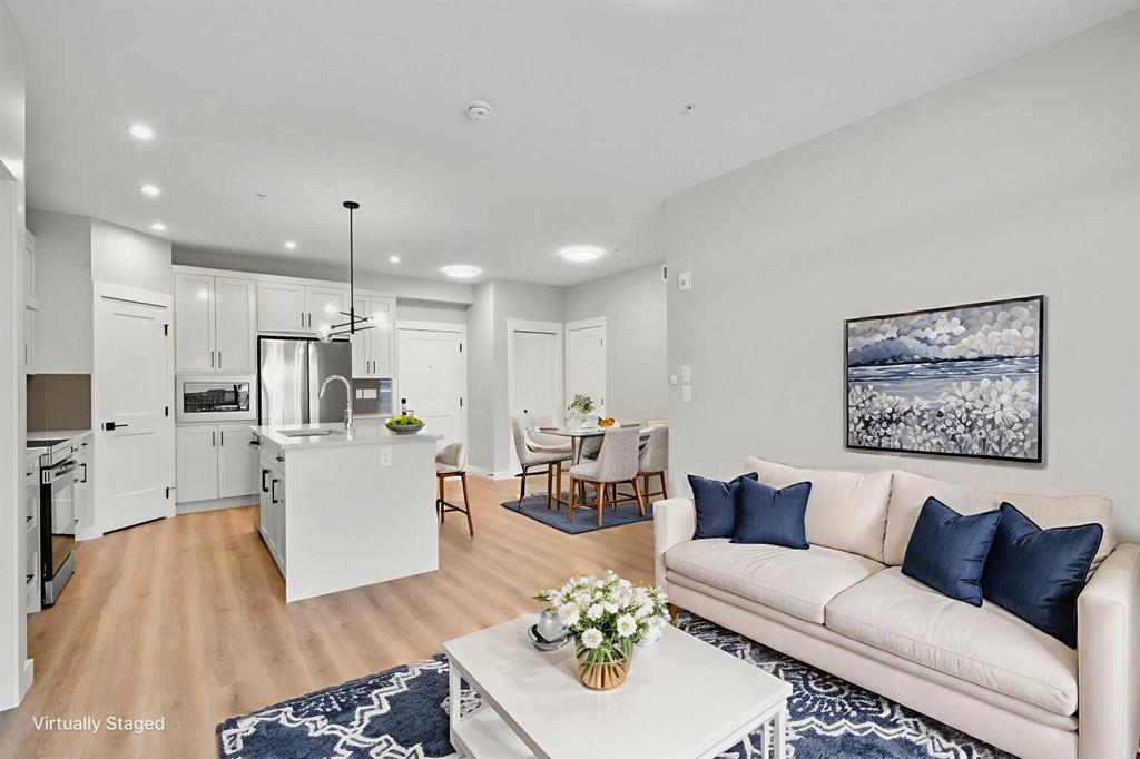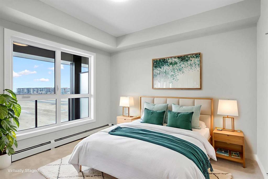 Experience elevated lake living in this stunning 2-bedroom, 2-bathroom residence in Waterside at Mahogany by Logel Homes—one of Calgary’s most sought-after, award-winning lake communities. Positioned on the 3rd floor of the Parkside building, this thoughtfully designed “Jackson 2” floor plan offers 858 sq. ft. of refined interior space paired with an expansive 152 sq. ft. outdoor terrace, showcasing sweeping city and potential park views—an exceptional setting for both quiet mornings and evening entertaining.