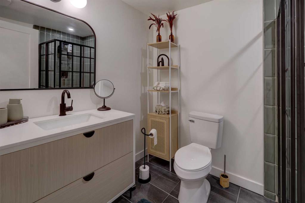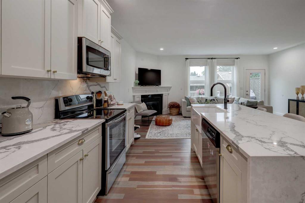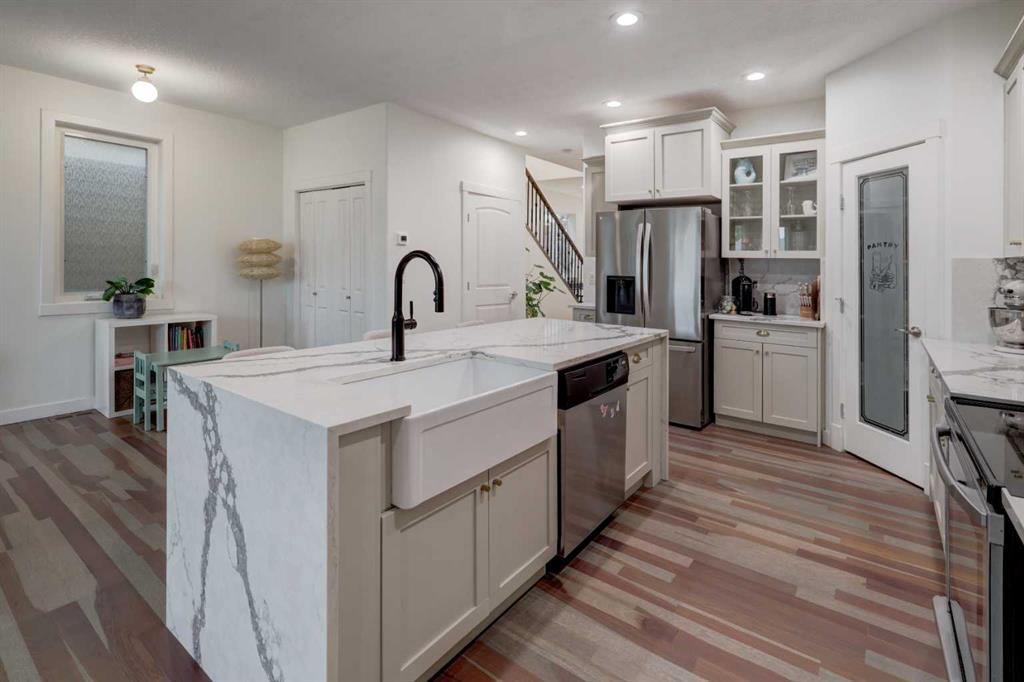 Welcome to this charming 4-bedroom, 3.5-bath home in the heart of Bowness! Just a 2-minute walk to the new Superstore, with excellent transit options, quick access to the C-Train, multiple schools nearby, and only two right turns to be on your way to the mountains—this location truly can’t be beat. The curb appeal is inviting with a full-length south-facing front patio and a freshly painted glass-panel front door, setting the tone for what awaits inside. Step in to an open floor plan filled with natural light from large windows, beautifully complemented by refinished hardwood floors (2021). The main floor features 9′ knockdown ceilings, a welcoming front dining area, and a cozy rear living room overlooking your private backyard. Step outside to your freshly stained deck, complete with a gas line for your BBQ—perfect for outdoor dining and entertaining. The low-maintenance yard provides plenty of space to relax or host gatherings, while the insulated double detached garage, just steps from the back door, offers built-in shelving and extra storage. The renovated kitchen (2021) is the heart of the home, showcasing an oversized waterfall quartz island with a deep farmhouse sink, refreshed cabinetry with new hardware, and a corner pantry for all your storage needs. The brand-new developed basement (Feb 2025) adds even more living space with a custom-built entertainment wall, a stylish wet bar, a fourth bedroom with walk-in closet, and a stunning 3-piece bath with a tiled stand-alone shower. The spacious utility room includes a full wall of built-in shelving, offering ample storage. Upstairs, the primary suite offers the perfect retreat with a 4-piece ensuite featuring a jetted corner tub and stand-alone shower, a spacious walk-in closet, and a private balcony with glass-paneled railing—an ideal spot to relax at the end of the day. Two additional bedrooms, a 4-piece bath, and convenient upper-level laundry with built-in cabinetry complete this level. Additional upgrades include a new A/C unit (2024) for summer comfort. Enjoy unbeatable access to downtown, University District, Bowness Park, Paskapoo Slopes, Calgary Farmers Market, city transit, and more! Don’t miss your chance to call this beautiful property home. Be sure to view the VIRTUAL TOUR LINK for interactive floor plans, hi-def photos, and a room-by-room virtual walkthrough.