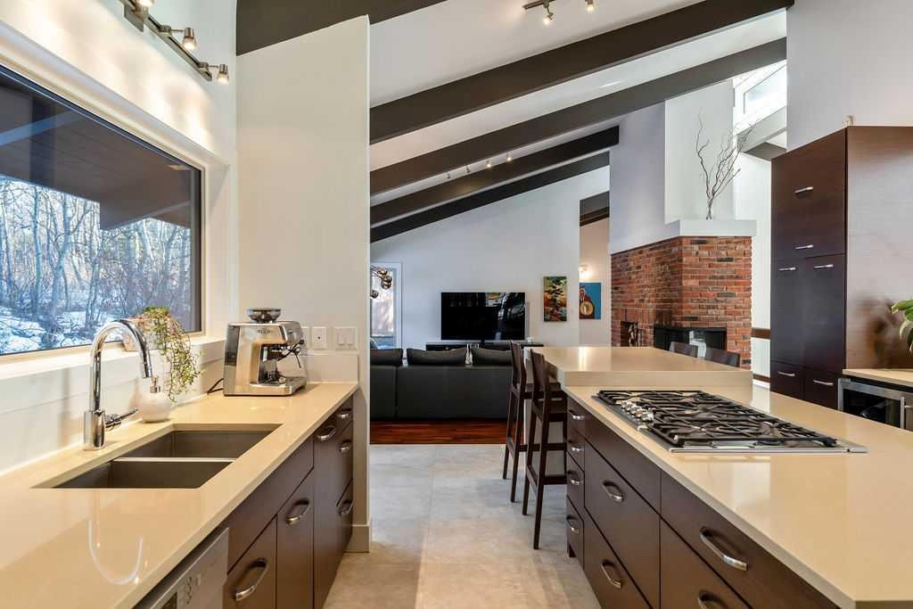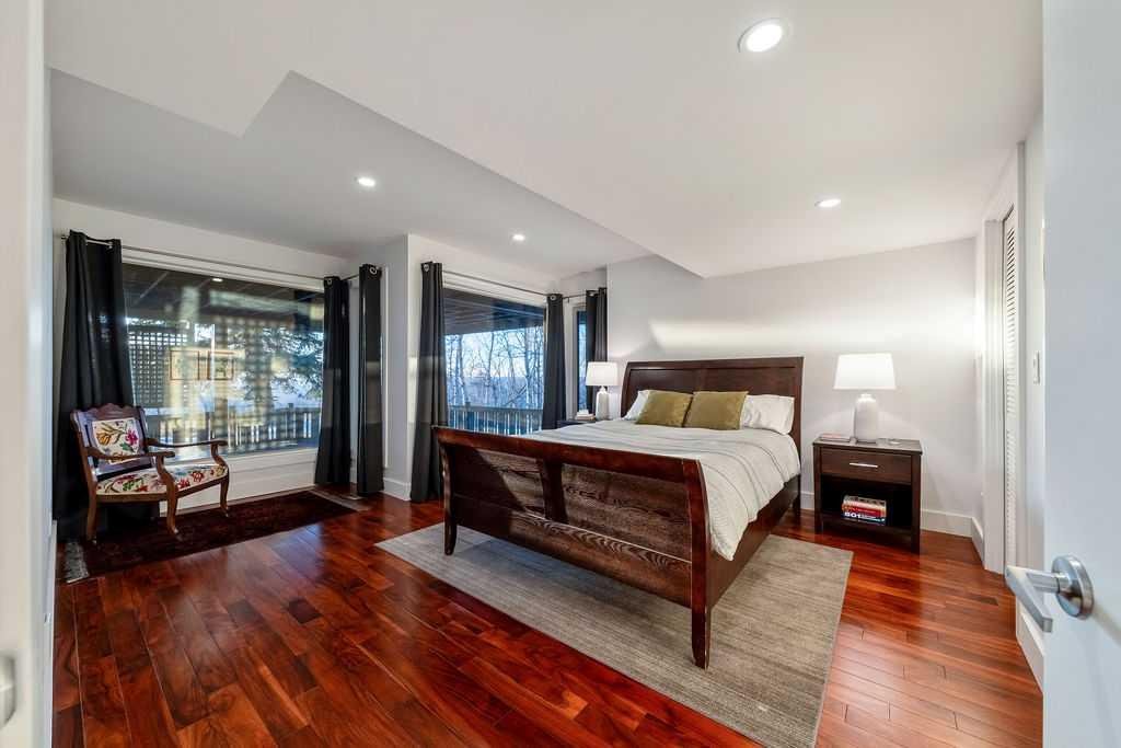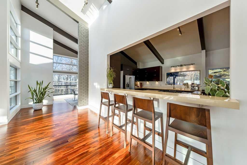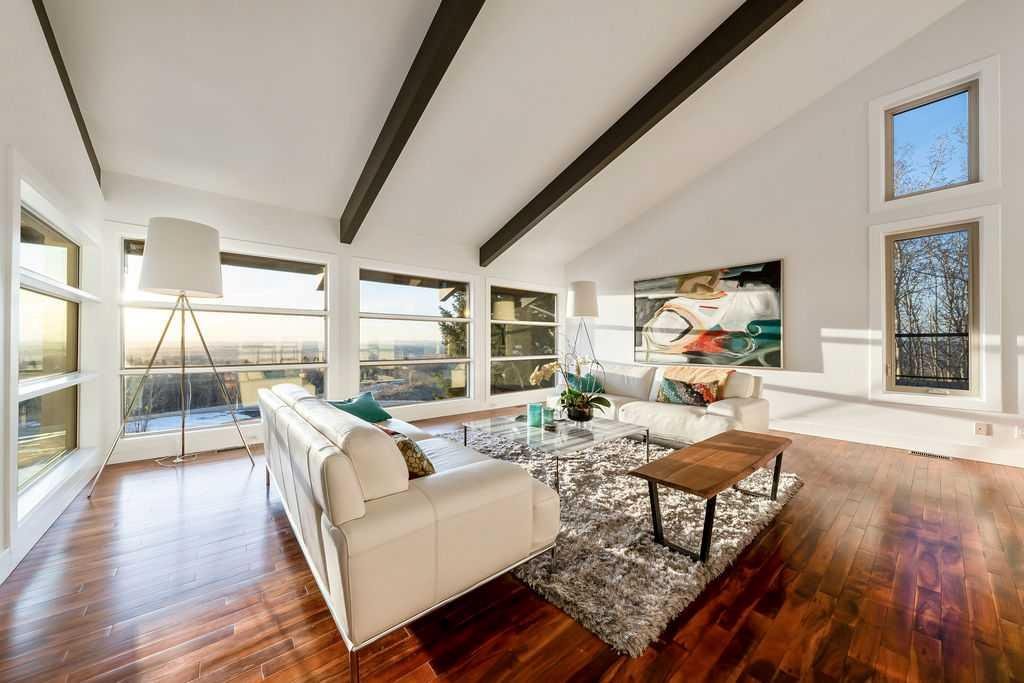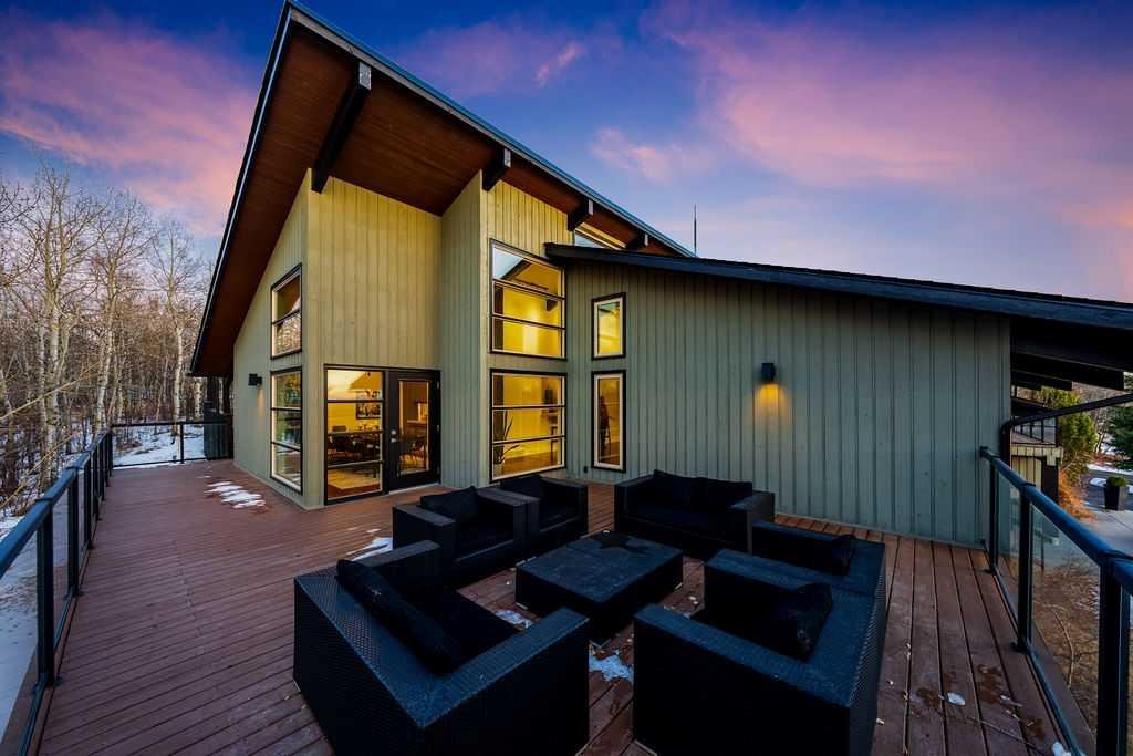 Perched on one of the most picturesque view lots in the area, this remarkable 5,497 total sq ft walkout bungalow home offers a rare opportunity to enjoy country privacy just minutes to Calgary and only 20 minutes to downtown. With quick access to shopping, restaurants & Stoney Trail, you can enjoy modern convenience without compromising the peace & charm of rural living. Built in an era when craftsmanship mattered and thoughtfully renovated over the years, this home beautifully blends timeless character with carefully selected modern updates. Follow the paved driveway to the heated triple car garage & appreciate the abundance of parking. Step inside and take a moment to absorb what surrounds you. From the new tile in the entrance & kitchen to the carefully curated finishes throughout, every detail has been considered. As you make your way to the main level, the views immediately take centre stage. The living room invites you to sit & stay awhile, offering breathtaking Rocky Mountain views, sweeping river valley vistas & unforgettable sunsets. The kitchen is positioned perfectly as the heart of the home, with views in every direction. Featuring Bosch appliances including a gas cooktop and warming drawer, it is a space designed for both everyday living & entertaining. The generous dining area ensures there is plenty of space for good food & good conversation. The family room is anchored by a striking wood burning fireplace that extends from the basement to the ceiling, creating warmth & presence throughout the home. A versatile bedroom on this level is ideal for a child’s room or a private home office. The main floor also offers a beautifully designed laundry room and a well appointed three piece bathroom for guests. The primary suite is exactly what you would hope for. Wake up to incredible views each morning and unwind in a space designed for comfort. The large walk-in closet offers ample storage, while the ensuite features a deep soaker tub, double sinks & a spacious jetted shower. Notice the adorable ladder? Peek into the loft and let your imagination run wild, ideal for study, meditation, or a quiet retreat. The lower level continues to impress. A bright front flex room sits at grade level, adding to the functional living space. Three additional large bedrooms share two full bathrooms, while a generous games room and gym provide flexibility for growing families. With three brand new furnaces, shingles replaced in 2025 & two newer hot water tanks, and many other upgrades, this home is truly move in ready. Outdoor living spaces surround the home with endless possibilities, whether you envision a garden, a hockey rink or a place for a friendly family game of football. The school bus picks up at the end of the driveway, taking kids to be best public and private schools Calgary has to offer. A property like this is rarely offered, combining unforgettable views, thoughtful updates & an unbeatable location close to the city yet a world away.