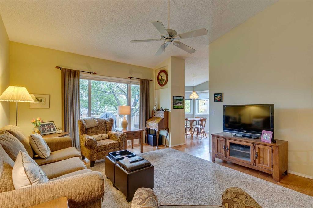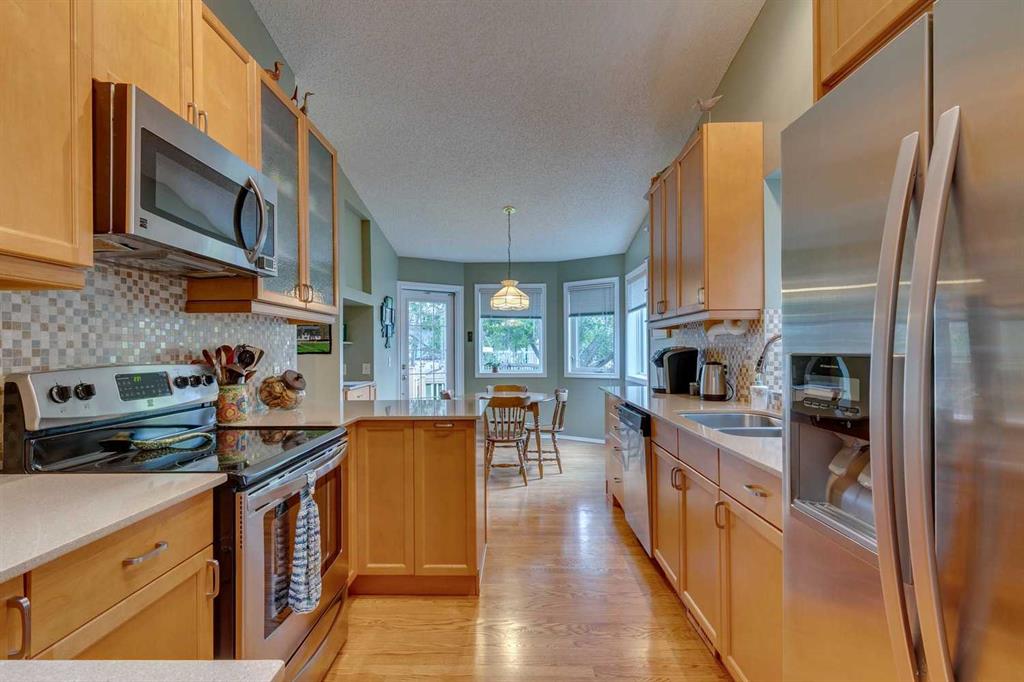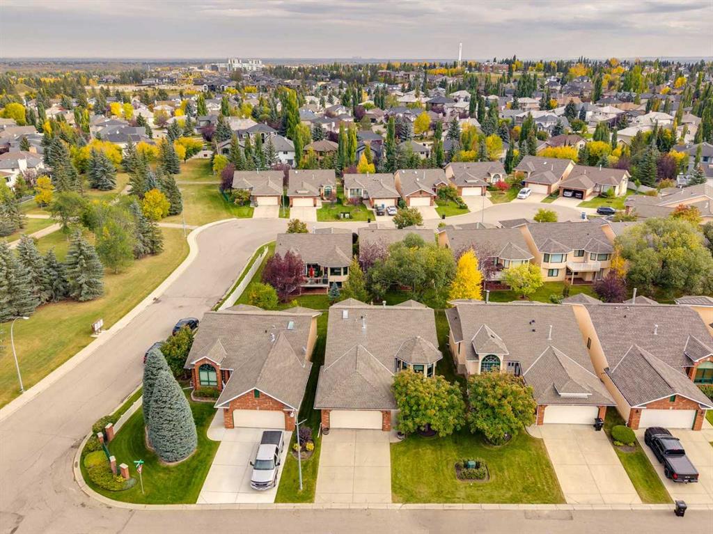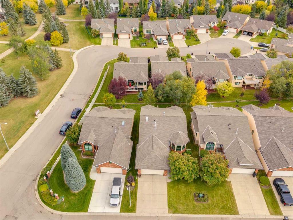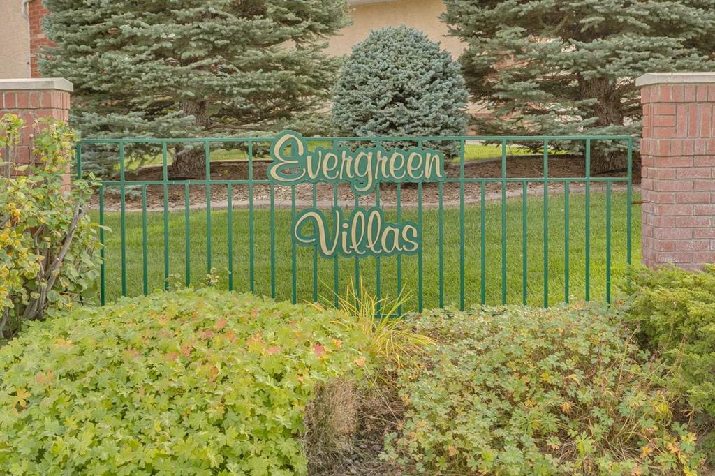 Excellent opportunity in this highly sought-after fee-simple detached bungalow villa complex in Evergreen Estates. $164/month includes snow removal and landscaping, allowing you to enjoy a carefree lifestyle in a detached bungalow. Nicely upgraded and maintained home features soaring vaulted ceilings, rich 3/4″ white oak hardwood floors, a newer kitchen with full-height cabinets, quartz countertops, stainless steel appliances and tile backsplash. Large primary bedroom with a lavish renovated ensuite and main floor bath with an oversized 10mil glass shower, granite vanities, tile floors, undermount sinks, and upgraded faucets. Full basement development offers a third bedroom, a huge family room with a fireplace, a cozy wet bar, a full bath, a craft room/second office, and a workshop. New furnace and hot water tank, new water softener, rebuilt composite rear deck, triple pane windows with metal clad exterior frames, new gutters, newer garage door and opener, some upgraded blinds, new front and rear doors and more. This property has been professionally maintained, and mechanical components have been serviced regularly since the owners purchased the home. Walk to Fish Creek Park in seconds from this home or enjoy the amazing network of community pathways. Great access to the ring road, shopping and schools. Evergreen Estates is a truly “Estate” home community with only single-family homes, large lots, very low density and mature trees throughout the community. The sellers have only occupied the home for seven months a year since they have owned it.